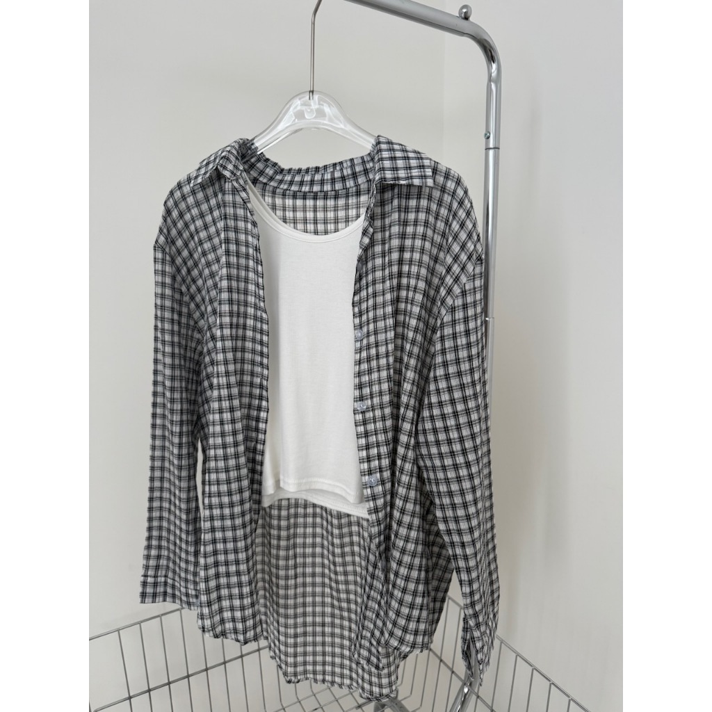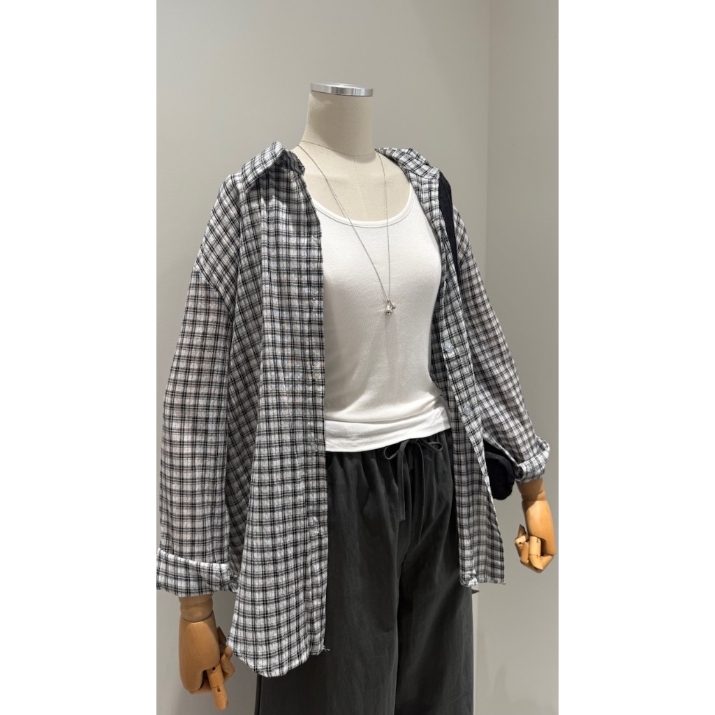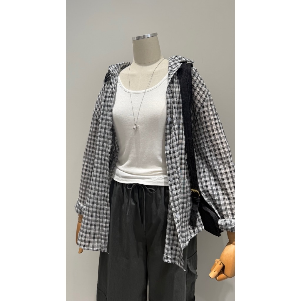 ※上衣:真鈕扣 下擺圓弧前短後長 整件格子設計 真兩件式