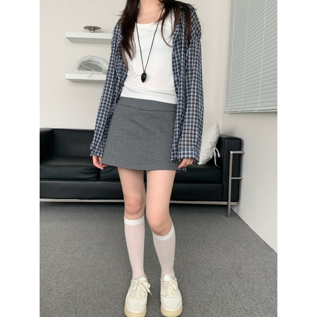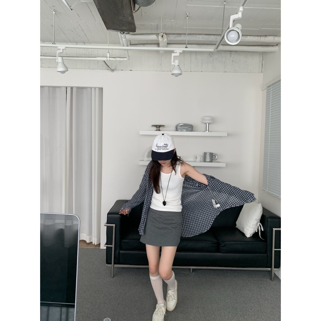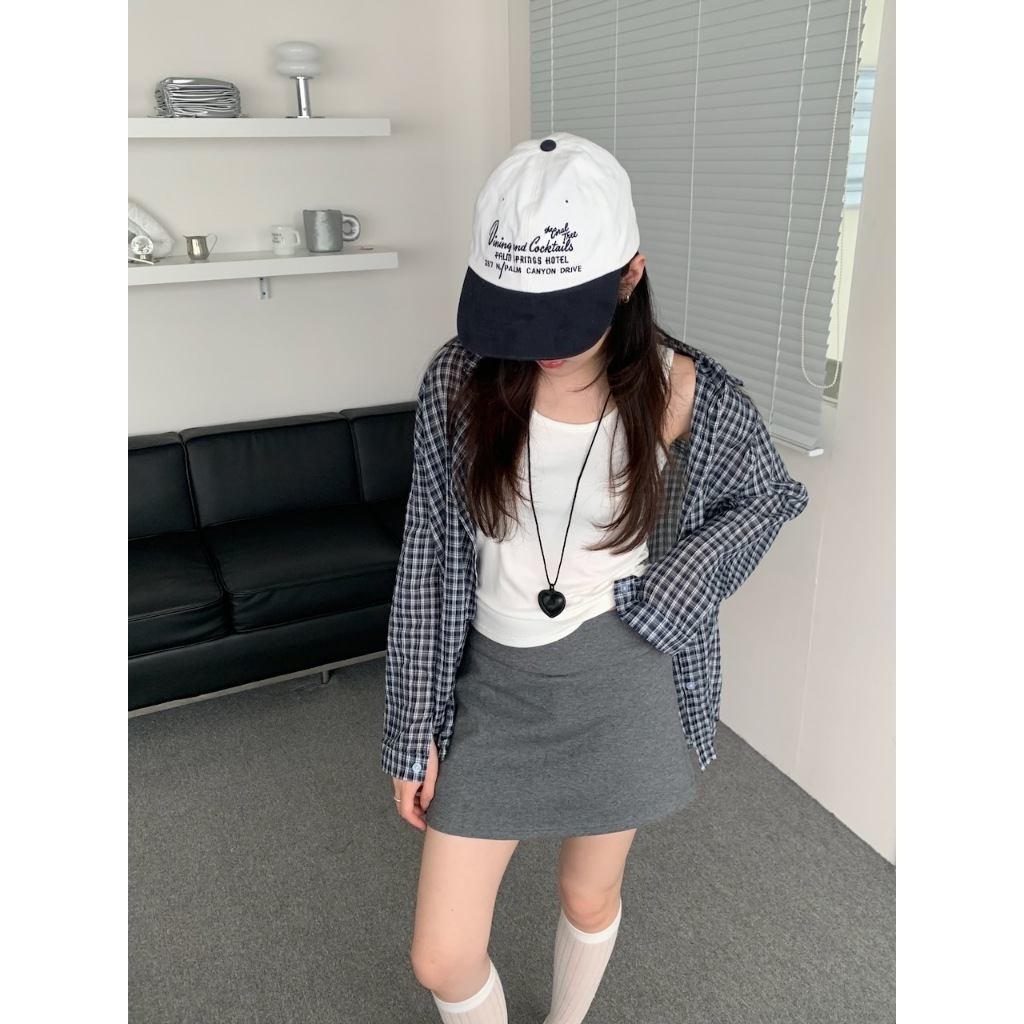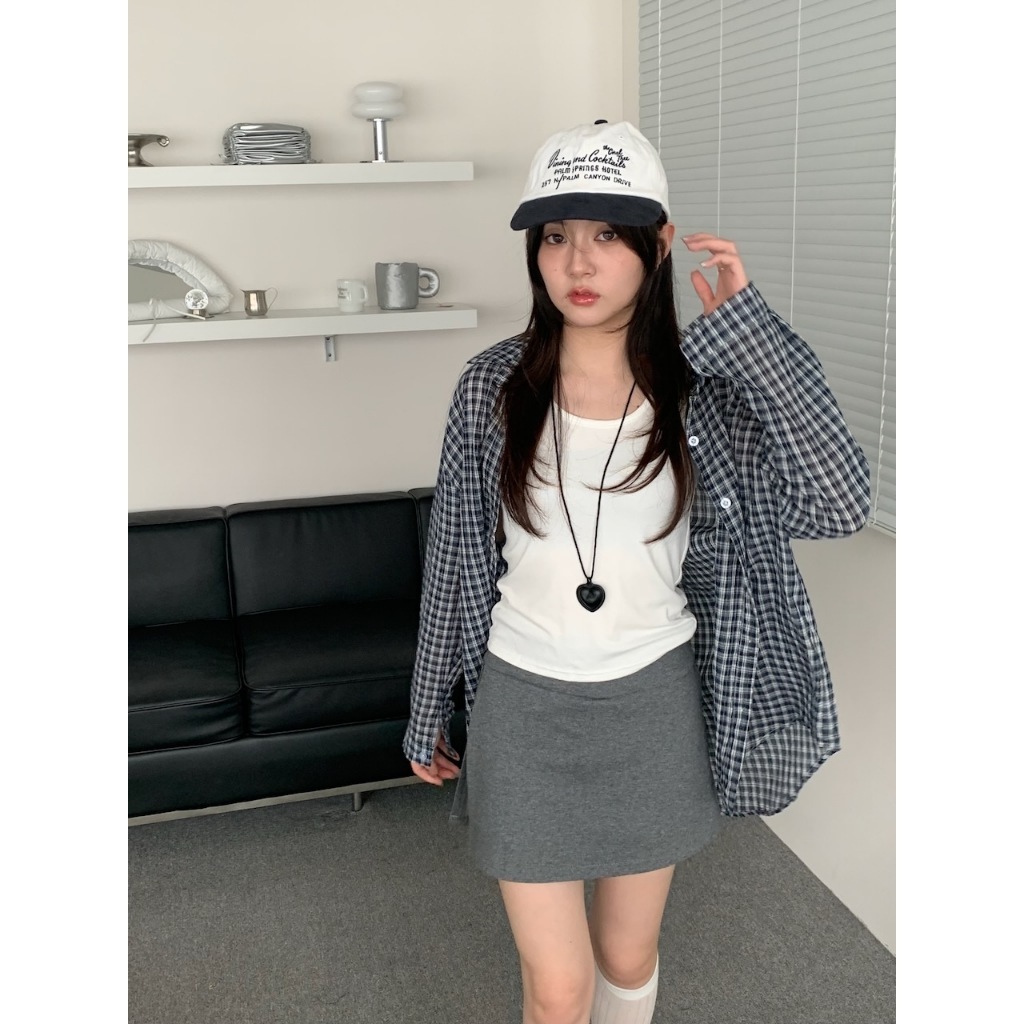 ※上衣:真鈕扣 下擺圓弧前短後長 整件格子設計 真兩件式