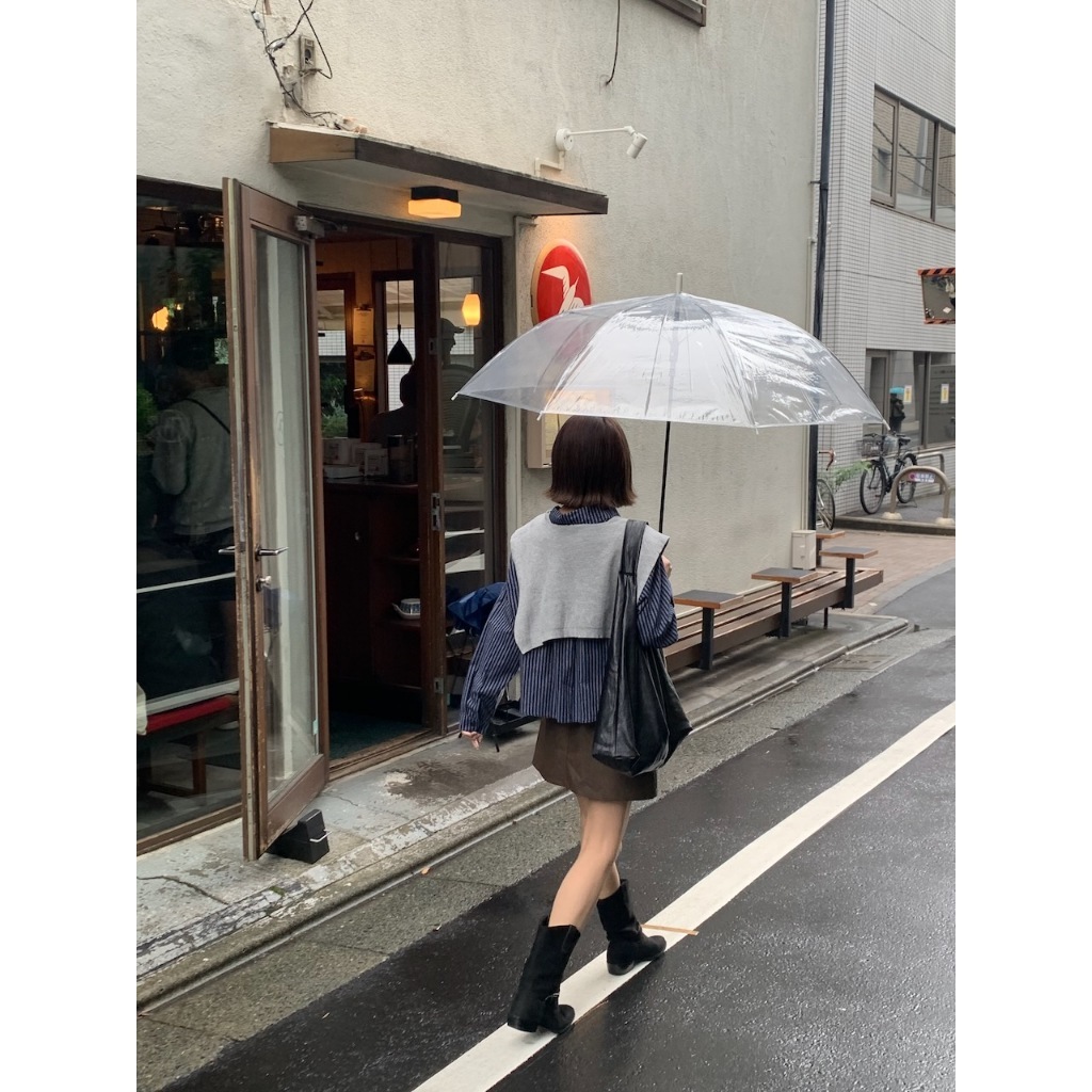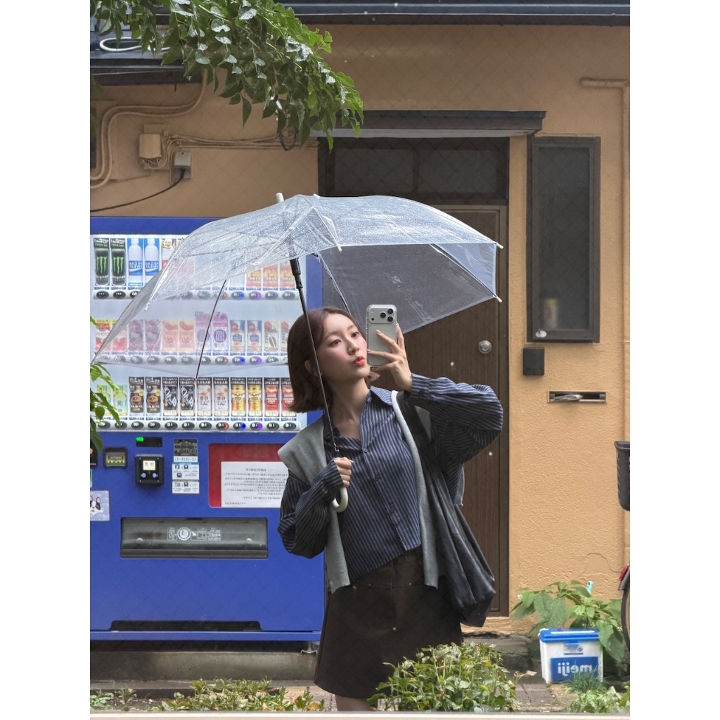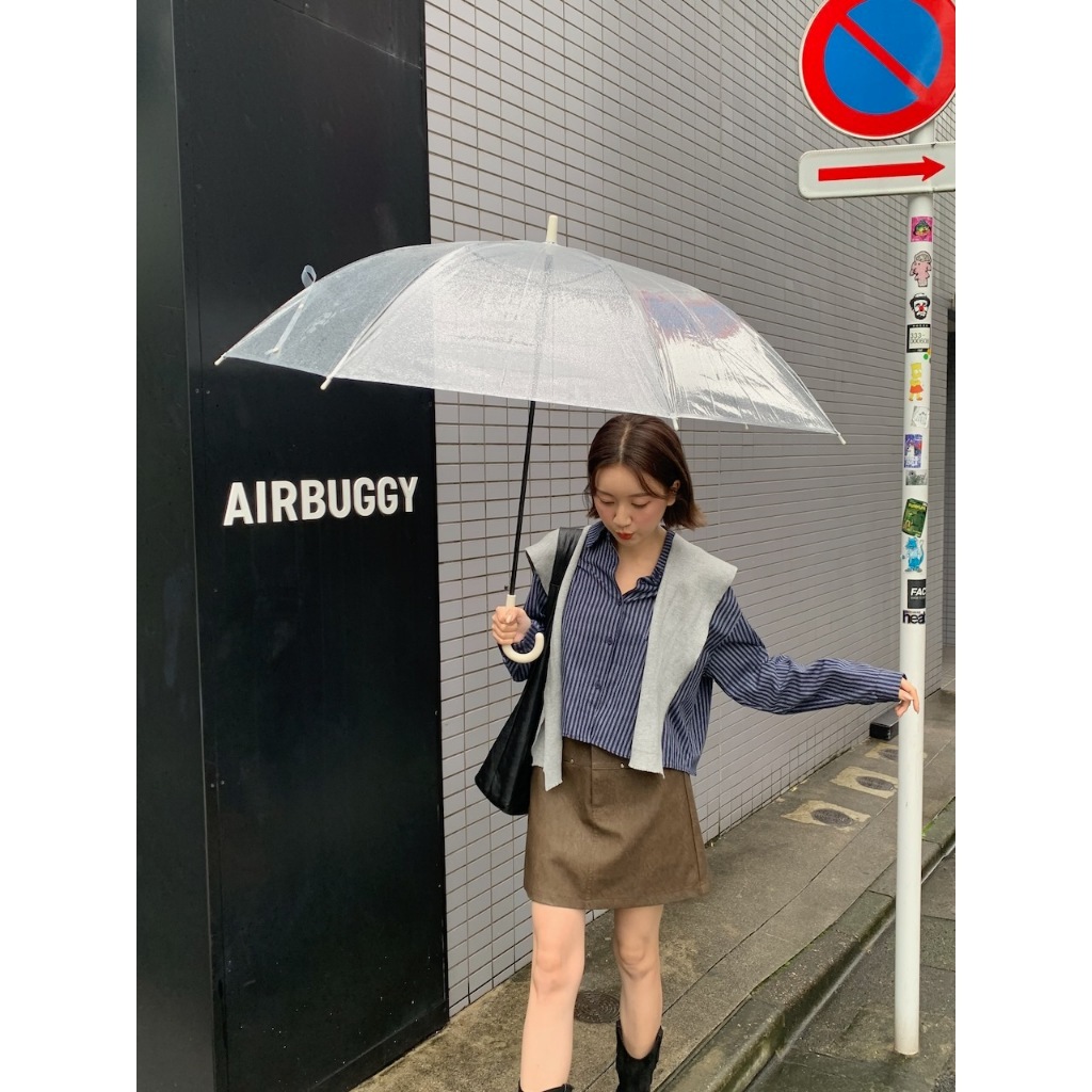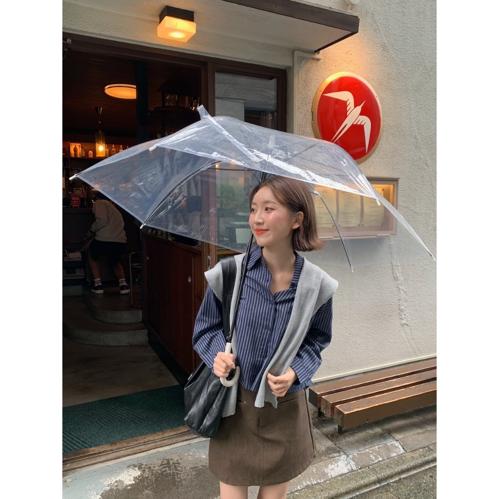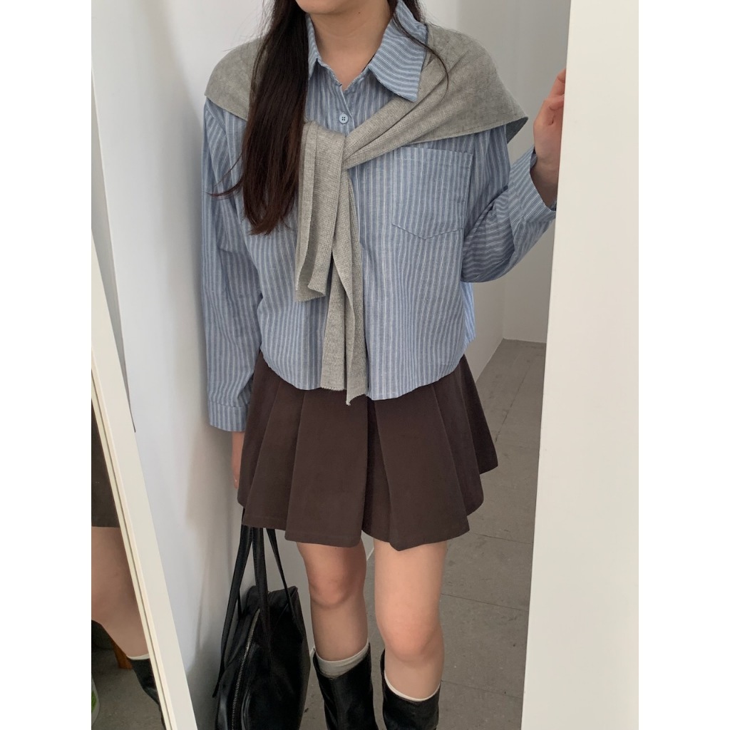 ※襯衫:真鈕扣 胸前真口袋 下擺前短後長 整件條紋設計 真兩件式