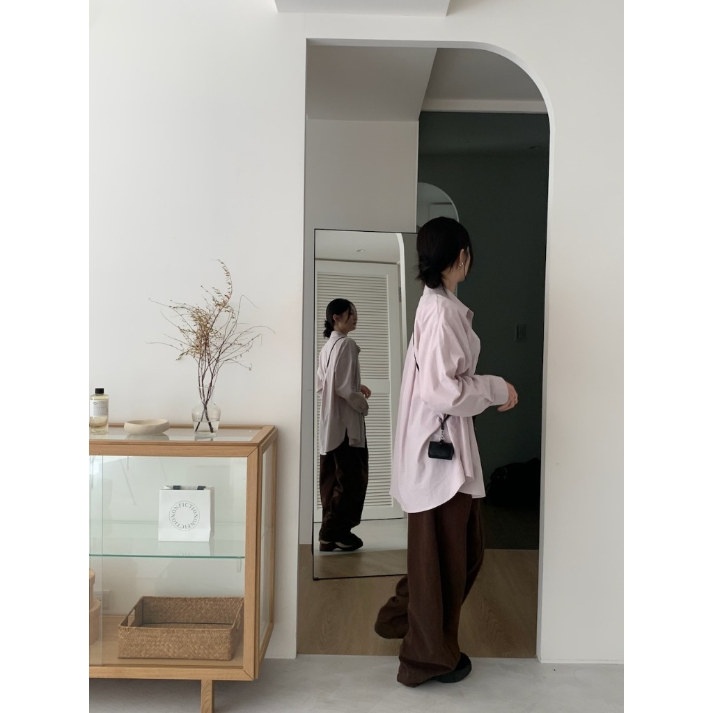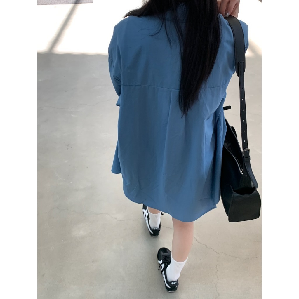 ※長板 翻領 落肩 真排扣 右胸前有口袋 下擺左右兩側微開岔 下擺前短後長 素色