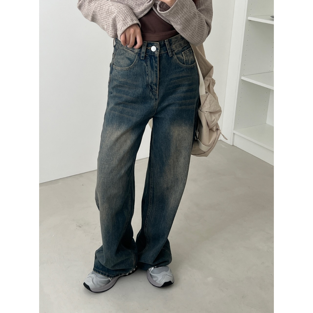 再來一款復古刷色牛仔褲