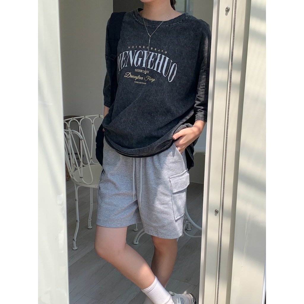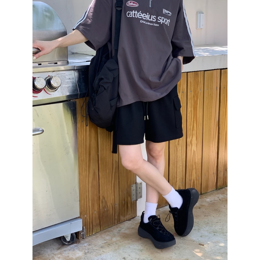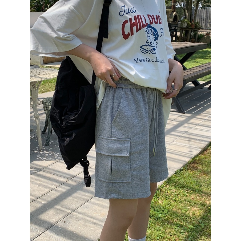 熱銷現貨【imfine】加點工裝感 鬆緊腰口袋棉短褲 #3997