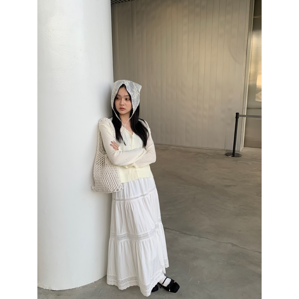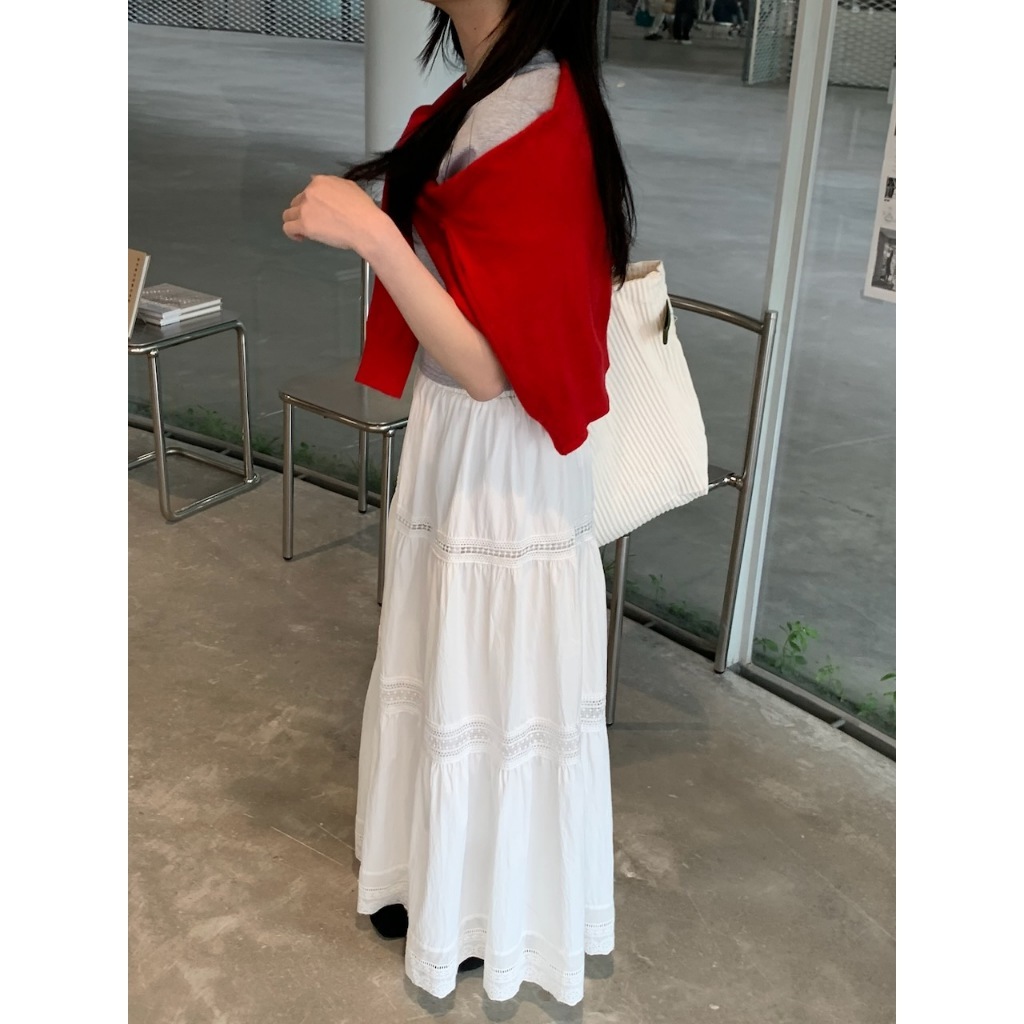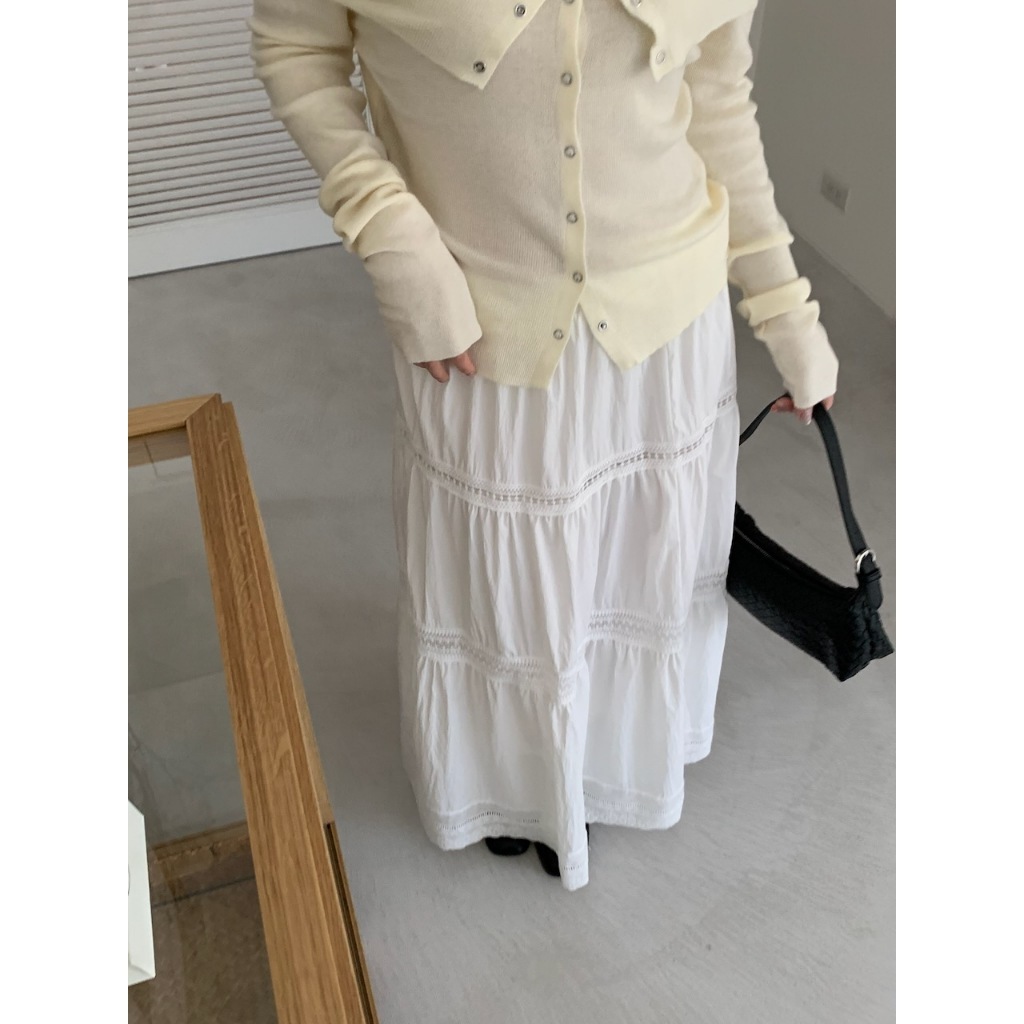※蛋糕長裙 腰圍整圈縮口 簍空蕾絲花邊設計 內裡有安全褲