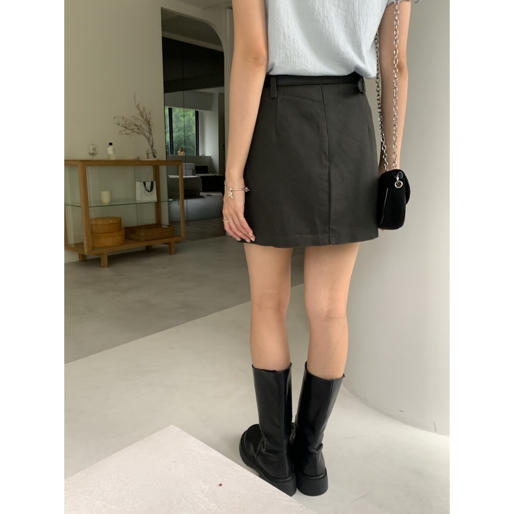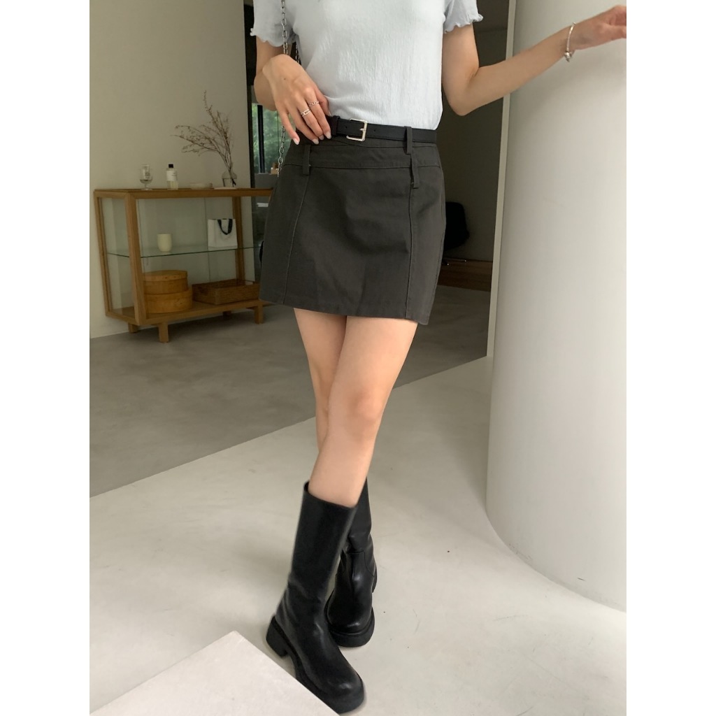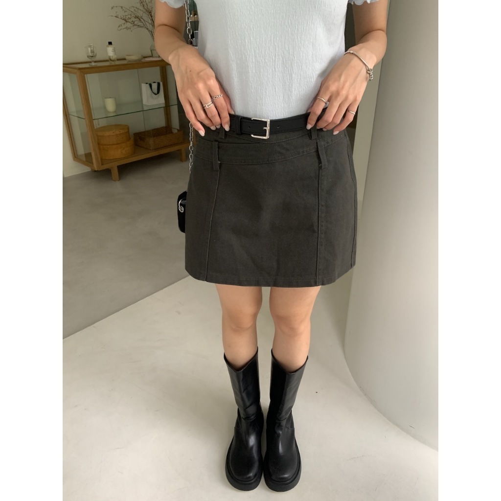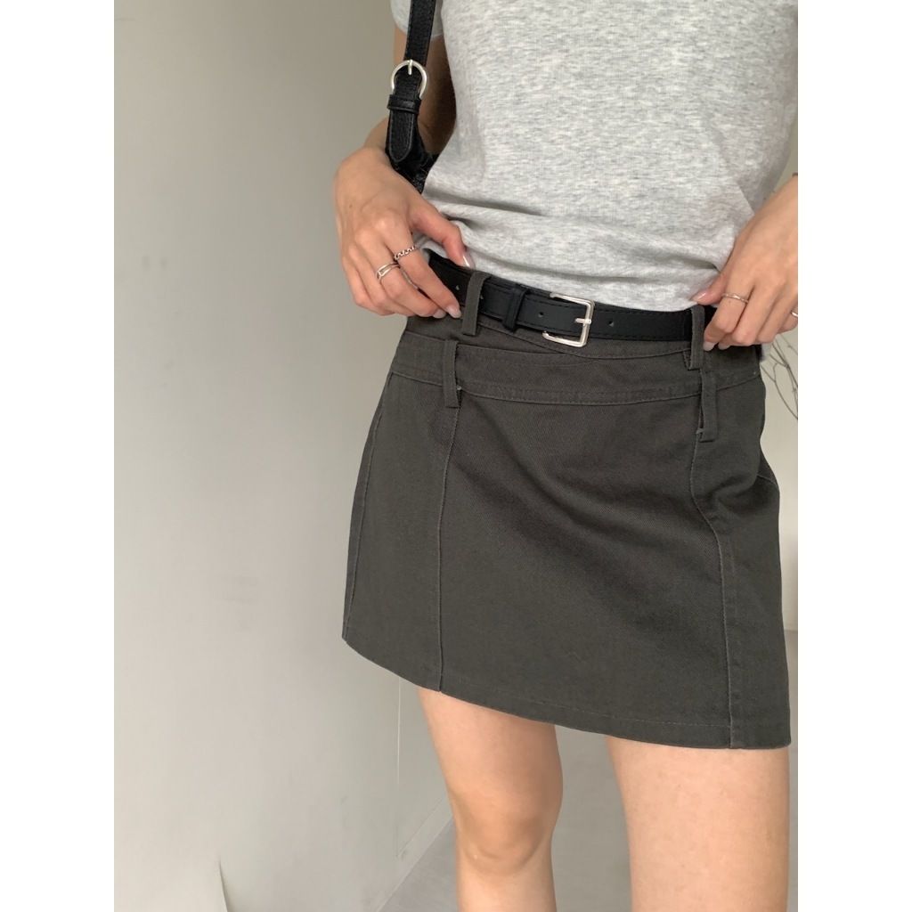 ※A字牛仔短裙 前面雙層腰帶環設計 後半截隱藏拉鍊 附皮帶 有安全褲 無彈性