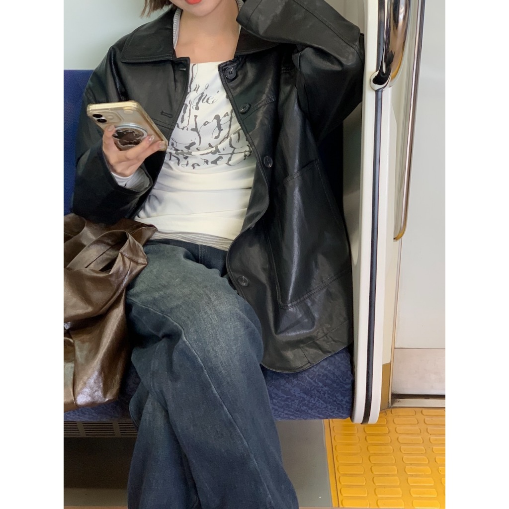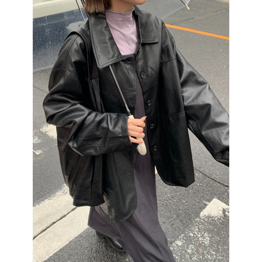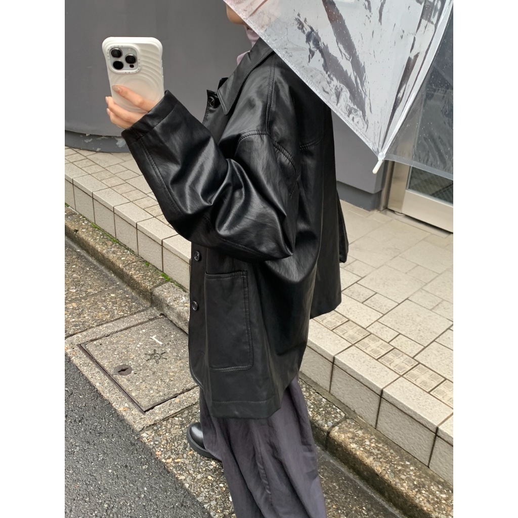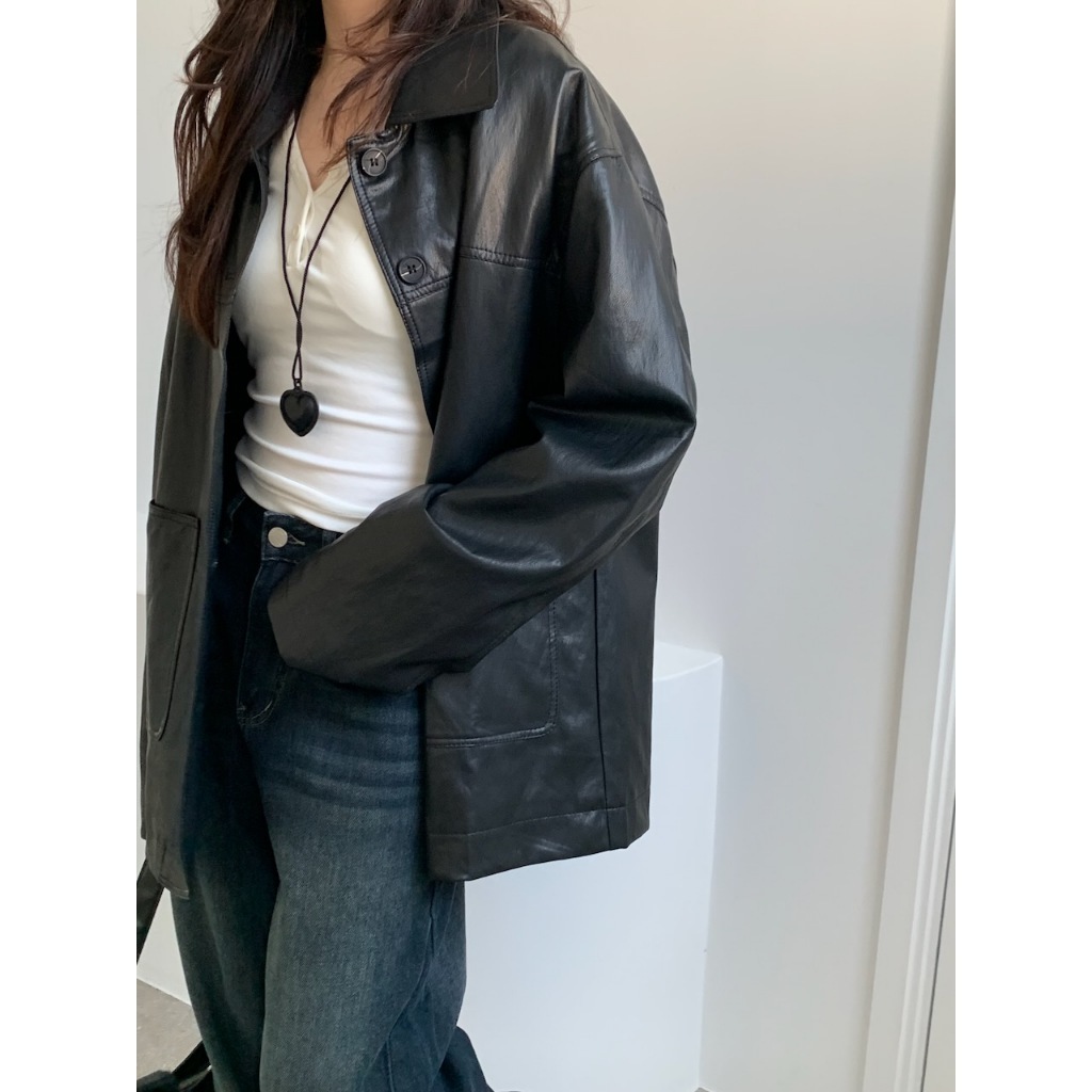 ※皮革 真鈕扣 真口袋 有內裏 拼接設計