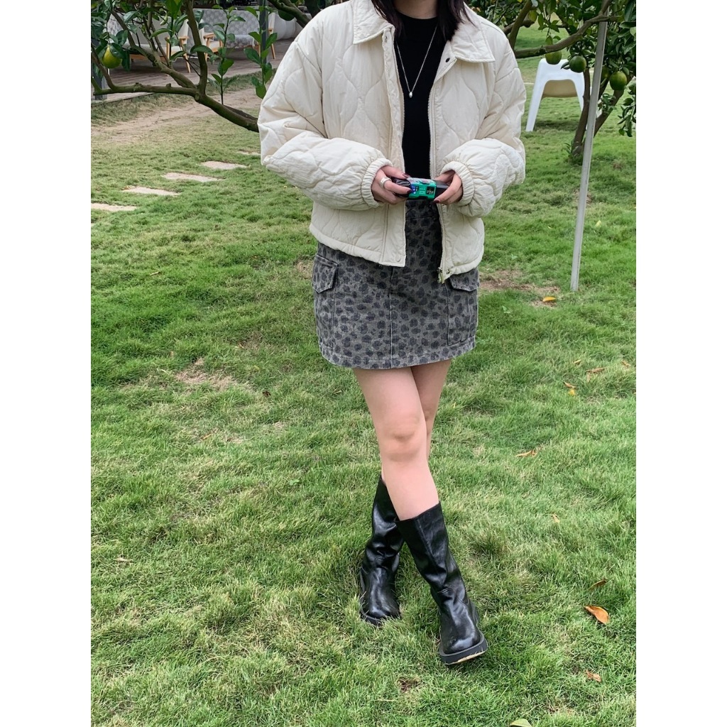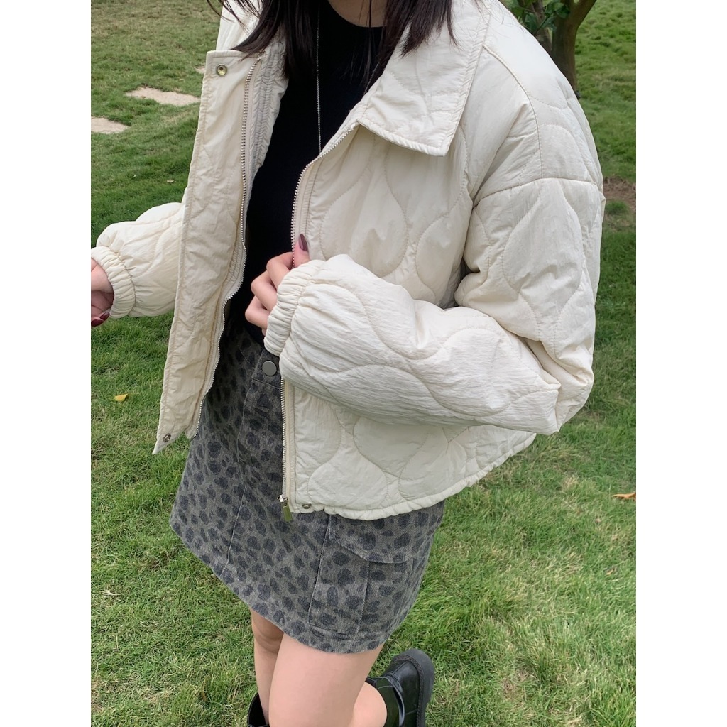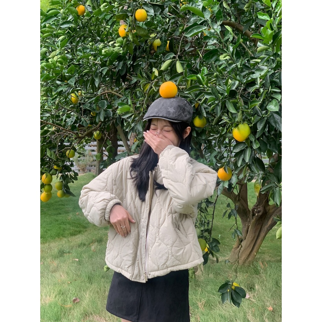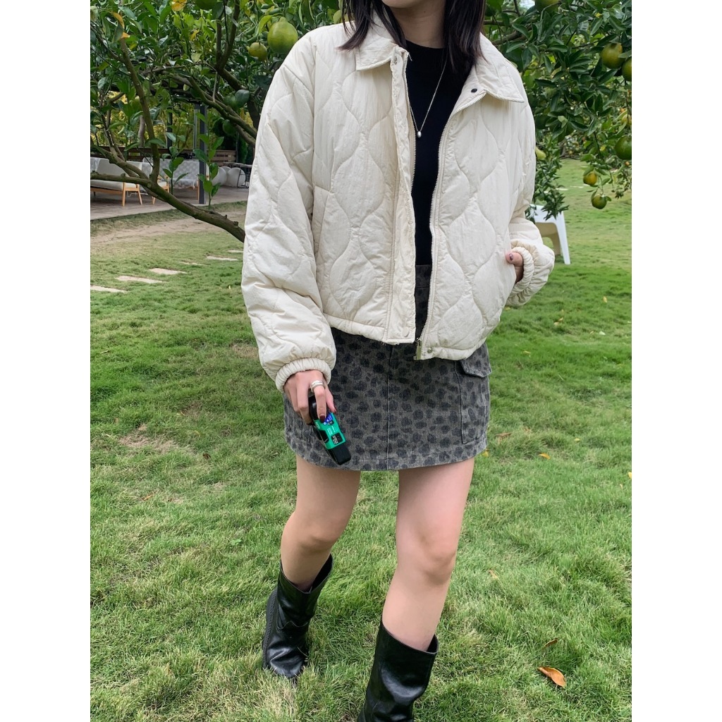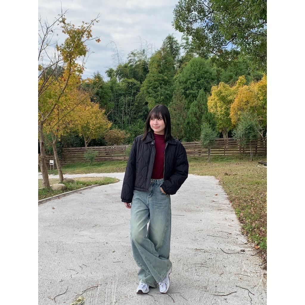 ※短版鋪棉葫蘆紋車線設計 有領 前面兩邊有真口袋 拉鍊修飾保護片 下擺可調整鬆緊抽繩 手袖縮口