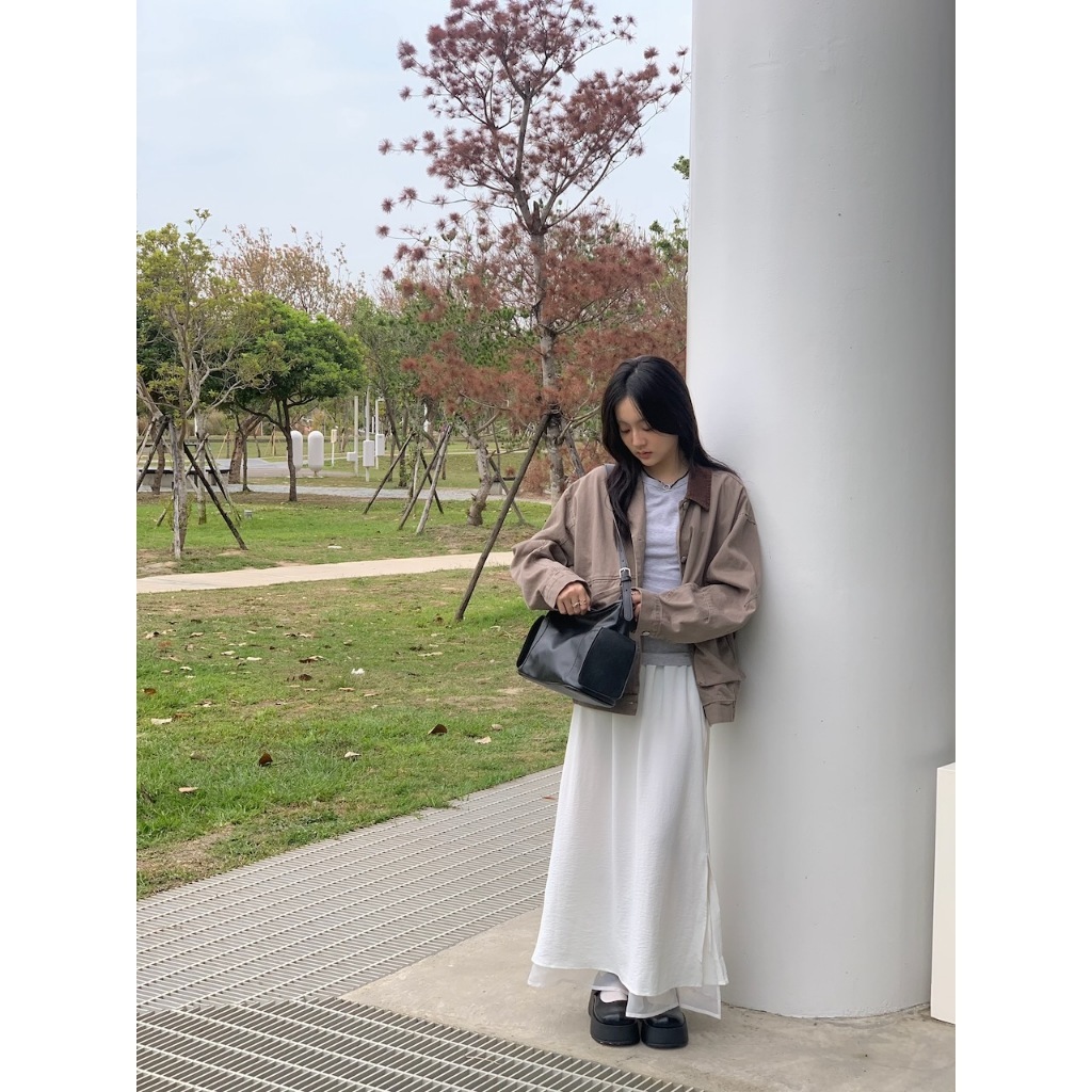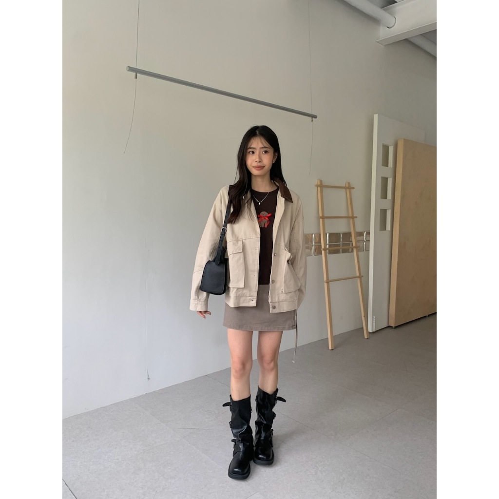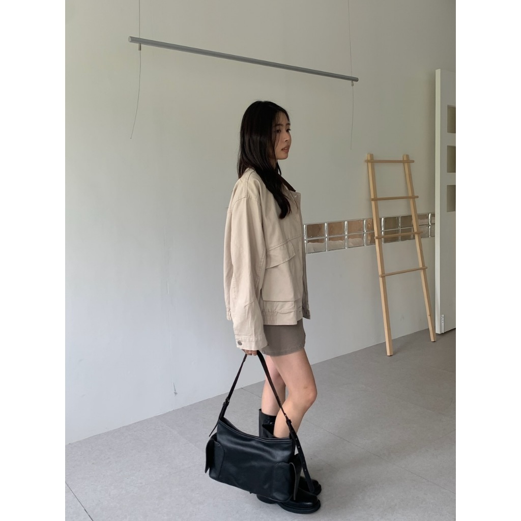 ※翻領拚色夾克 領口燈心絨 整排可開釦 前面左右兩邊翻蓋真口袋 後面、左右兩側下擺縮口