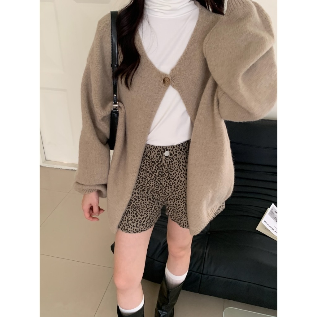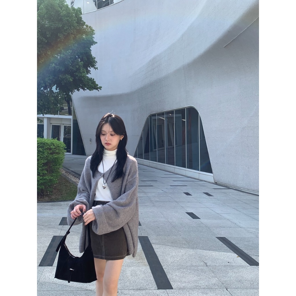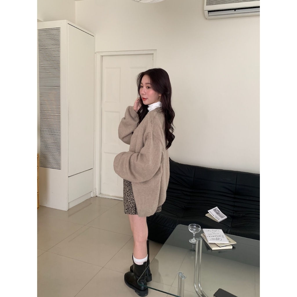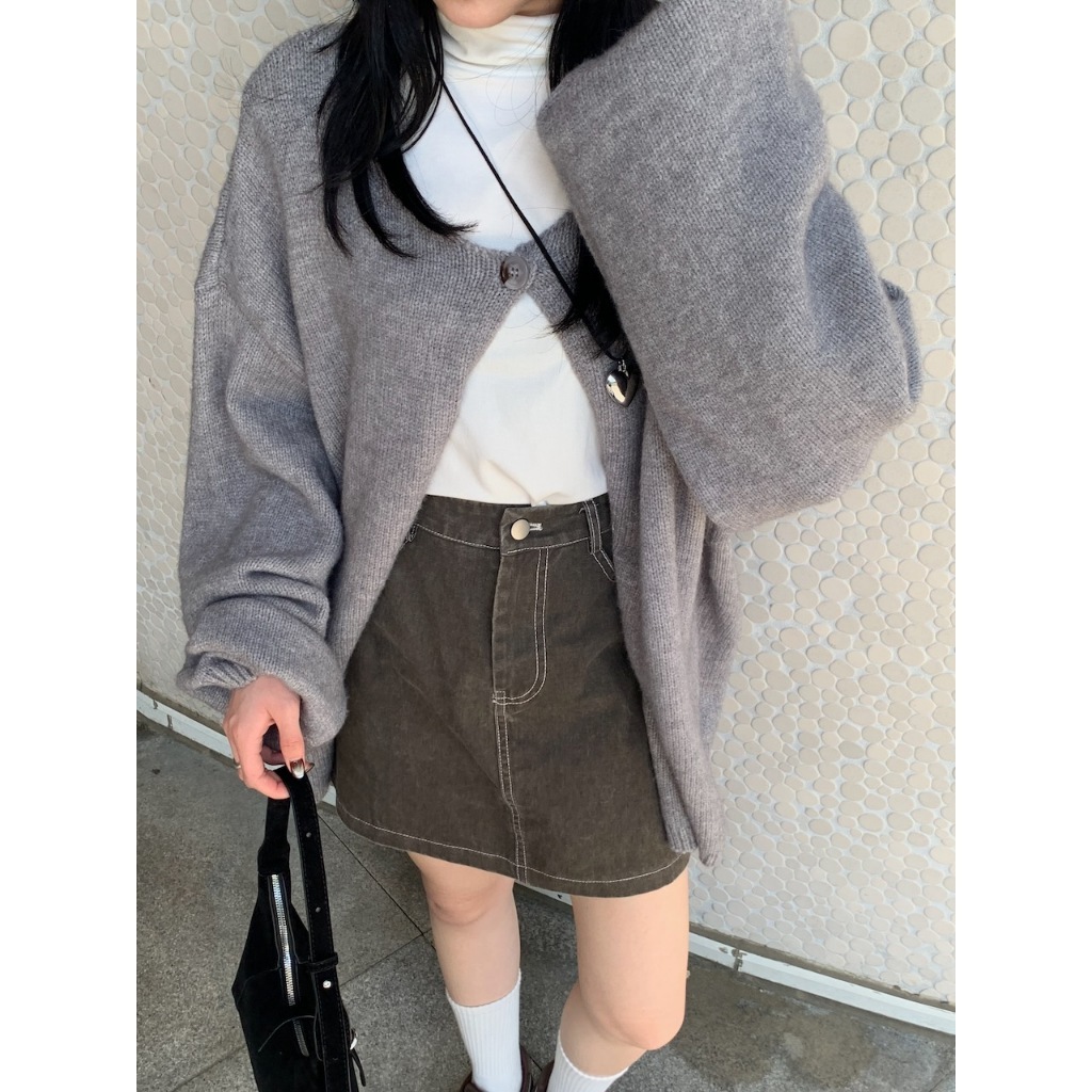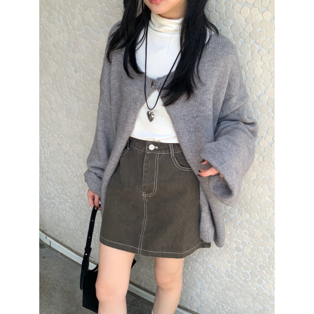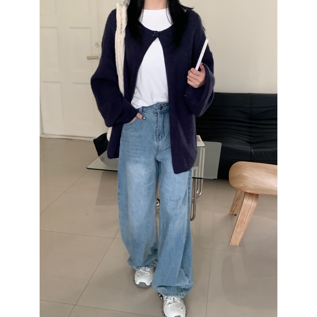 ※ 寬圓領毛衣針織長版寬袖袖口、下擺縮口胸前珍珠大真紐帶