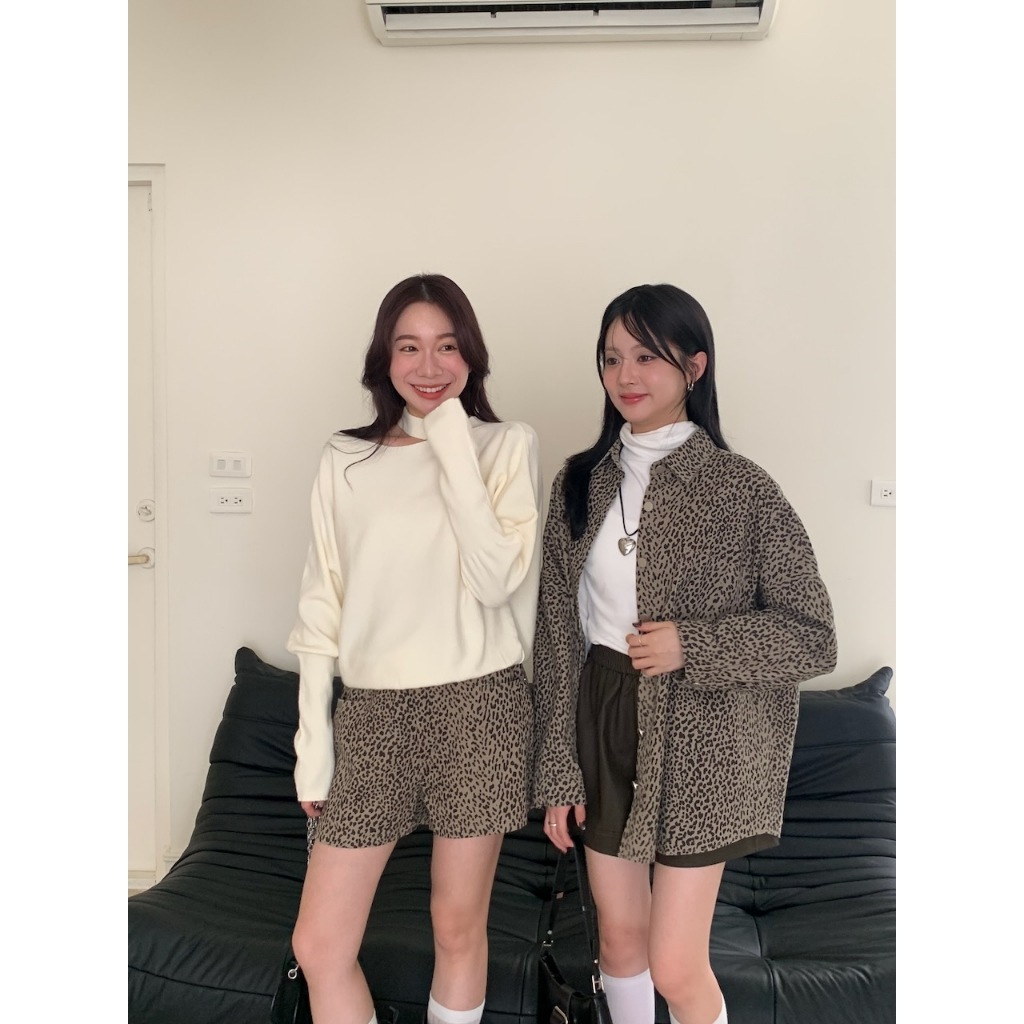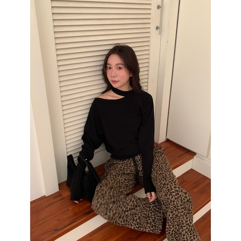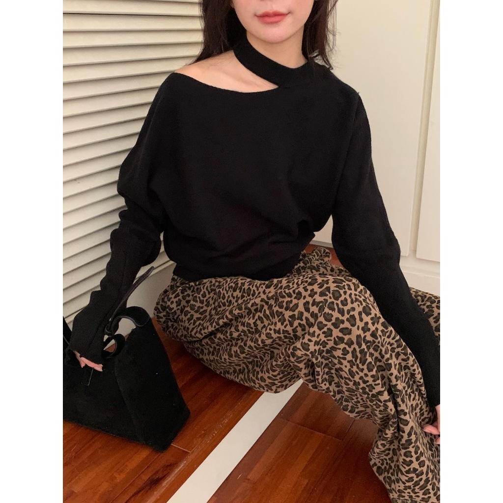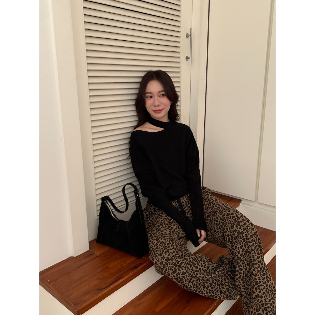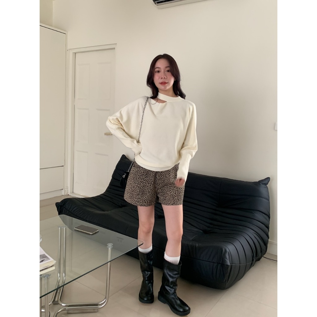 ※斜肩 左肩假背心露肩感 袖子半縮口 下擺縮口設計 素色