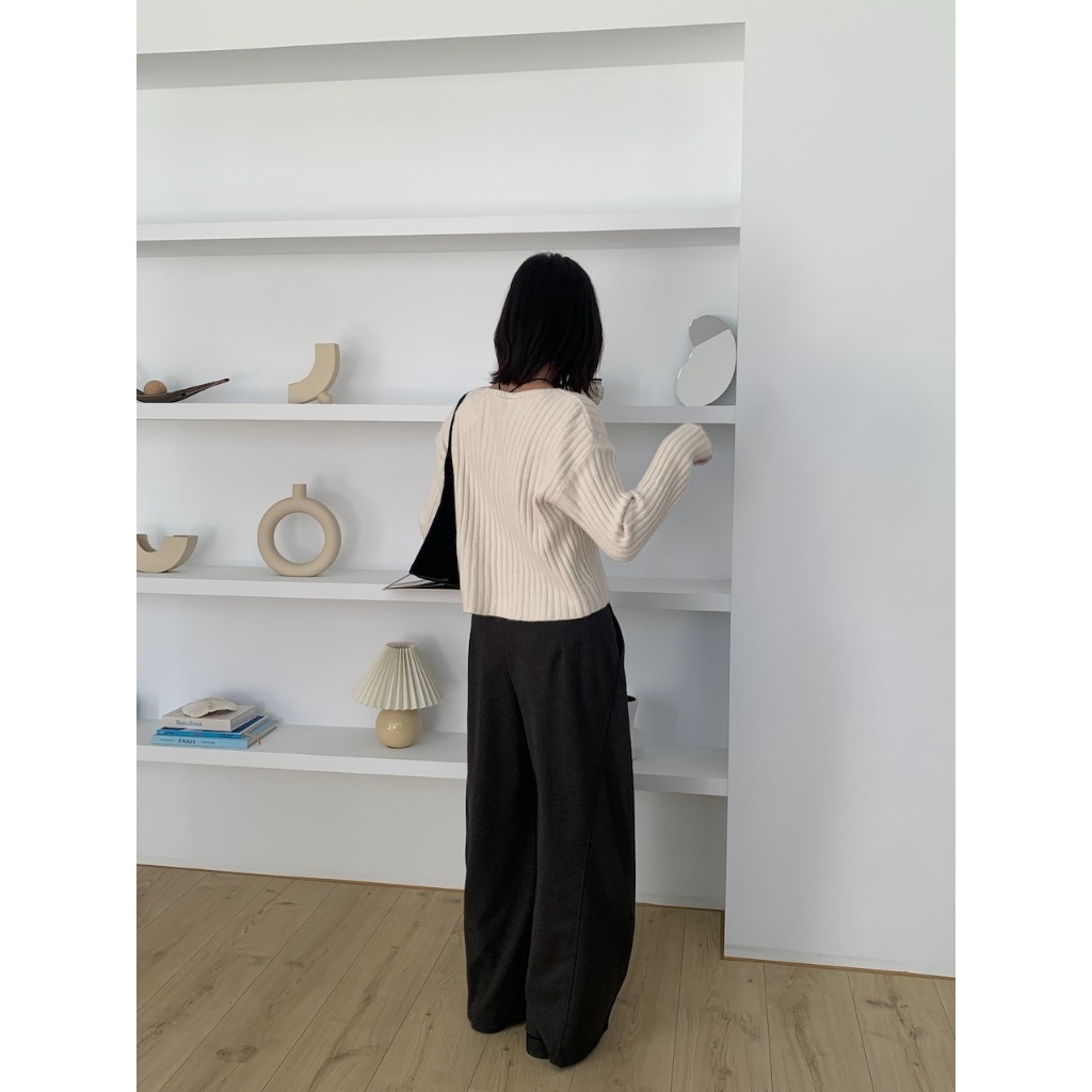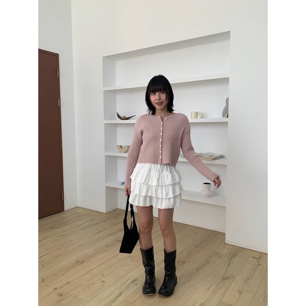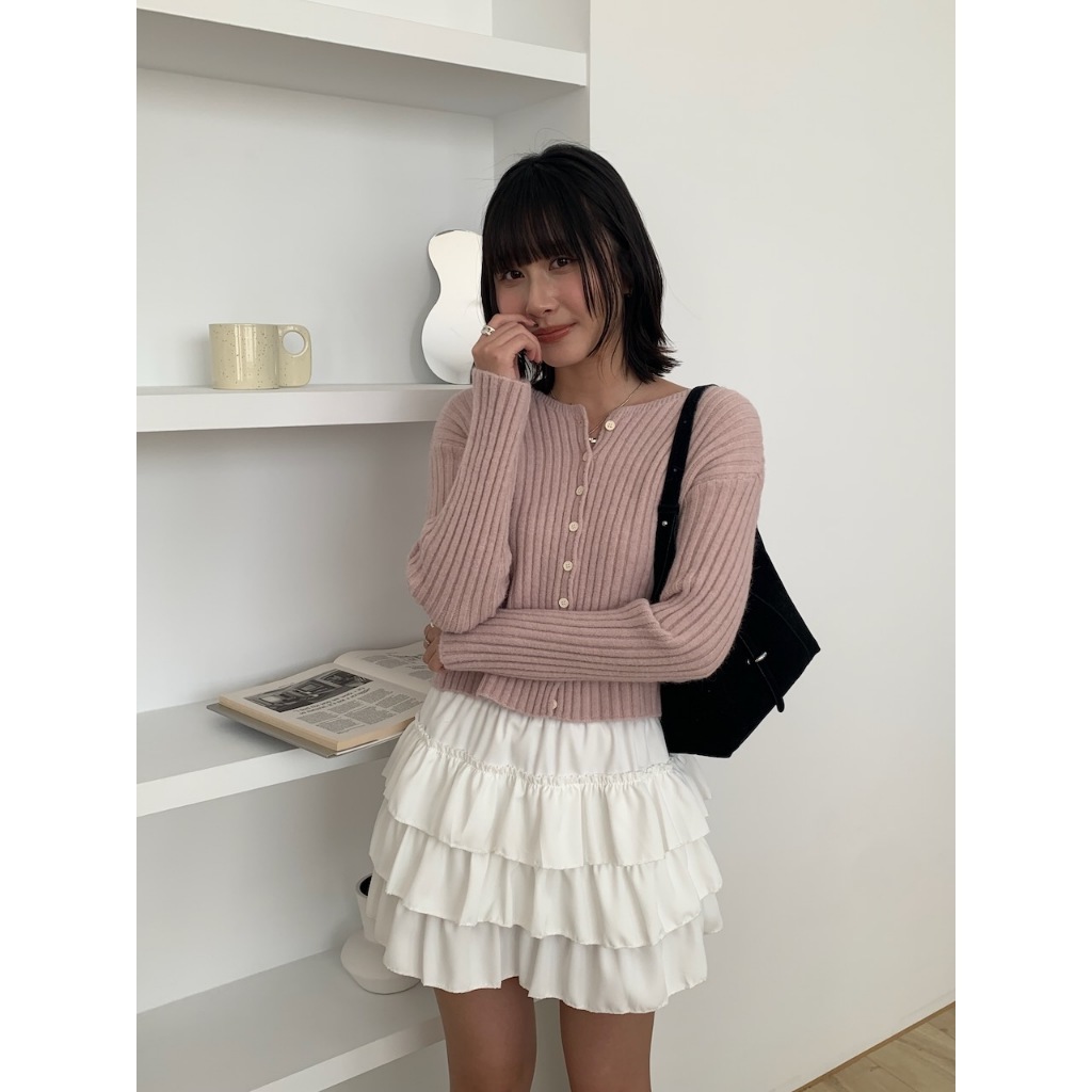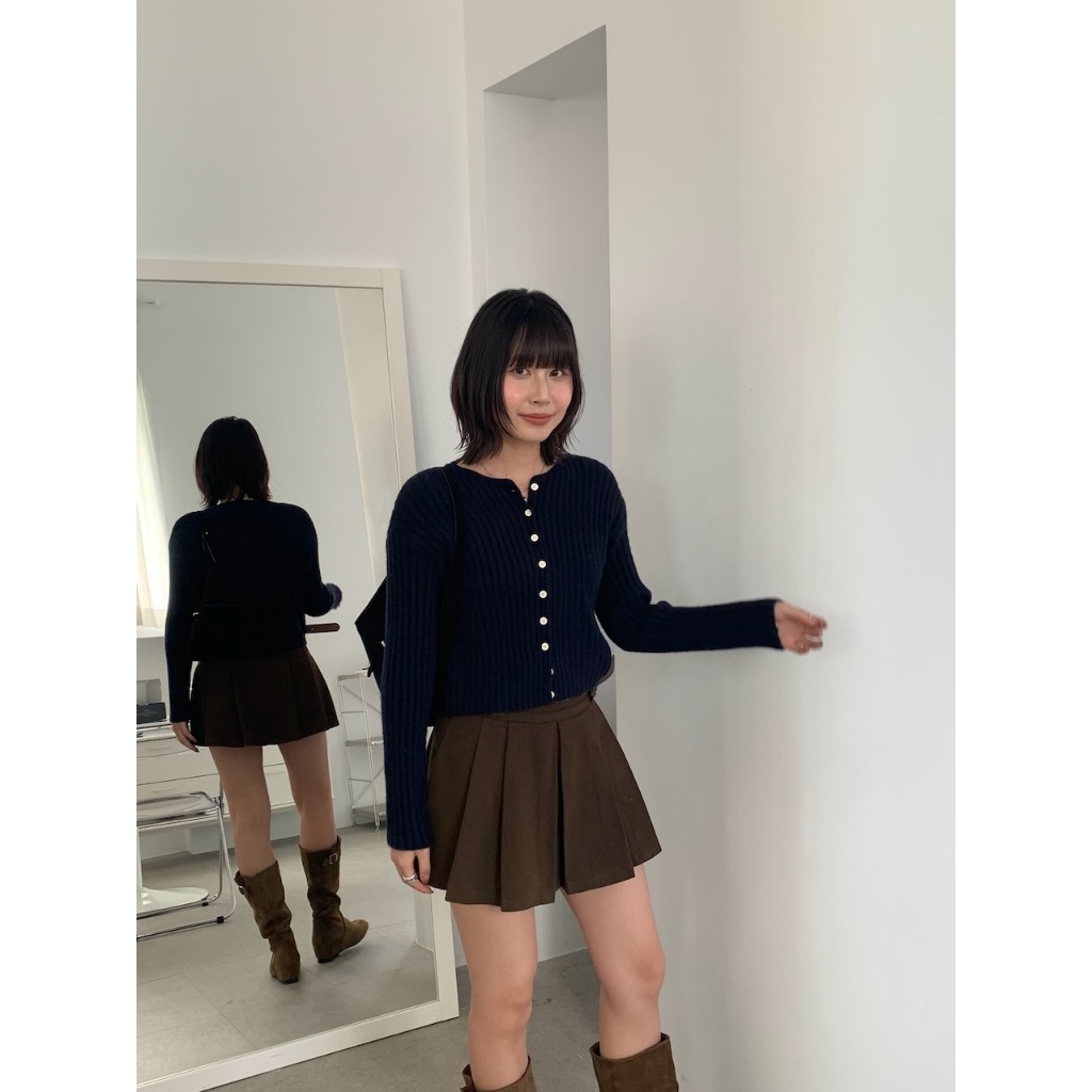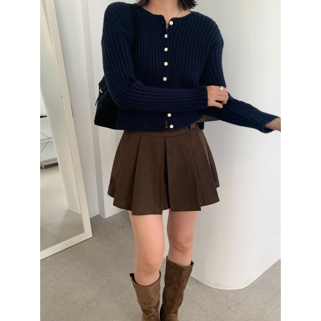 ※圓領 真排扣 小鈕扣 短版 直紋路針織 素色