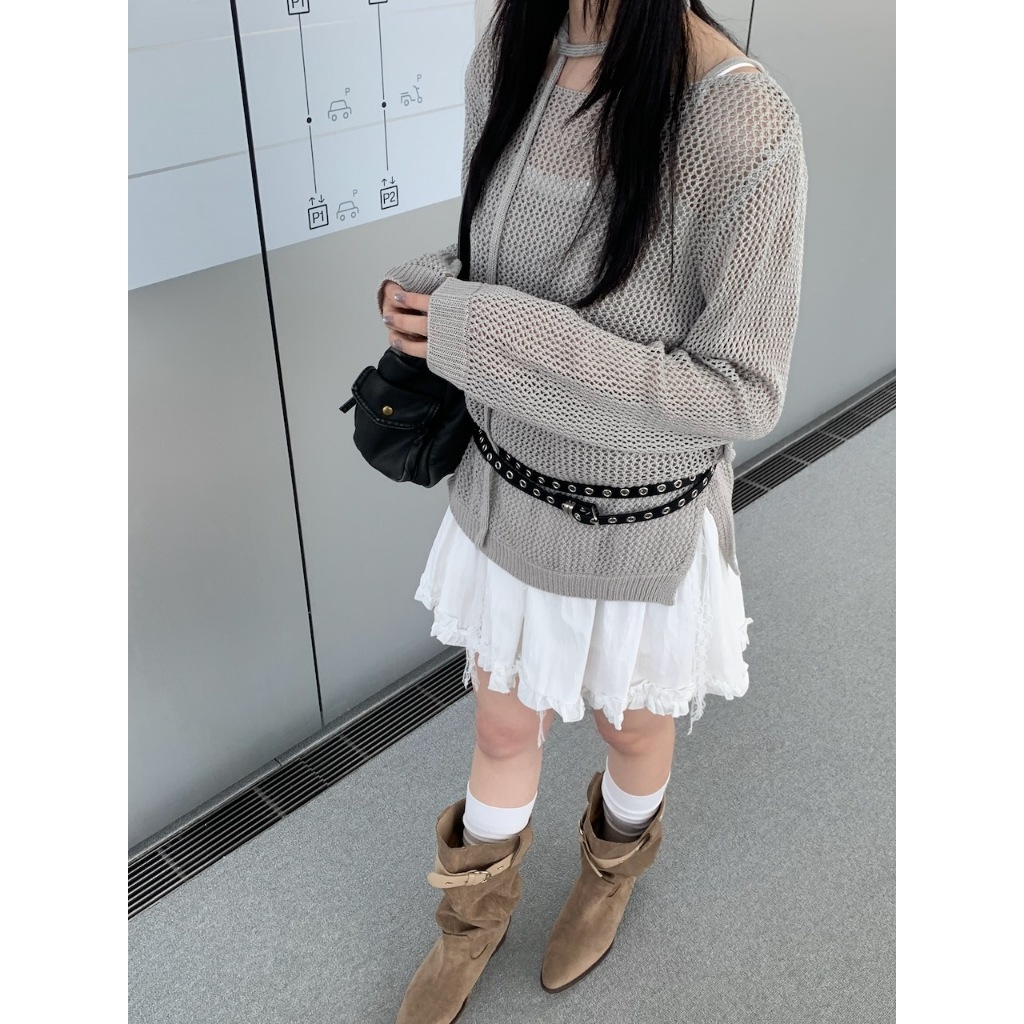 ※上衣:兩件式 中長板針織外罩 左右兩側小開岔 會透