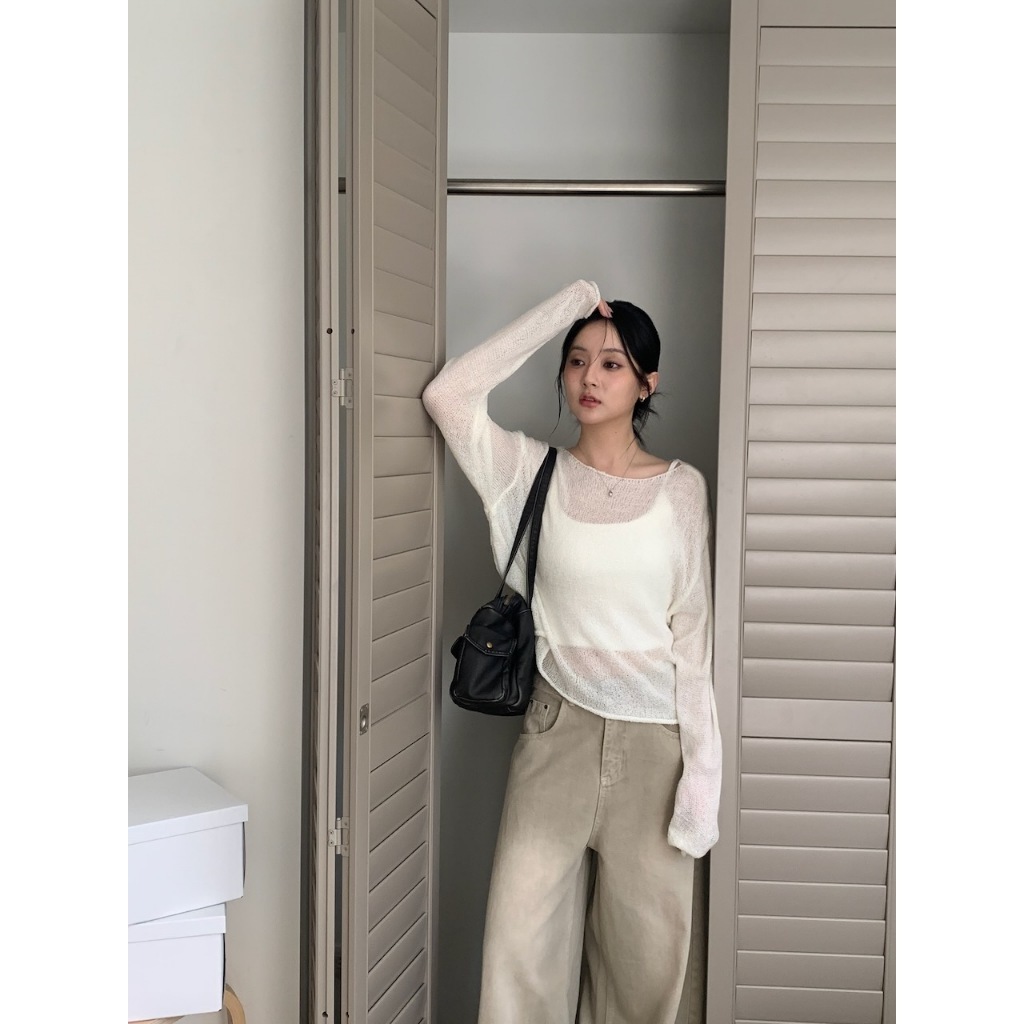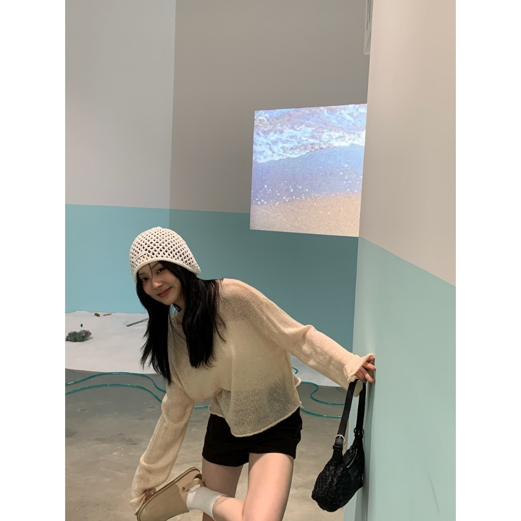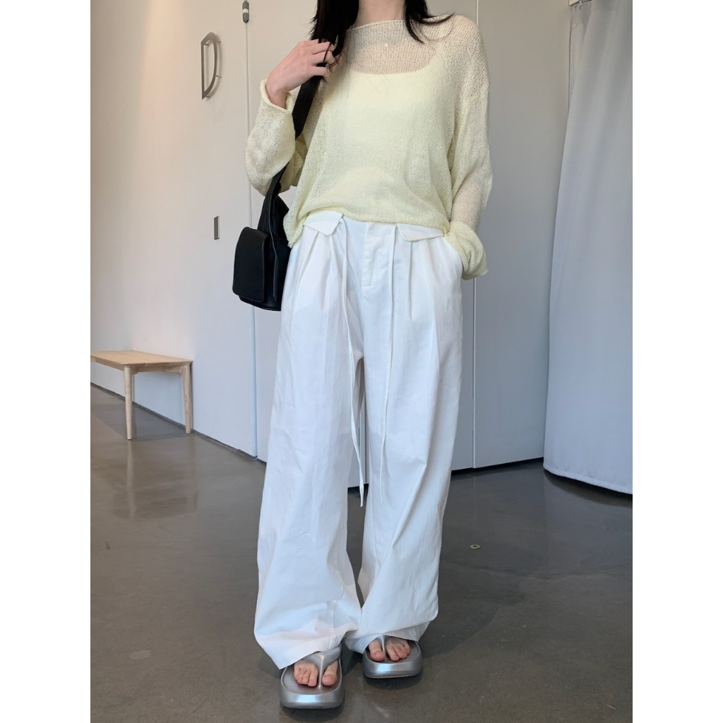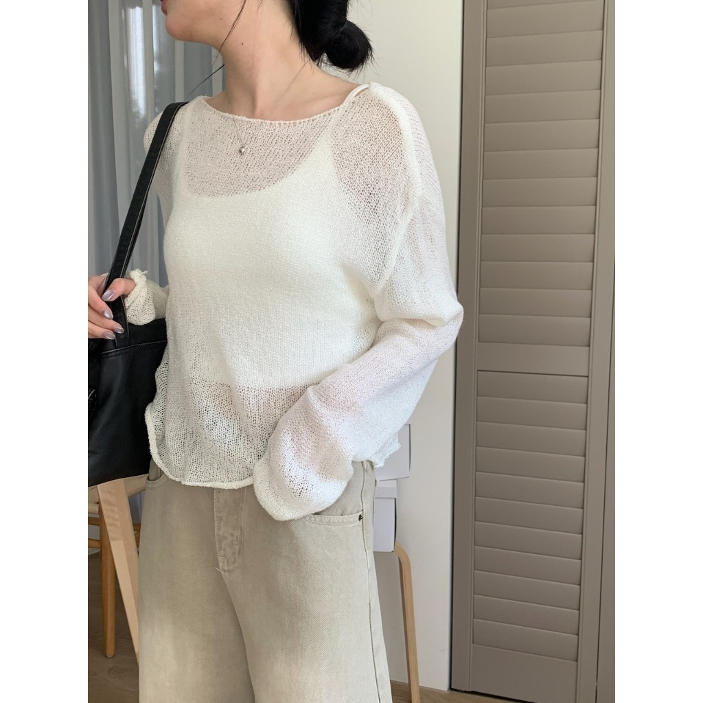 ※外罩細針織寬圓領 下擺、手袖捲邊設計 素色