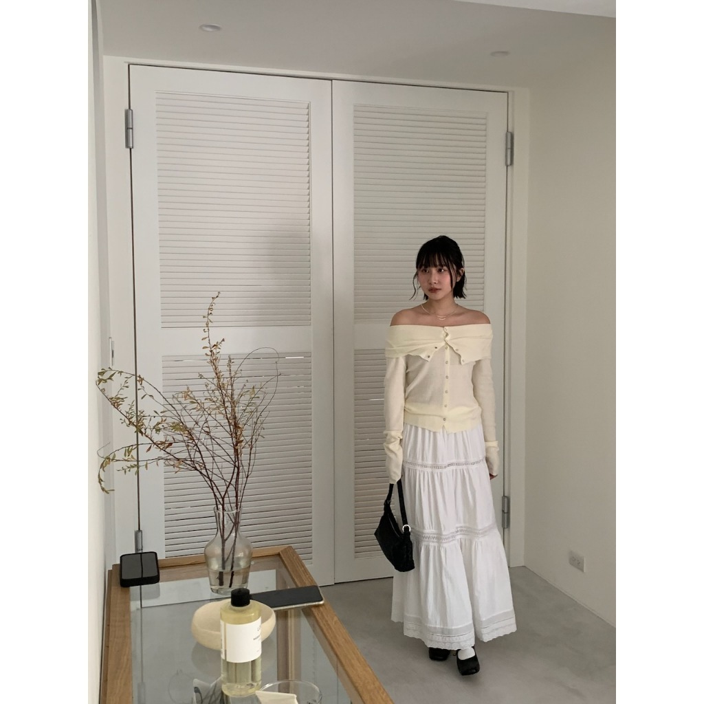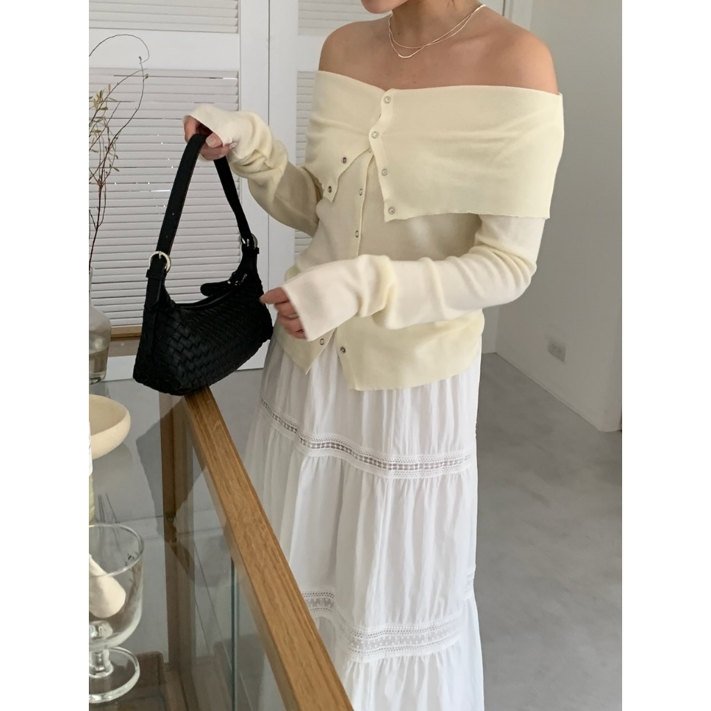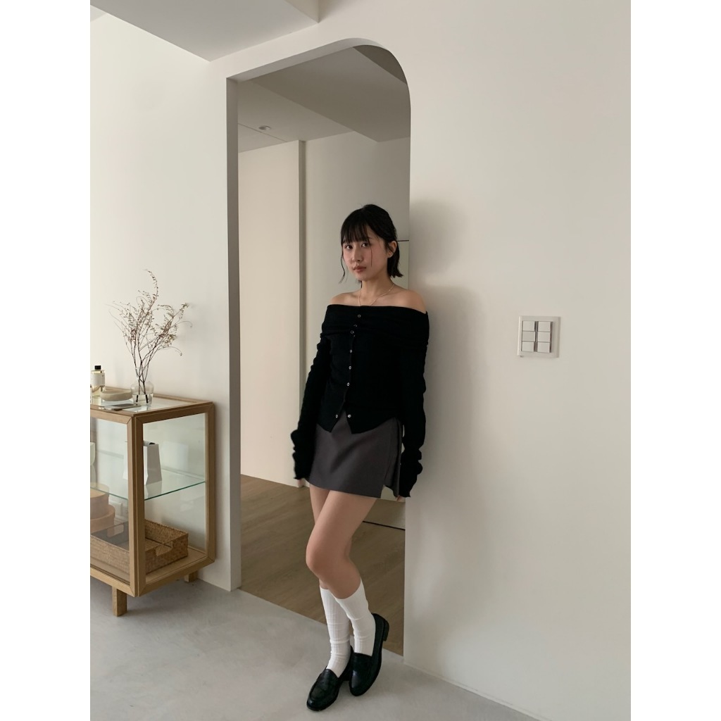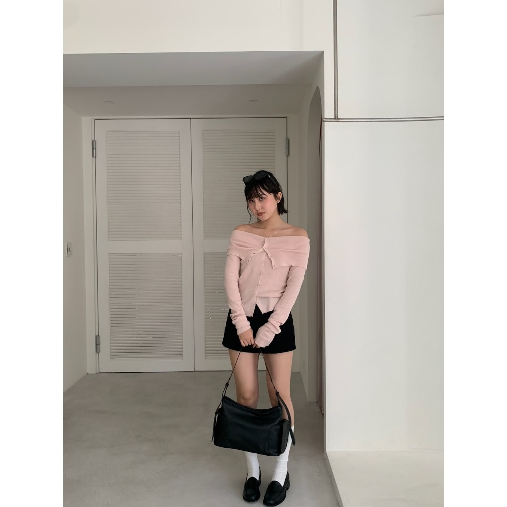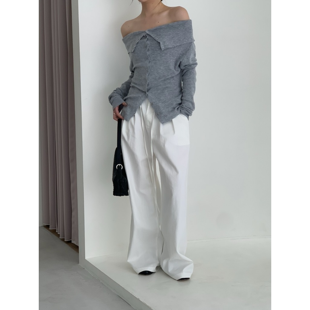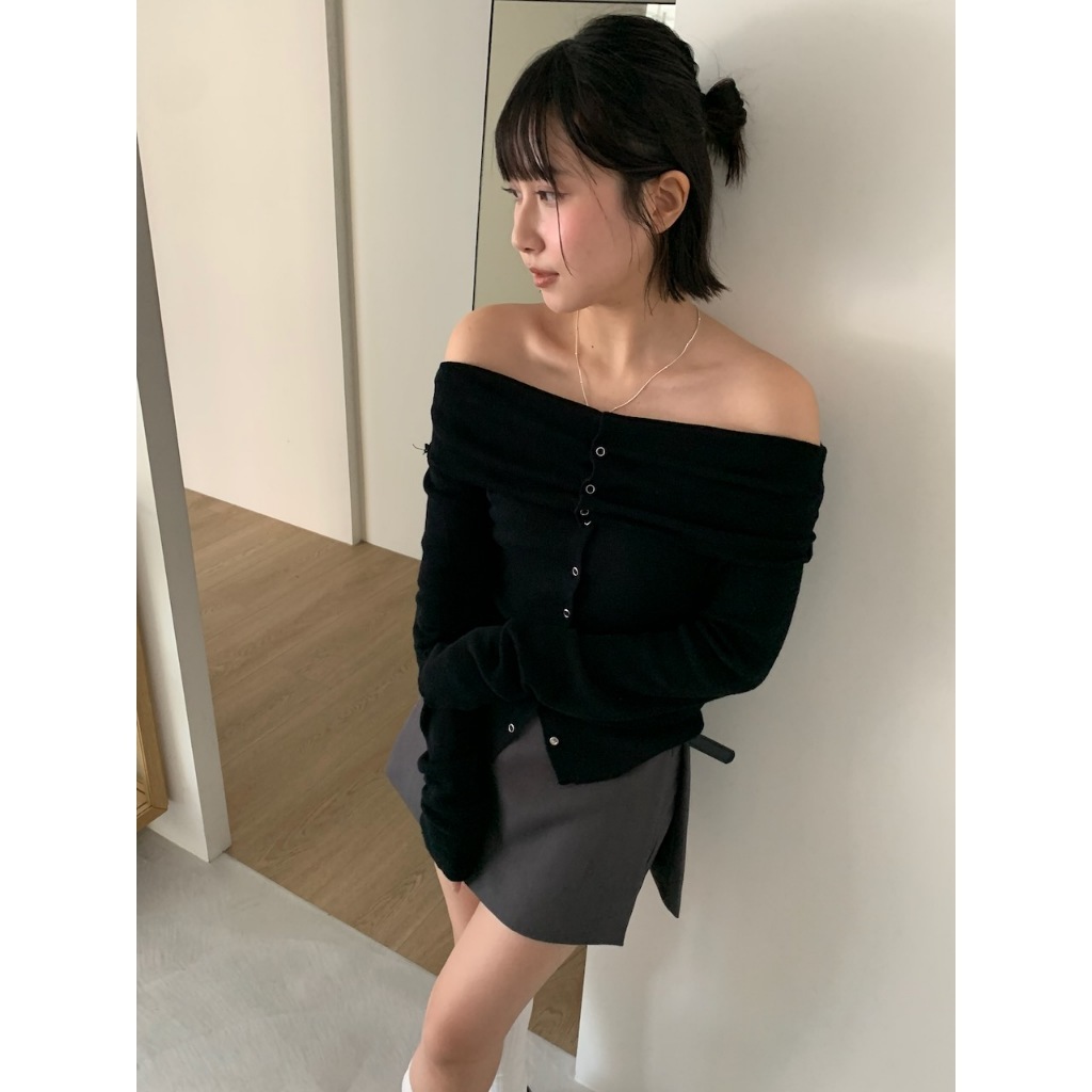 ※可露肩翻領細針織 前面排扣式 真鈕扣 素色