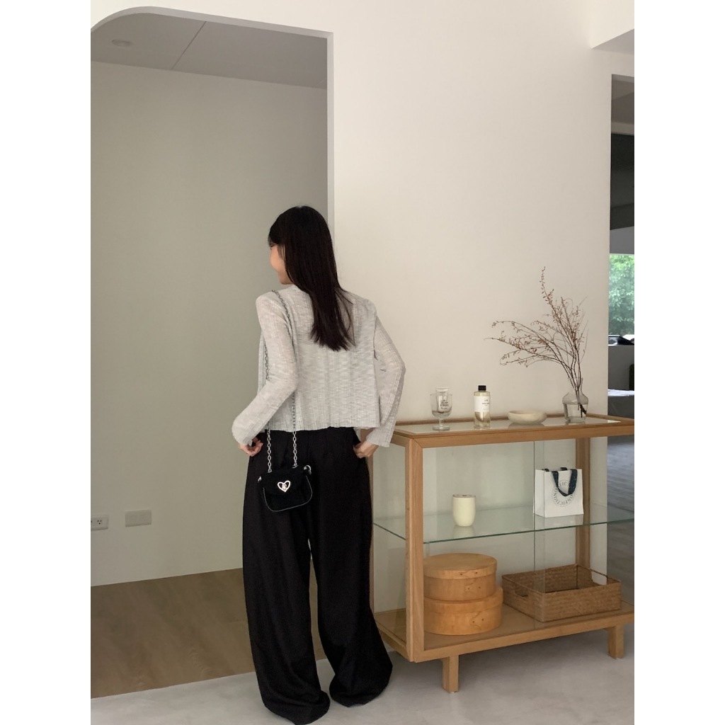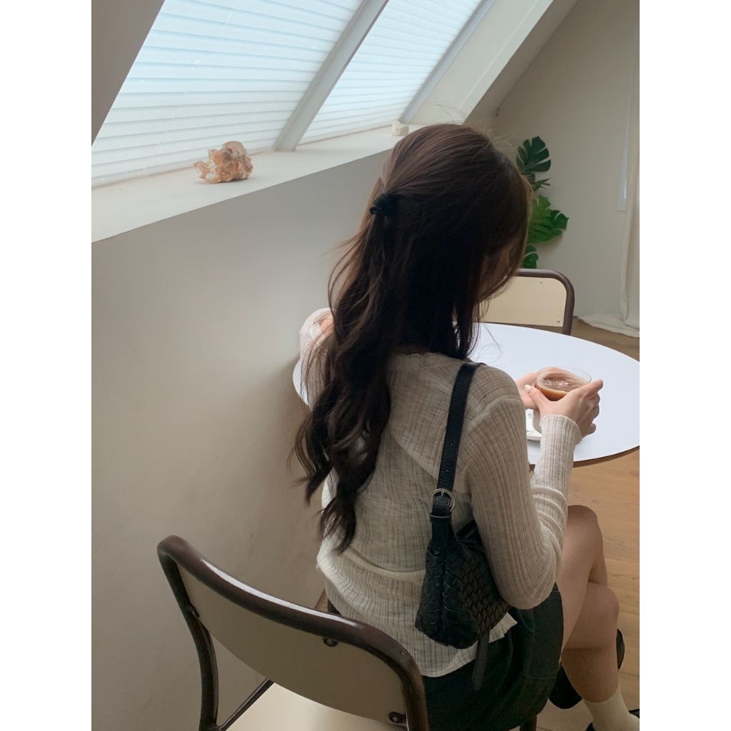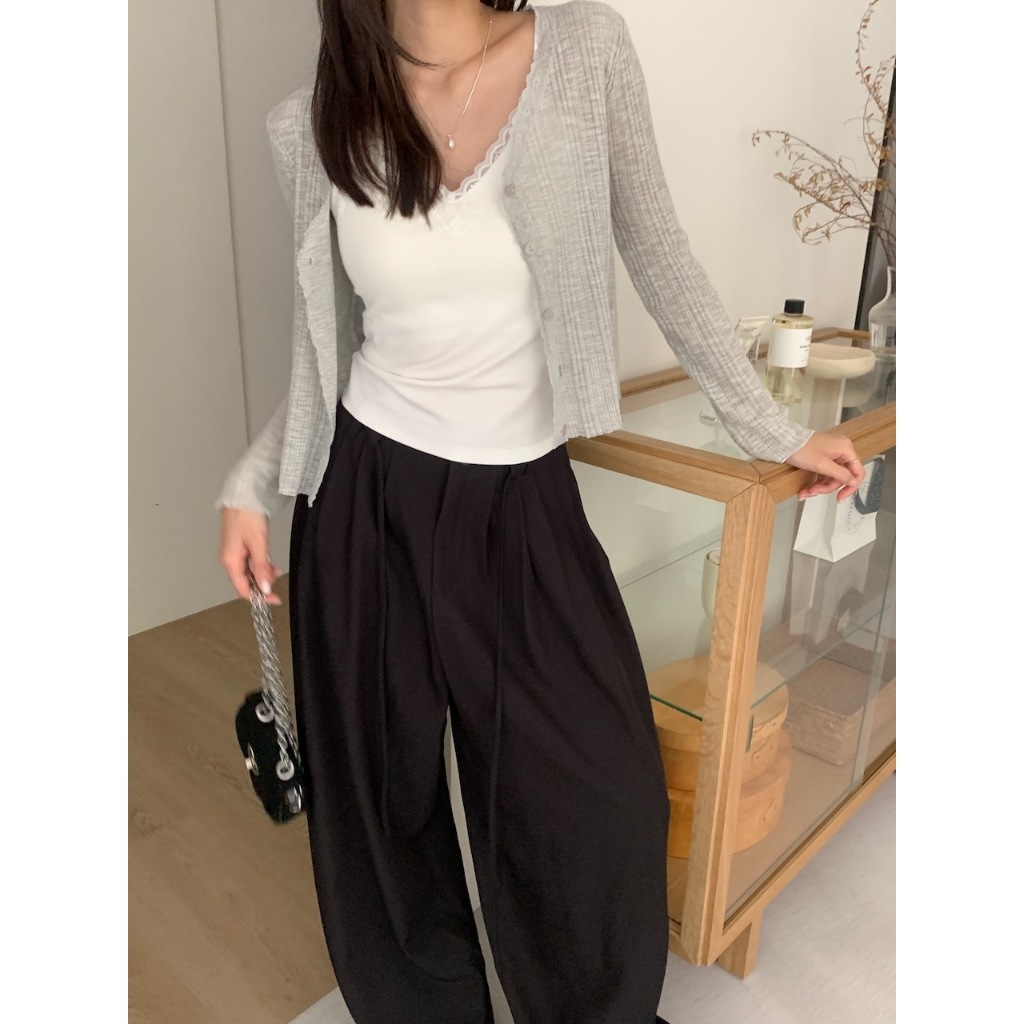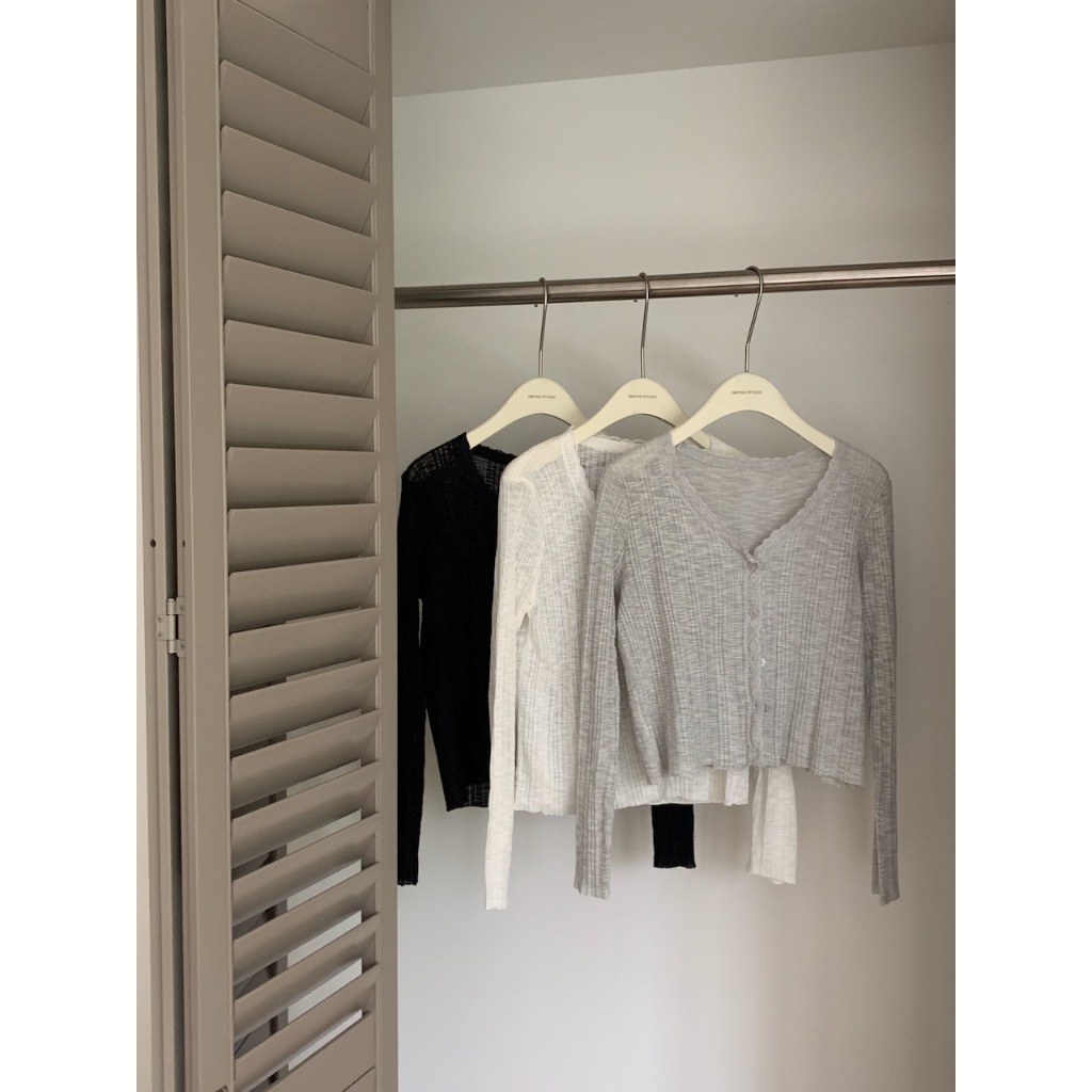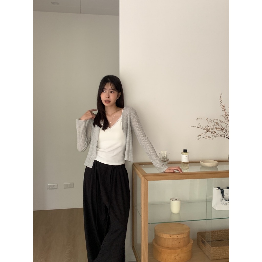 ※微V領紡紗罩衫 中長版 前真排扣 鈕扣貝殼光澤 領邊至鈕扣蕾絲花邊 有彈性 薄透
