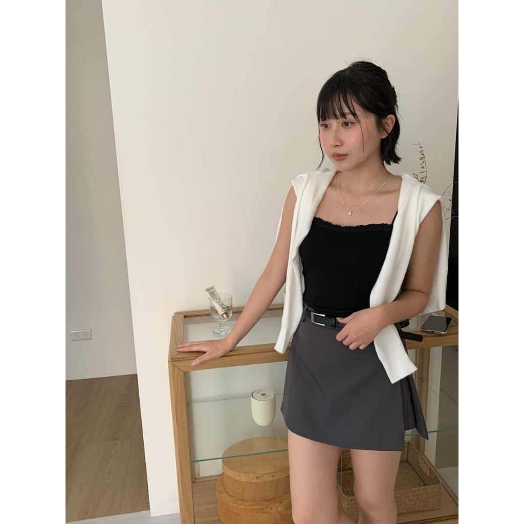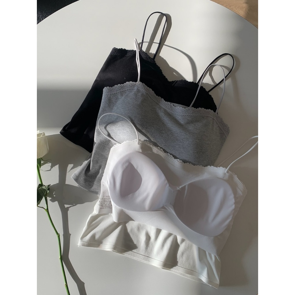 ※細肩帶罩杯式 短版 心型領 前領花邊設計