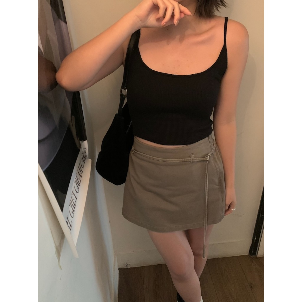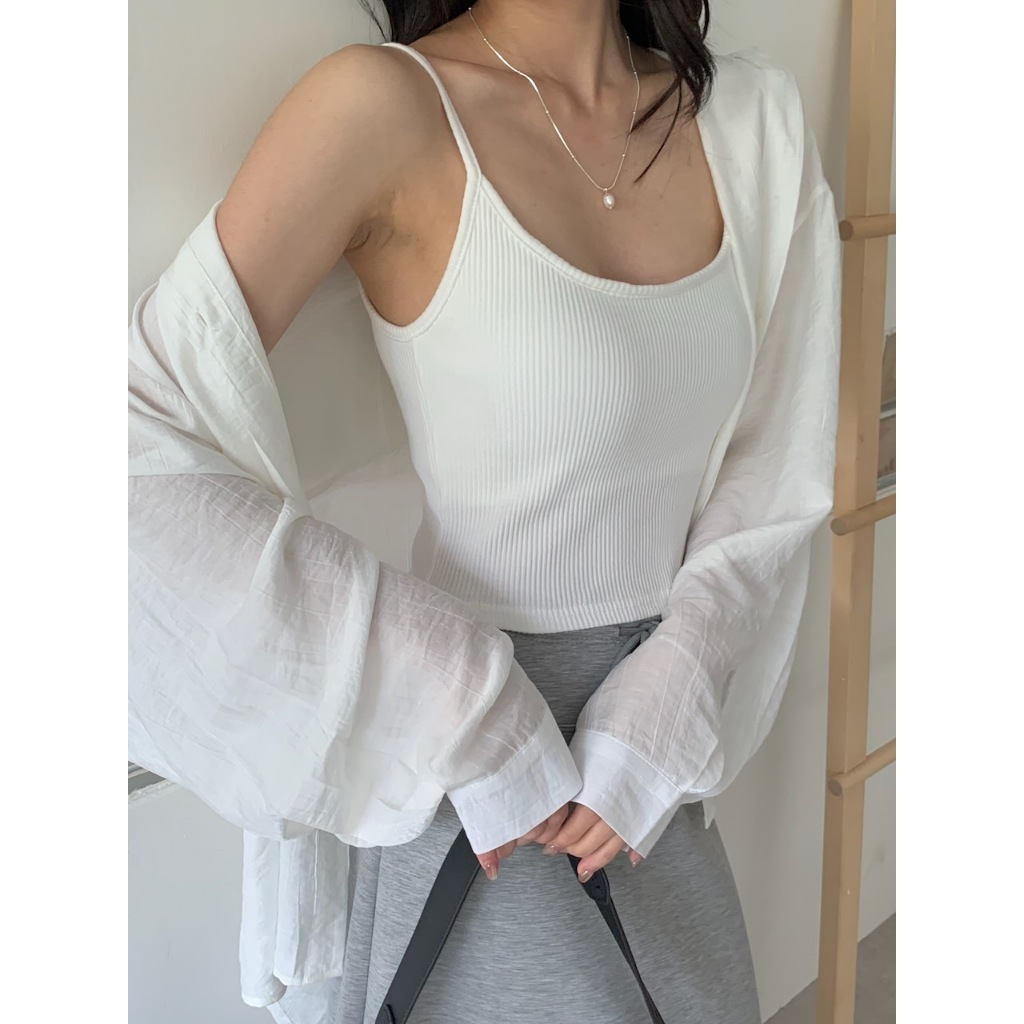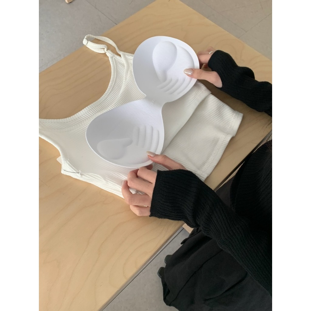 ※ 罩杯式 可拆式罩杯 短版圓領直條紋布 細肩帶可調整素色