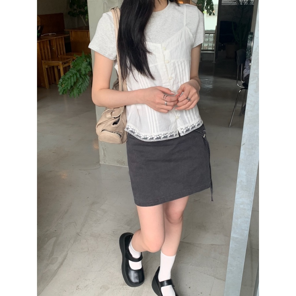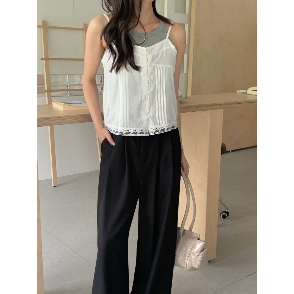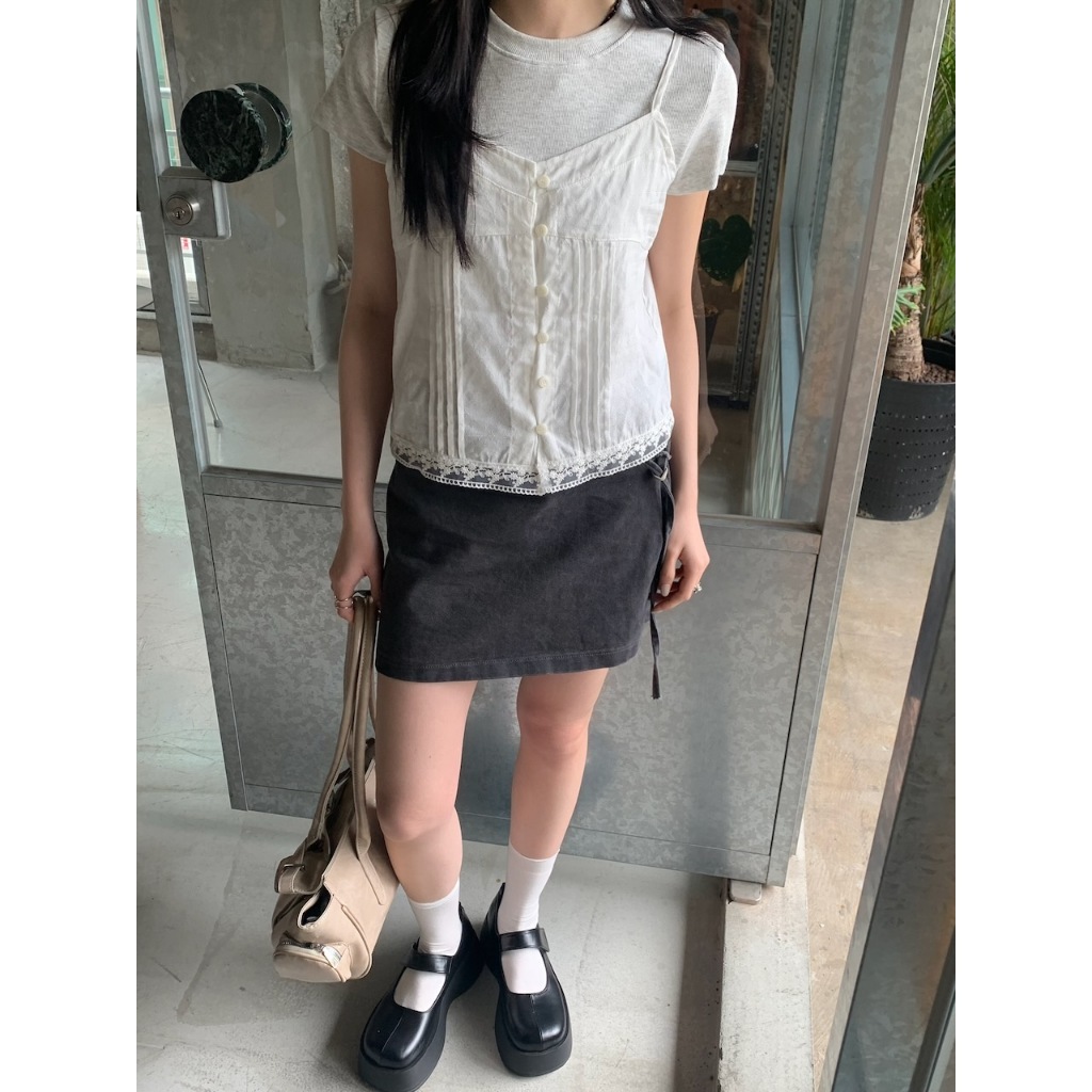 ※可調整細肩帶 微V領 可開式前排釦 整片菱格紋紋路 下擺拼接花紋蕾絲