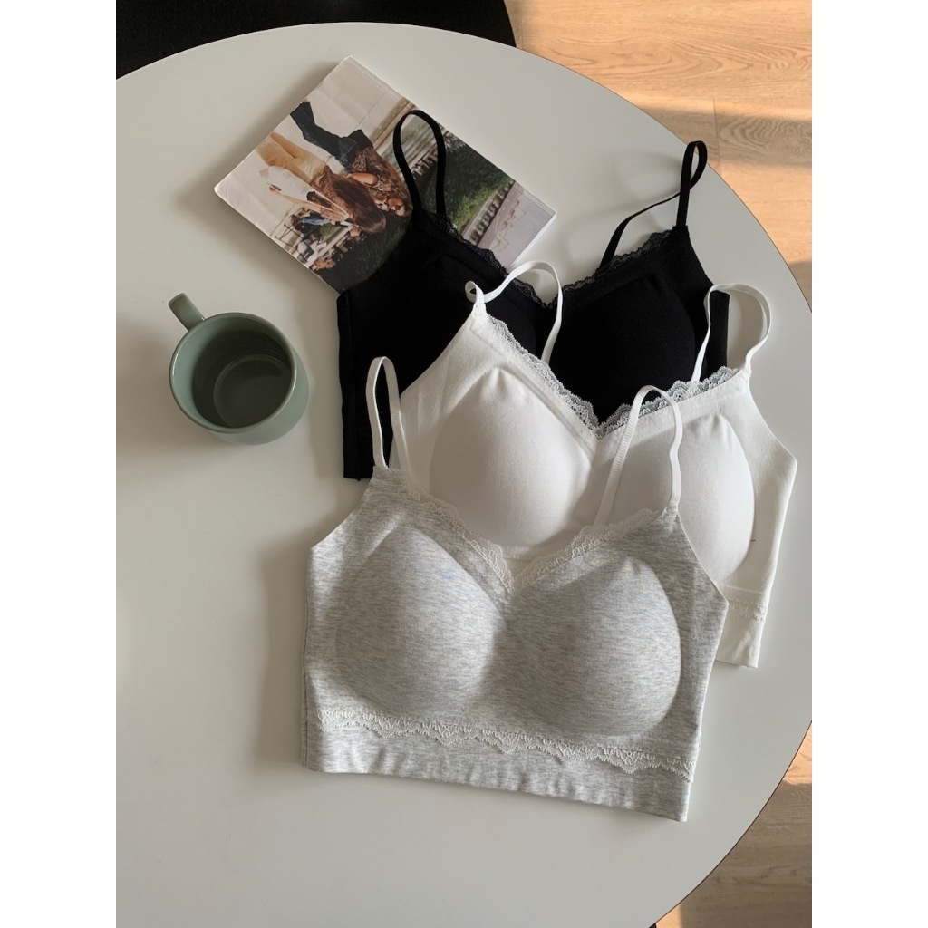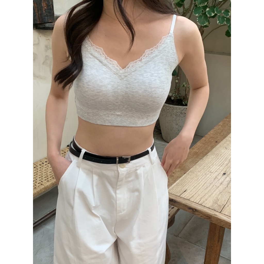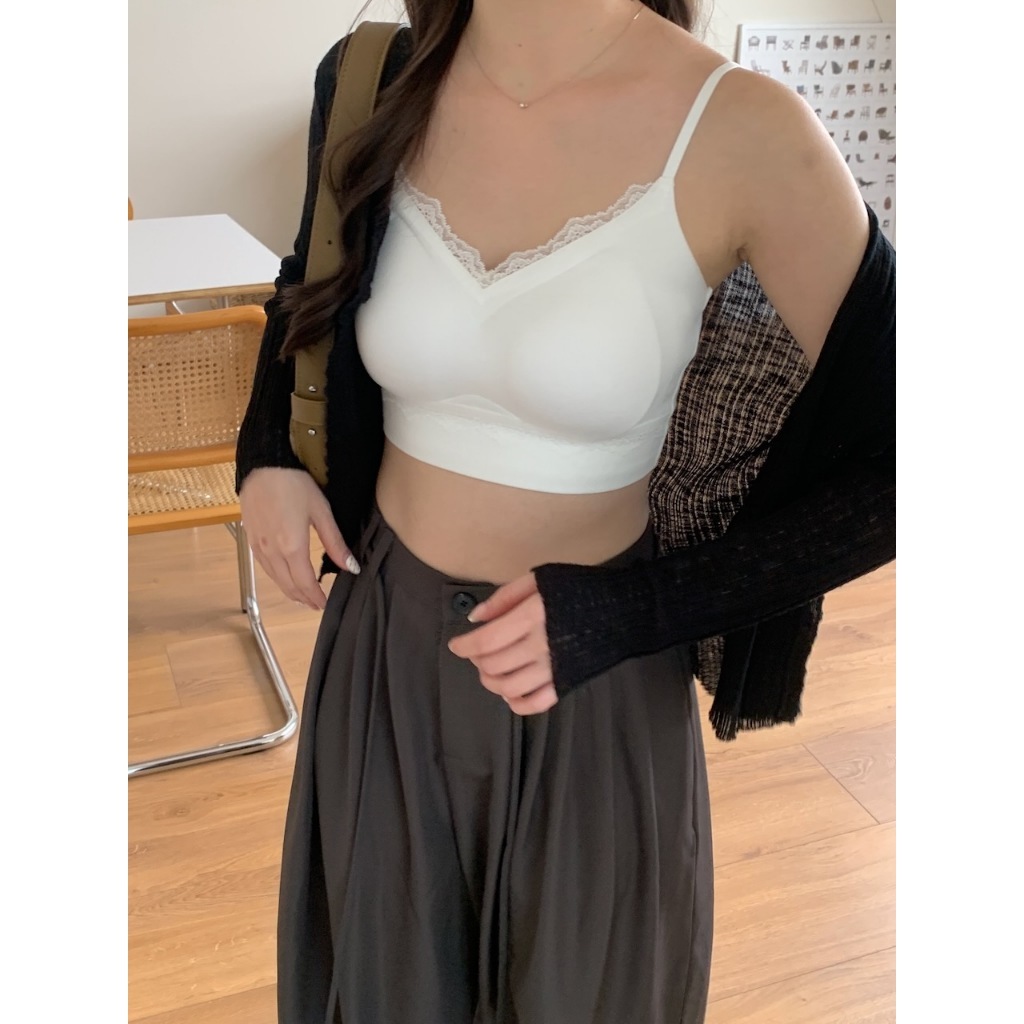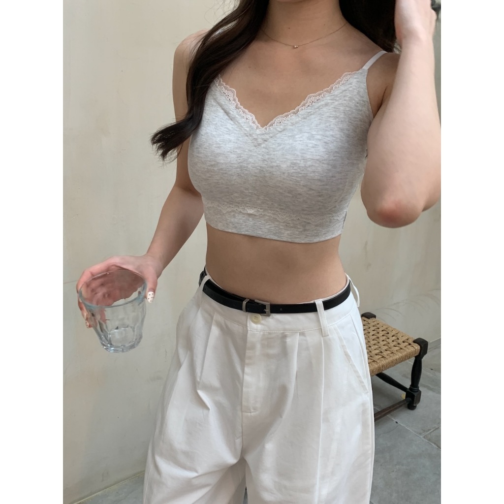 ※短版V領細肩帶罩杯BRA 後平口 罩杯不可拆 罩杯微厚 肩帶可調節 領口、下胸圍蕾絲車邊 有彈性