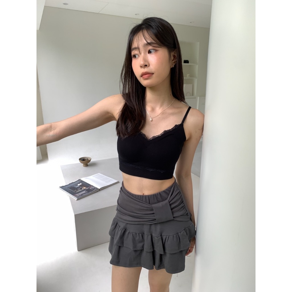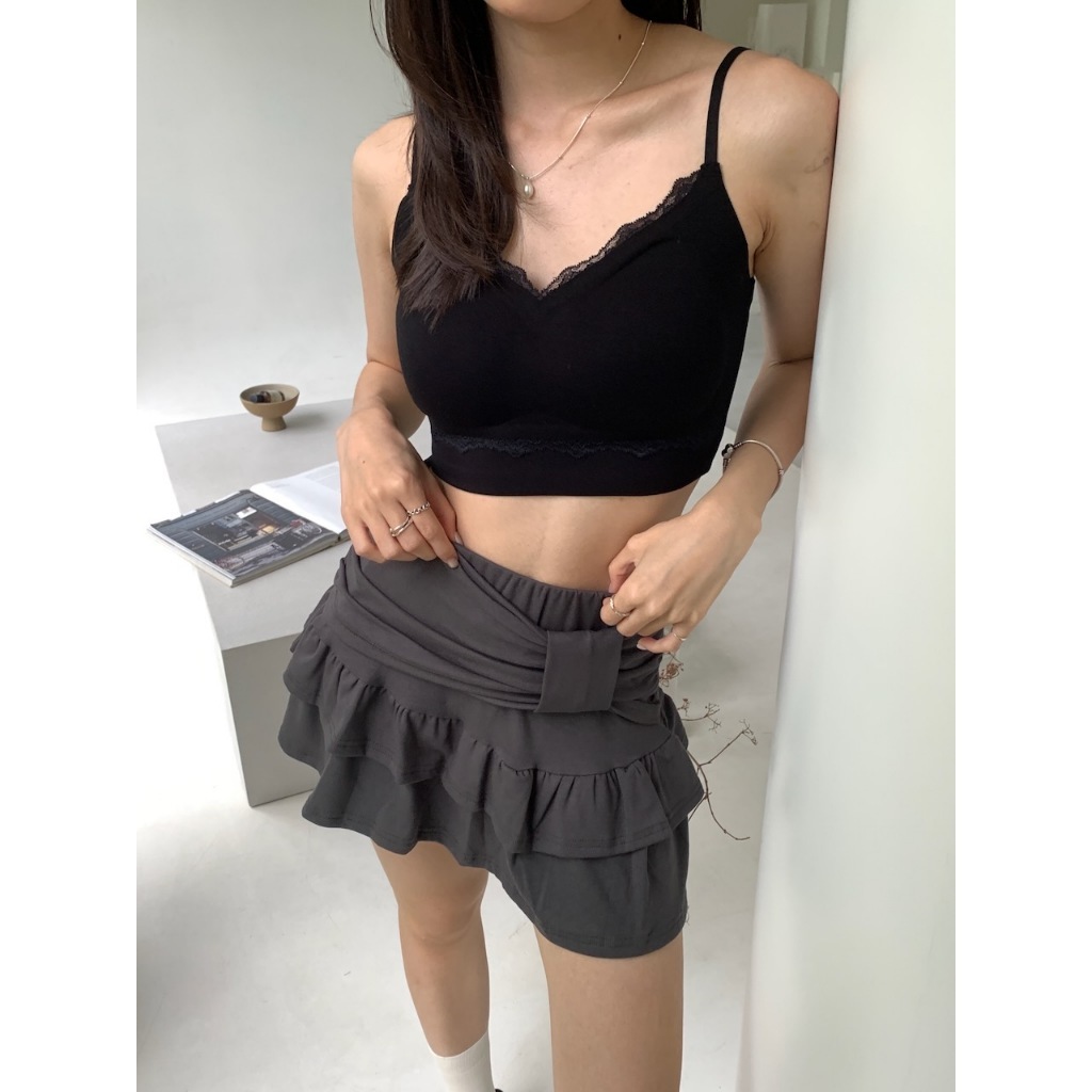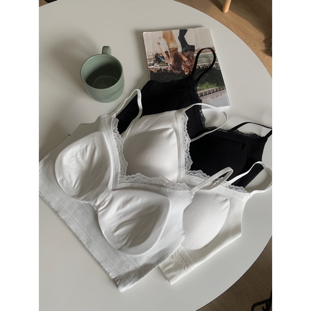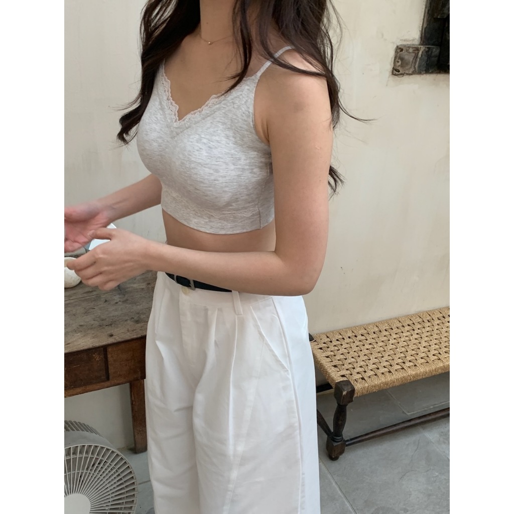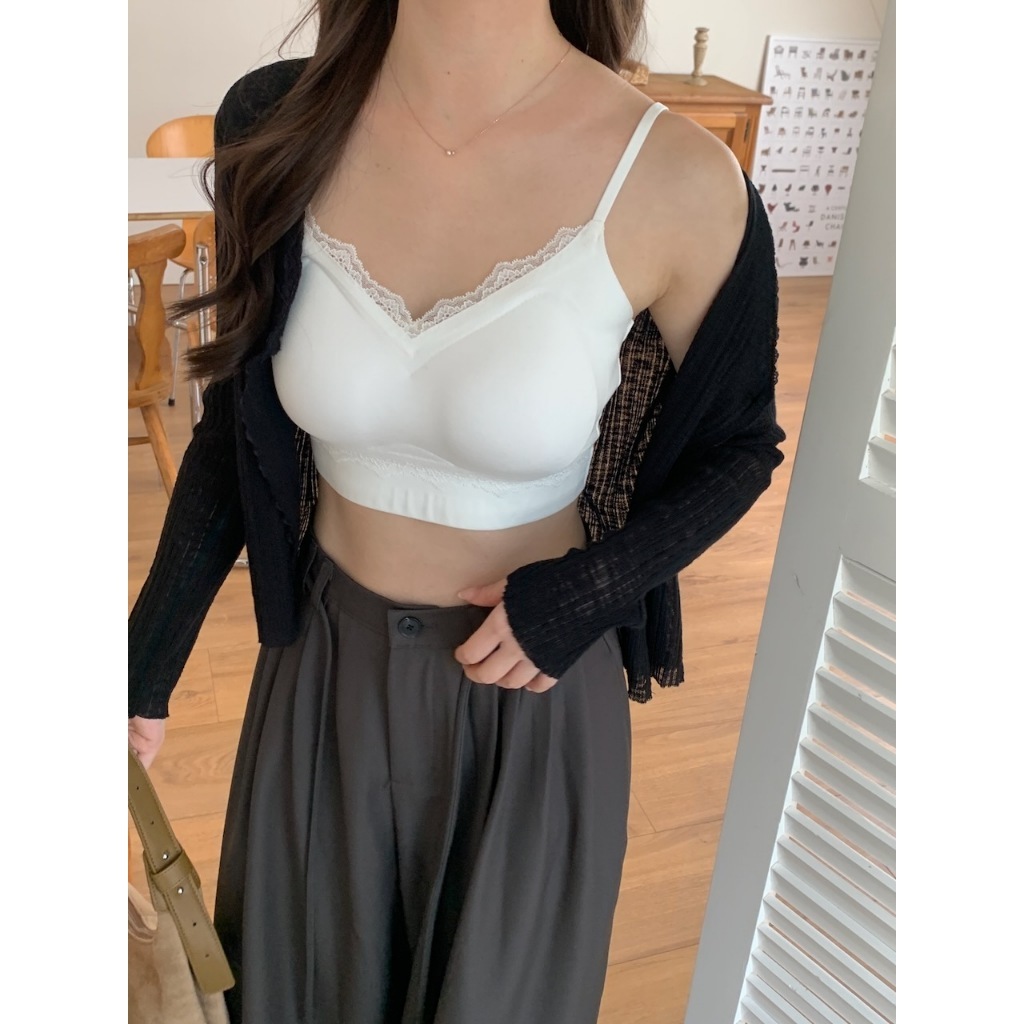 ※短版V領細肩帶罩杯BRA 後平口 罩杯不可拆 罩杯微厚 肩帶可調節 領口、下胸圍蕾絲車邊 有彈性