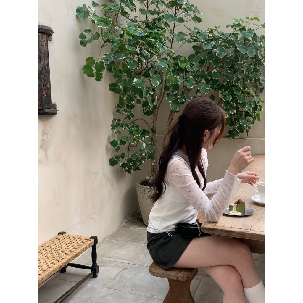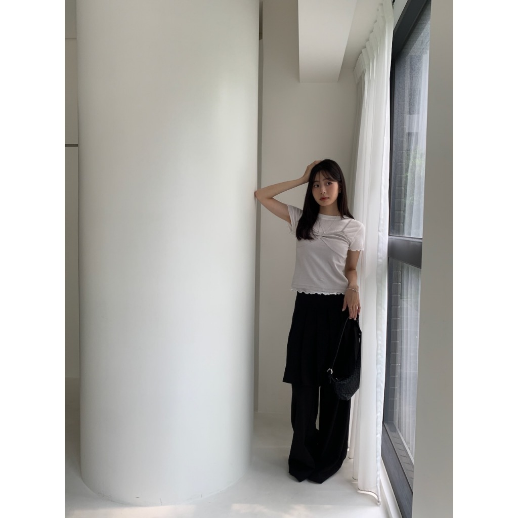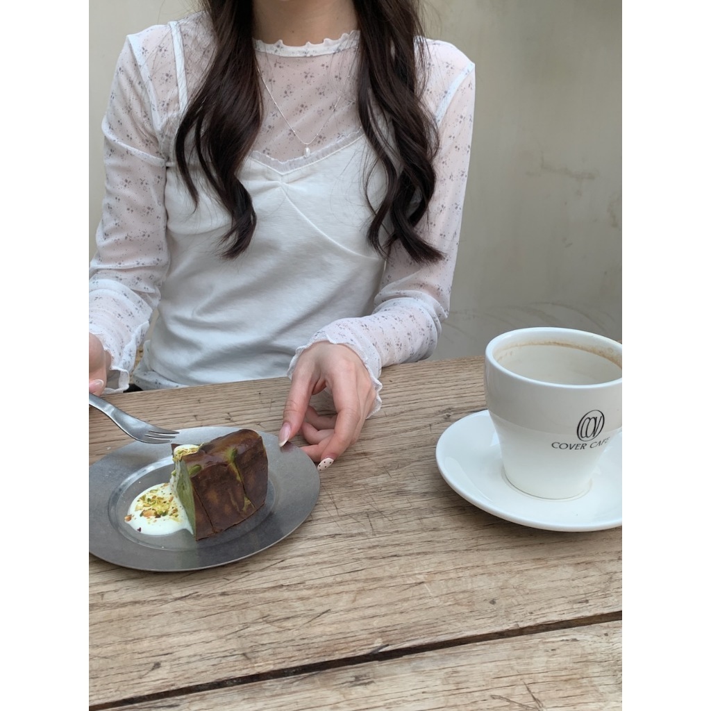 ※細肩帶 微V領 短版 可調節肩帶 領口整圈紡紗皺褶花邊 前面車縫胸型設計 有彈性 素色