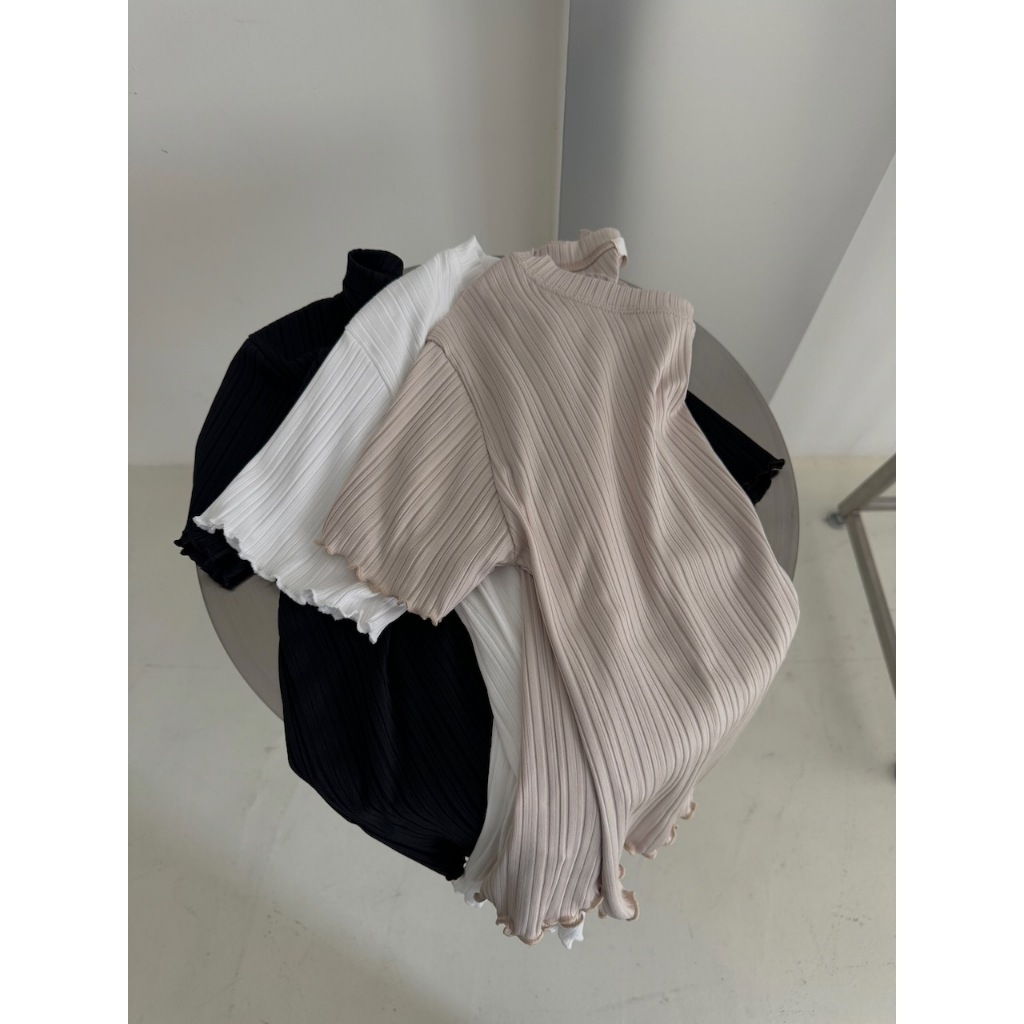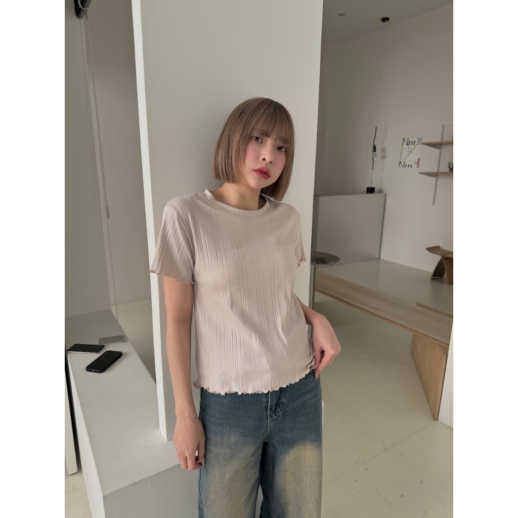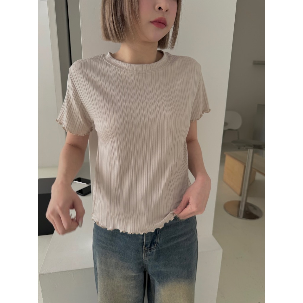 ※ 袖口、下擺木耳邊 類坑條 微透膚