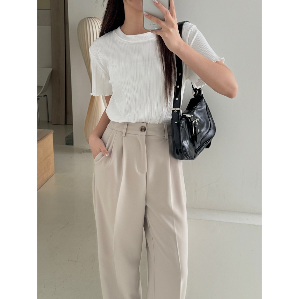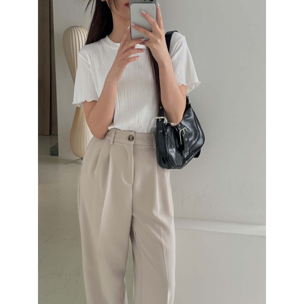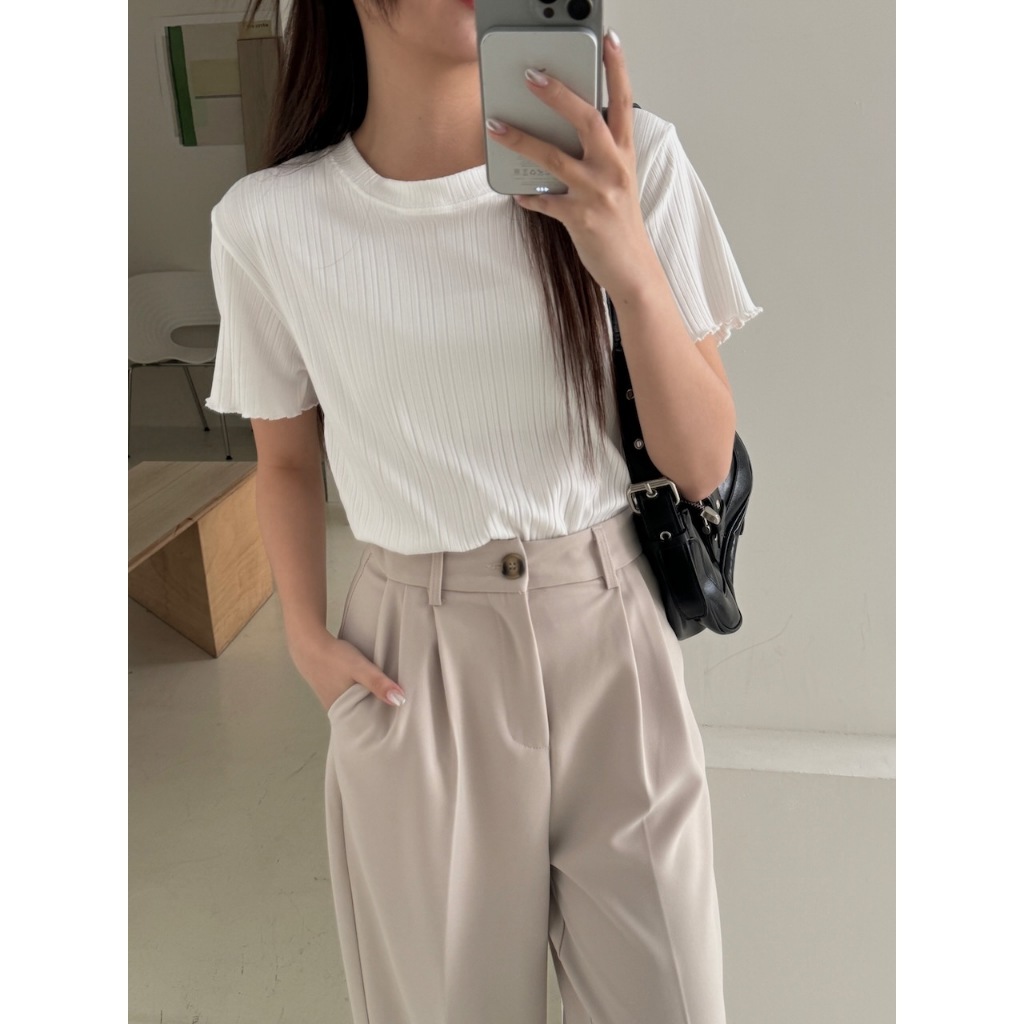 ※ 袖口、下擺木耳邊 類坑條 微透膚