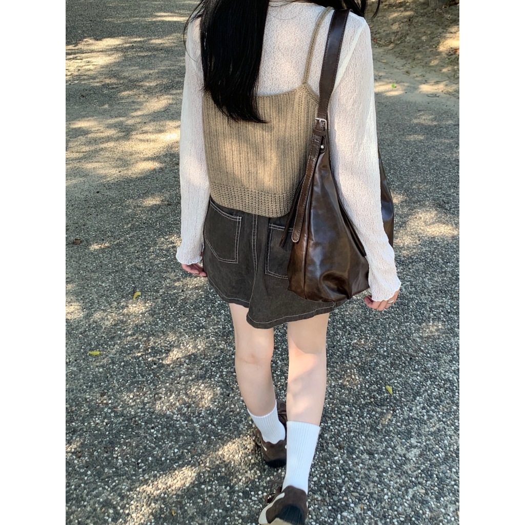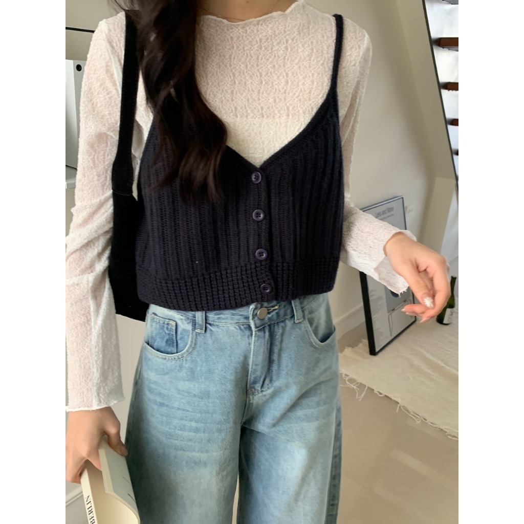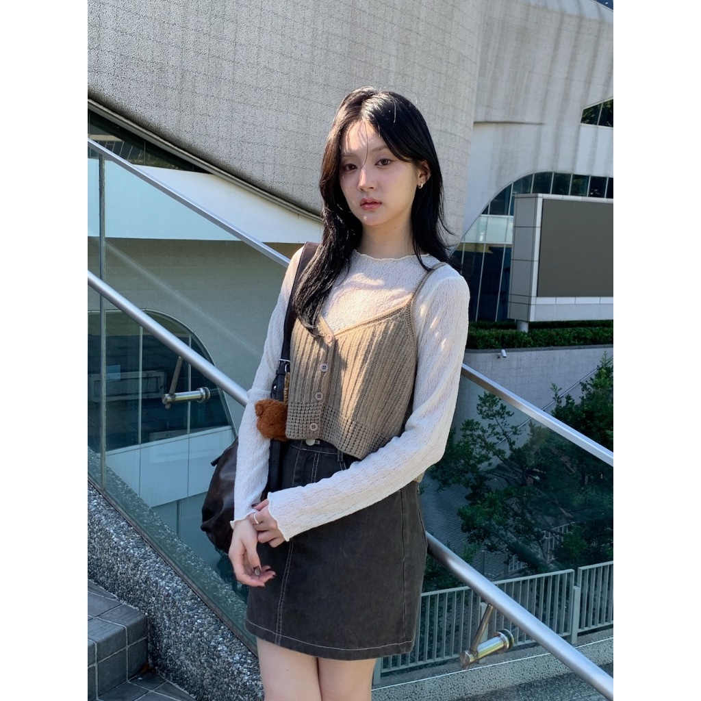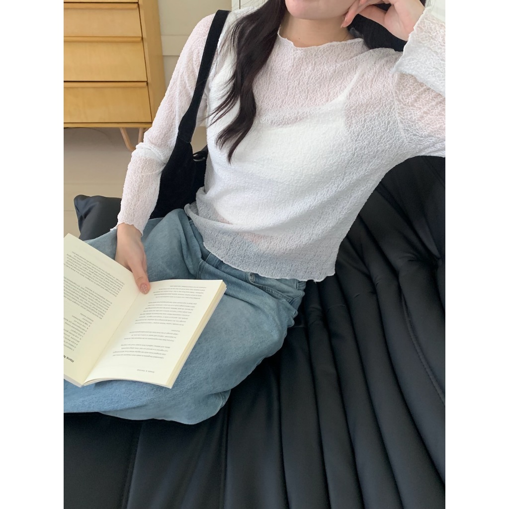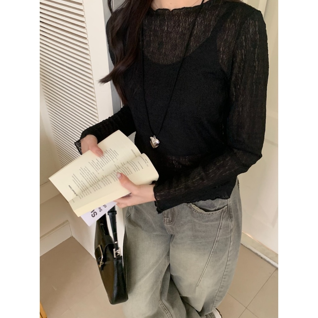 ※圓領 透膚內搭 蕾絲雕花設計