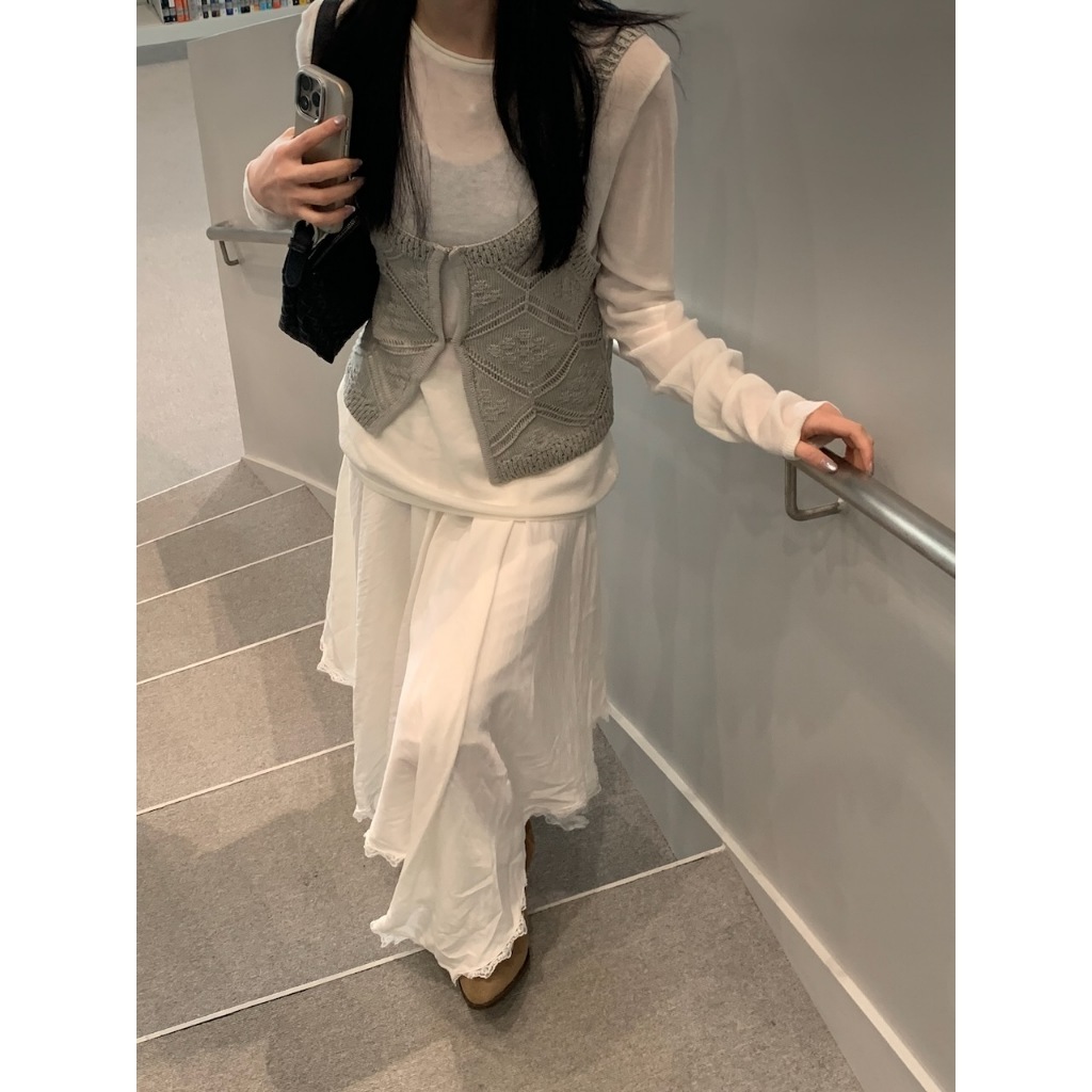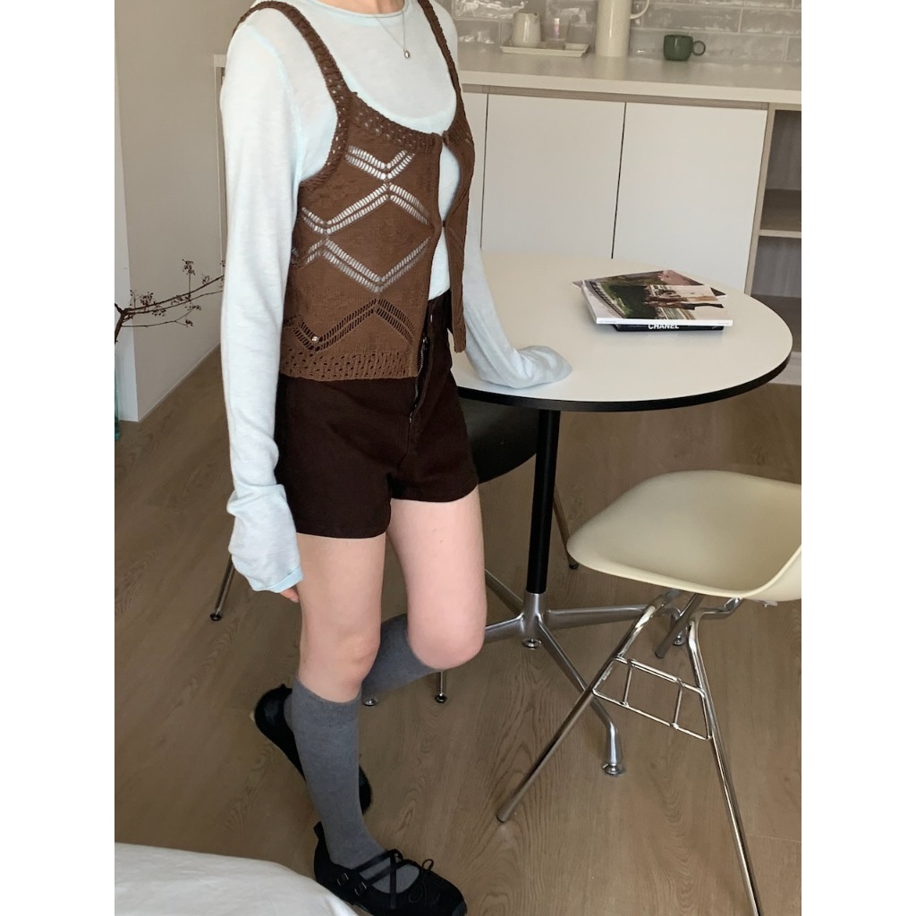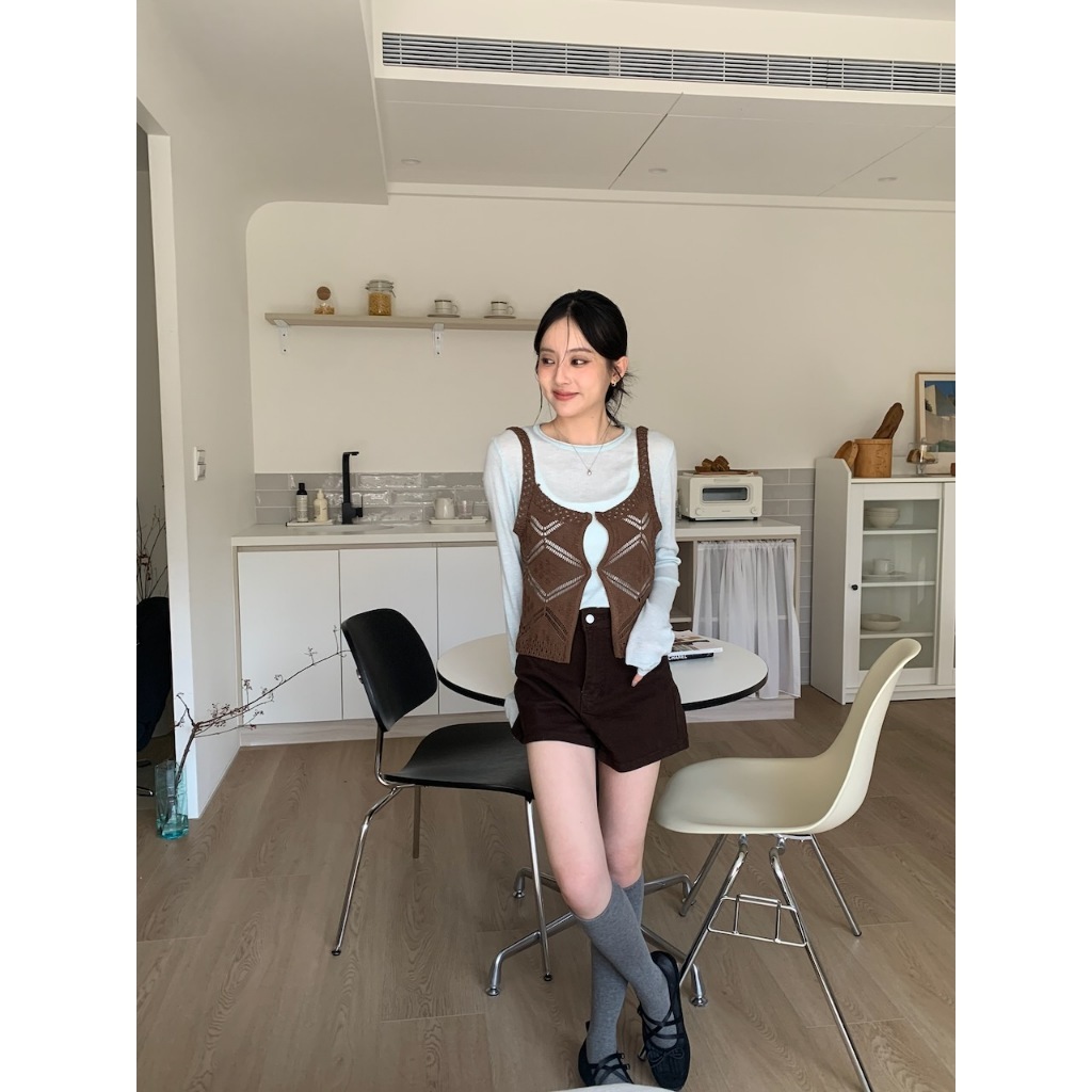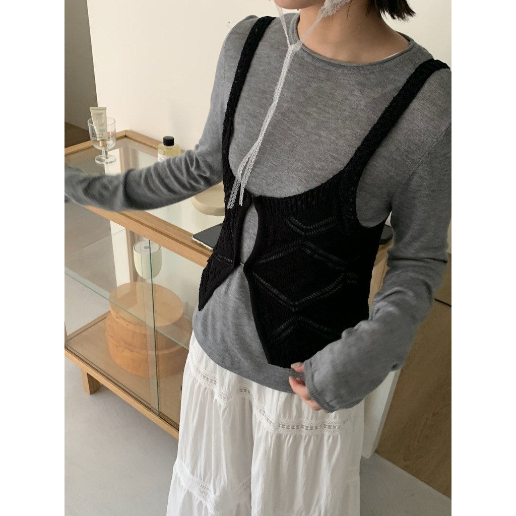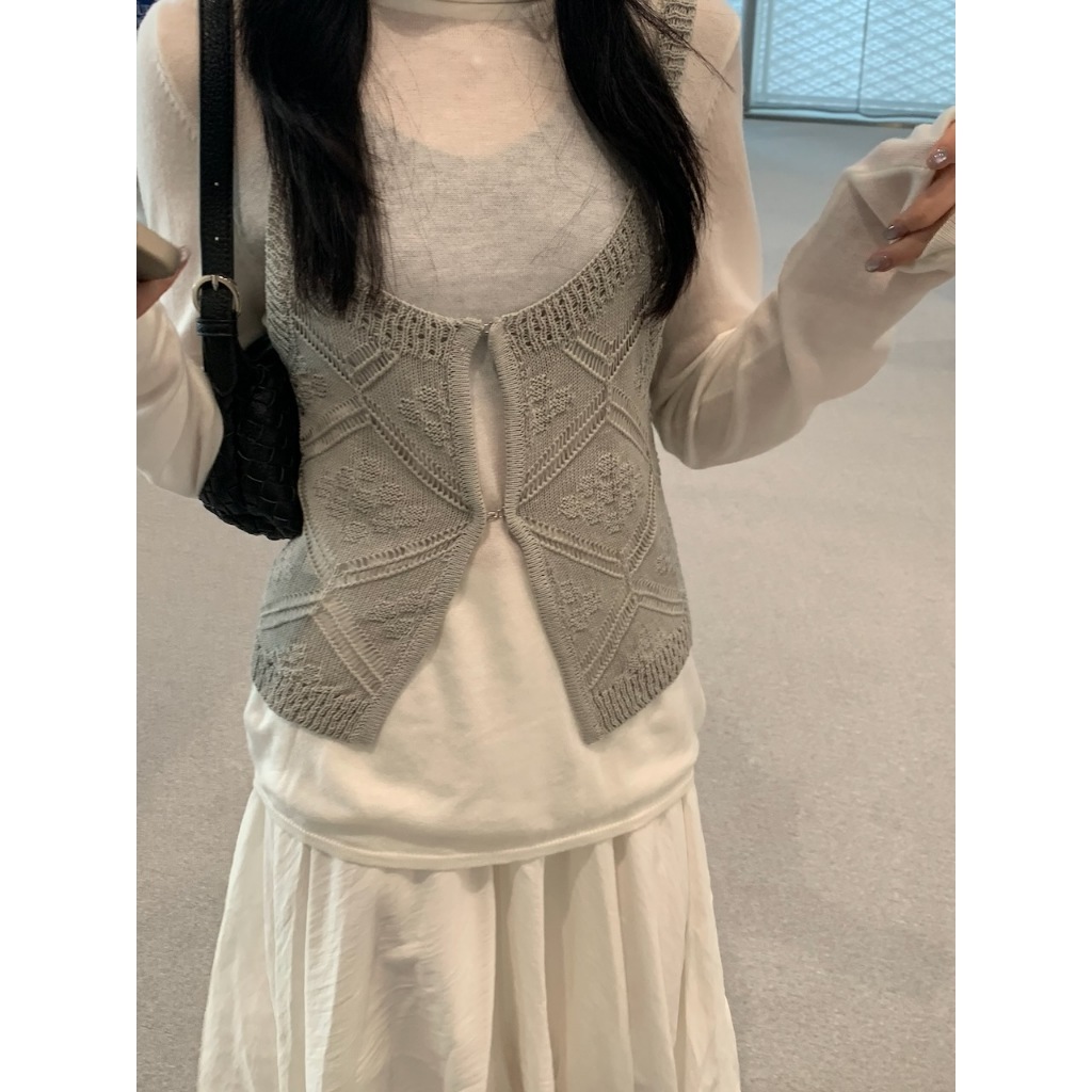 ※背心:外罩粗針織 胸前鉤扣可拆式 菱格紋設計