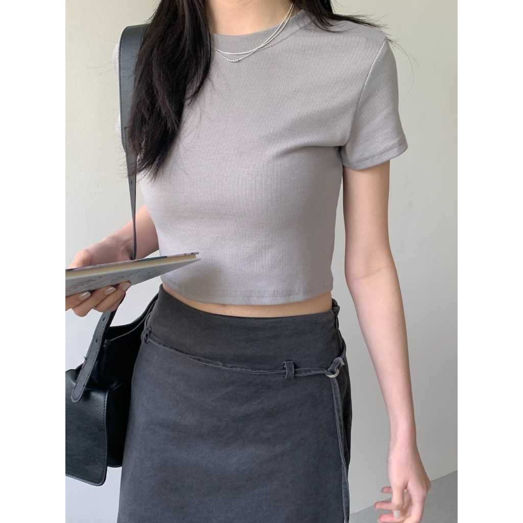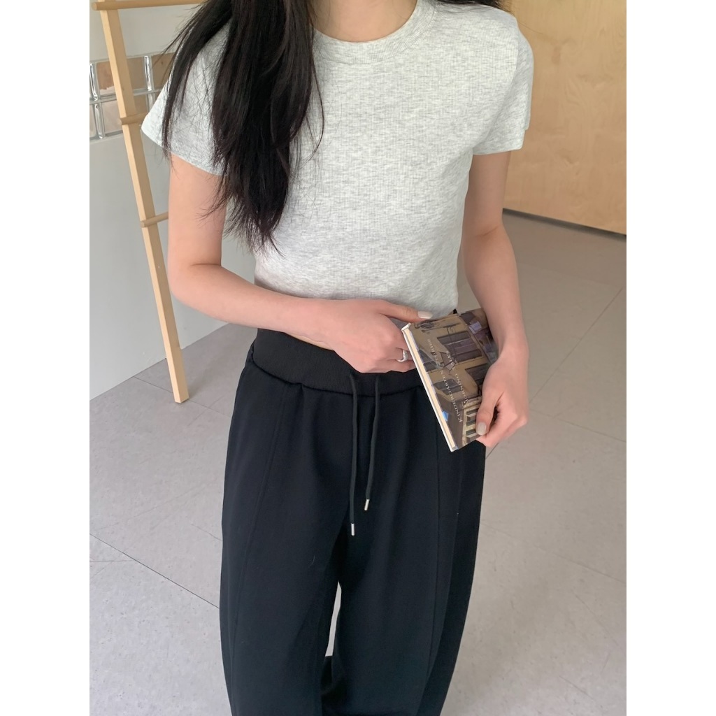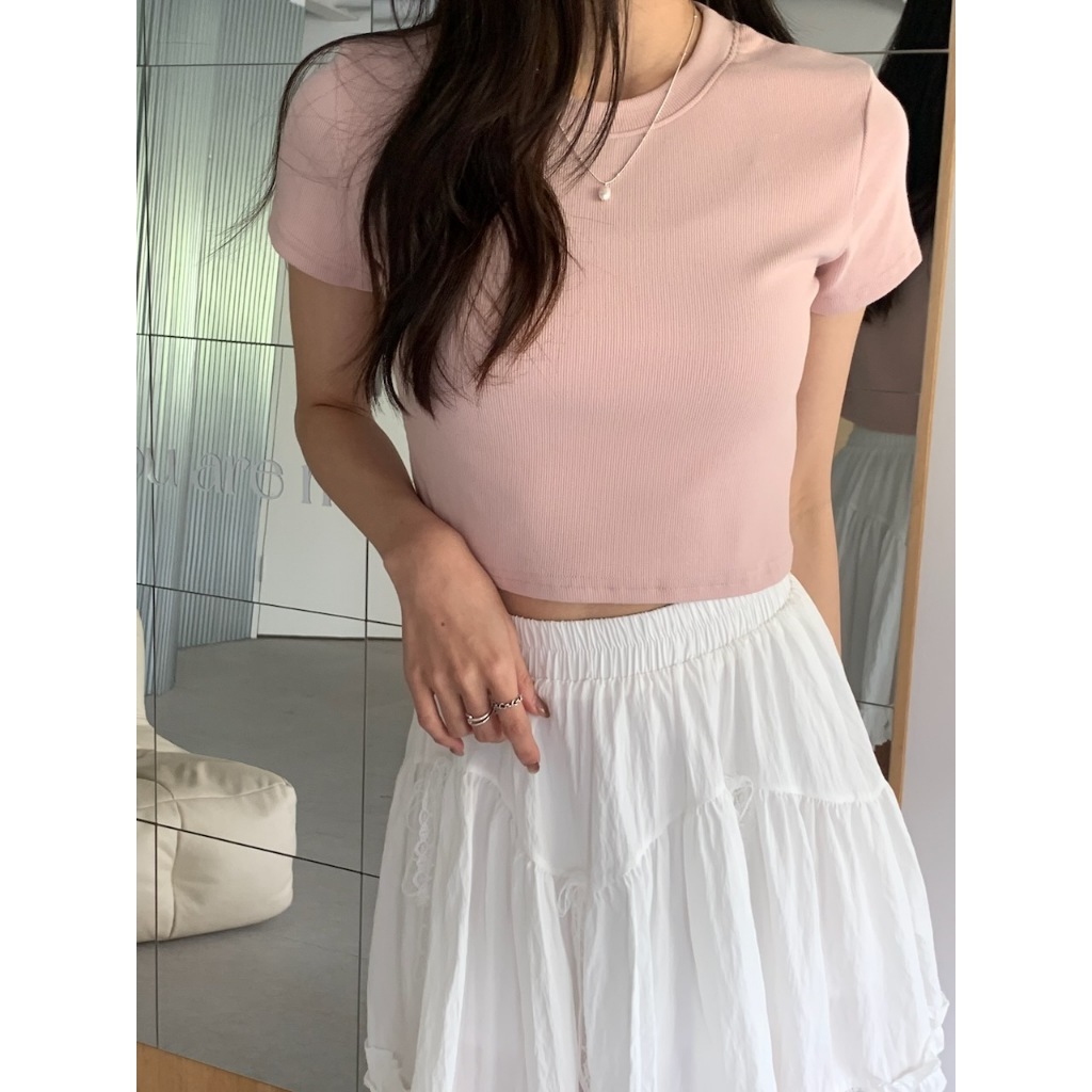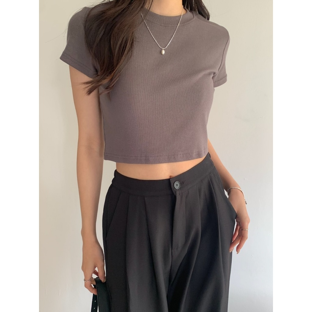 ※圓領短版 直條紋針織紋路 素色