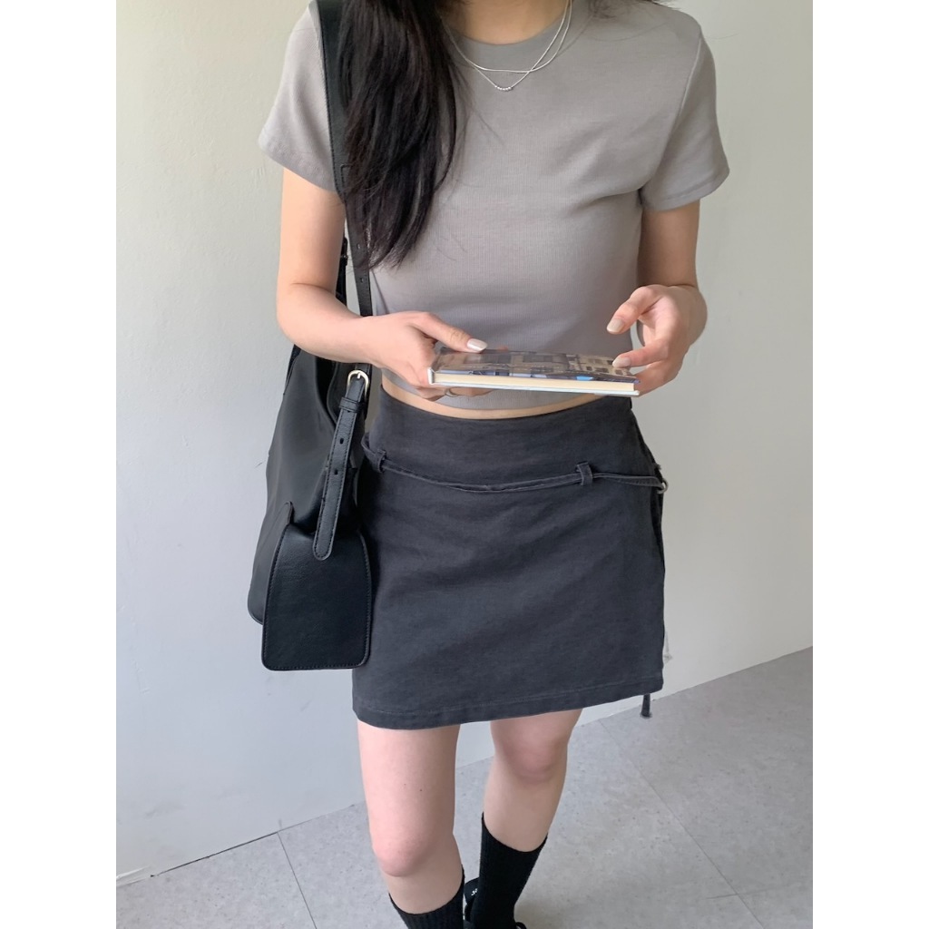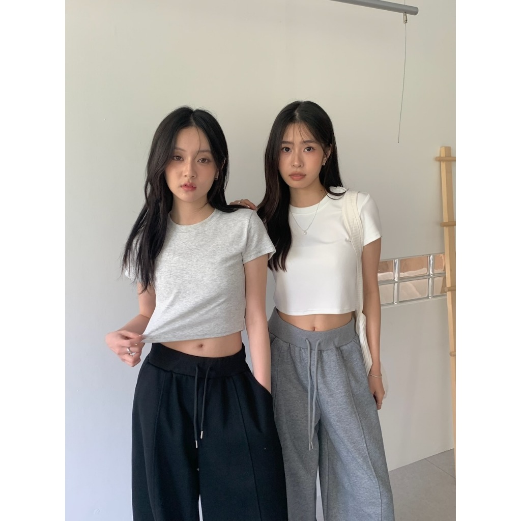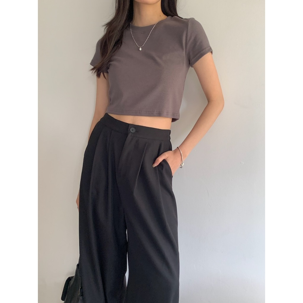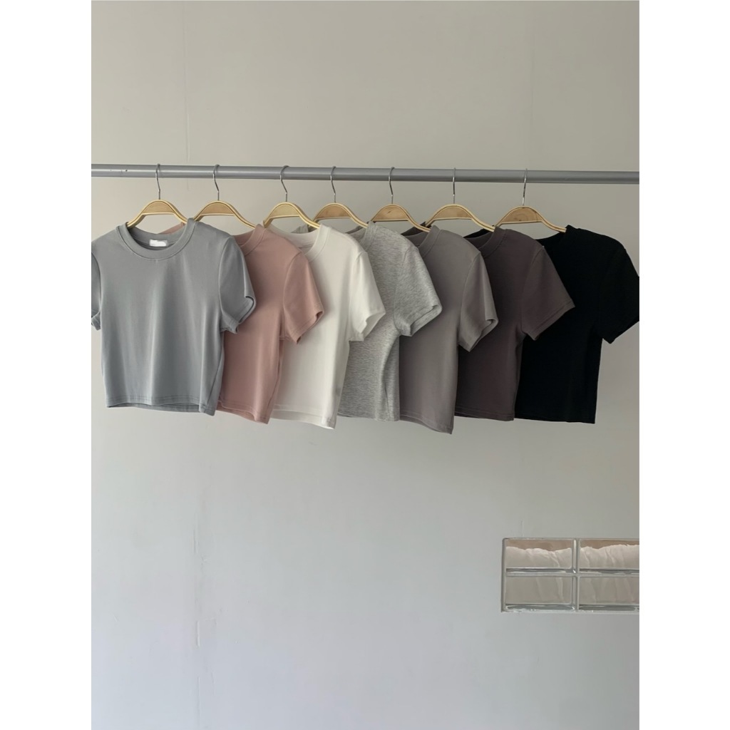 ※圓領短版 直條紋針織紋路 素色
