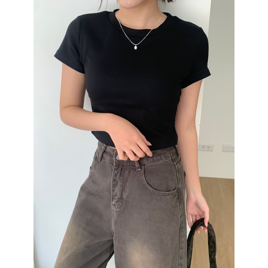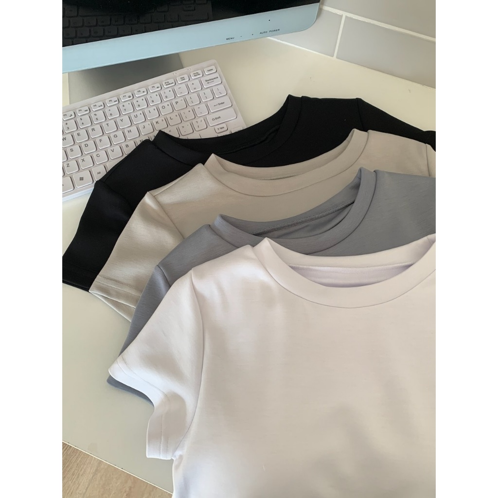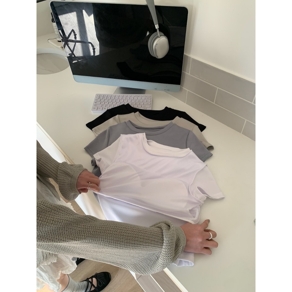 ※圓領短版 罩杯式上衣 微厚度太空棉質感 素色