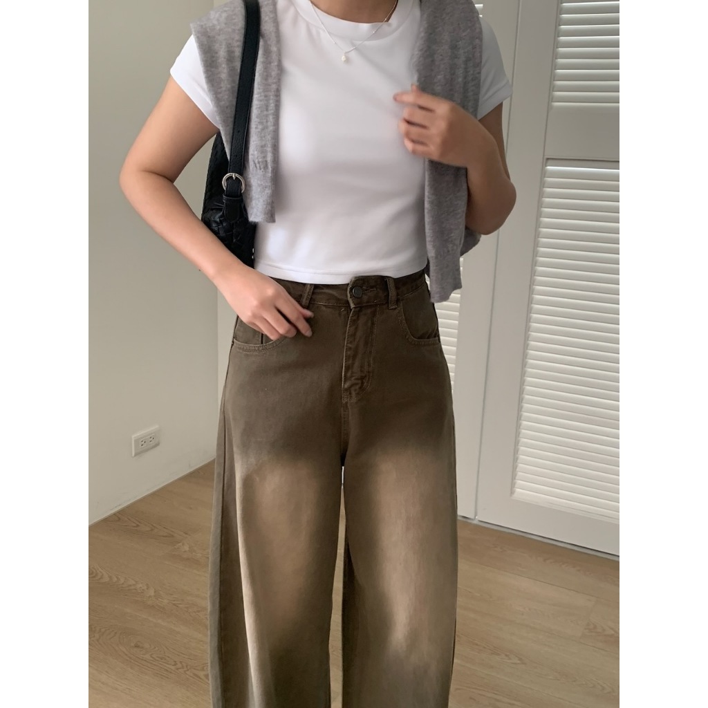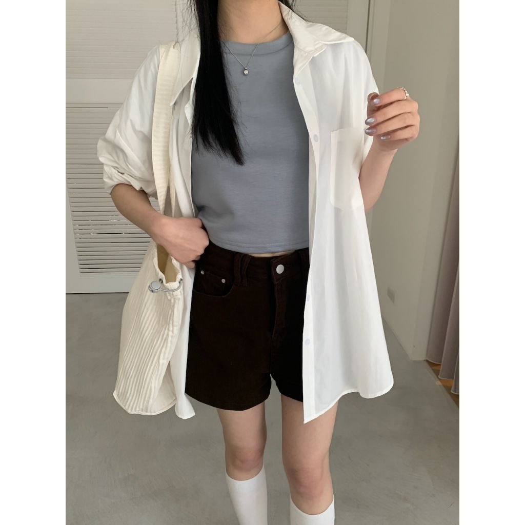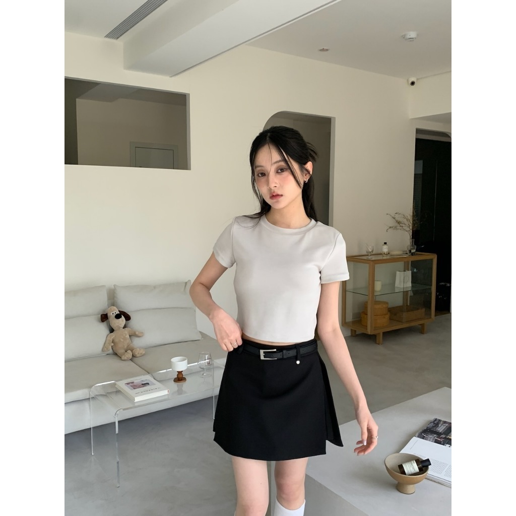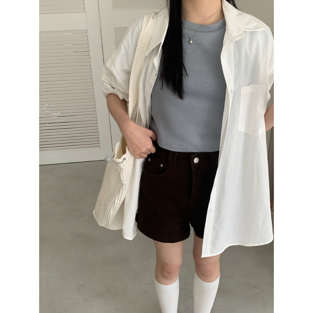 ※圓領短版 罩杯式上衣 微厚度太空棉質感 素色