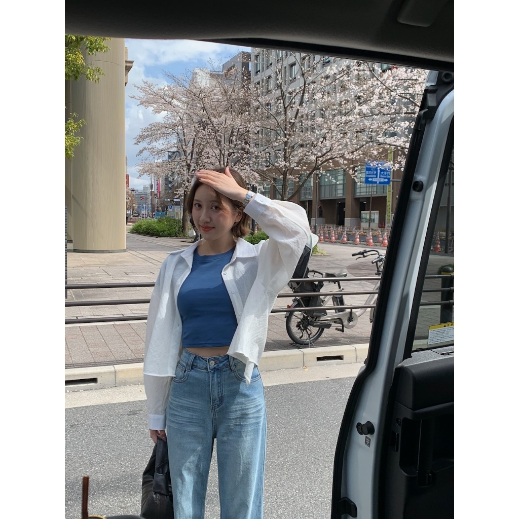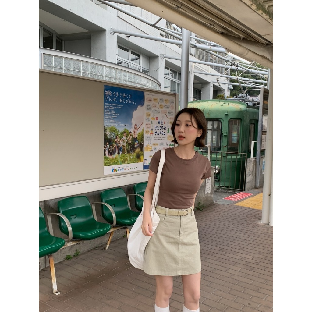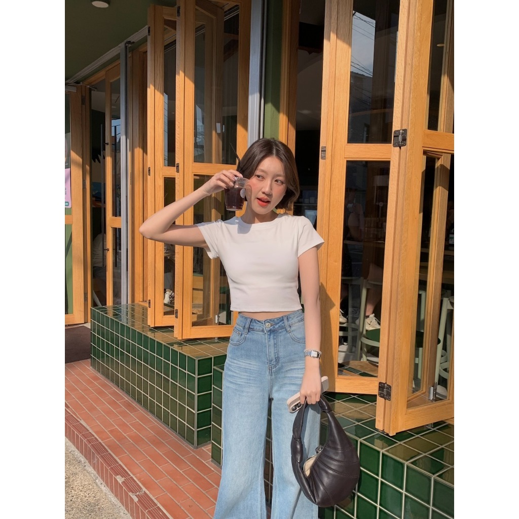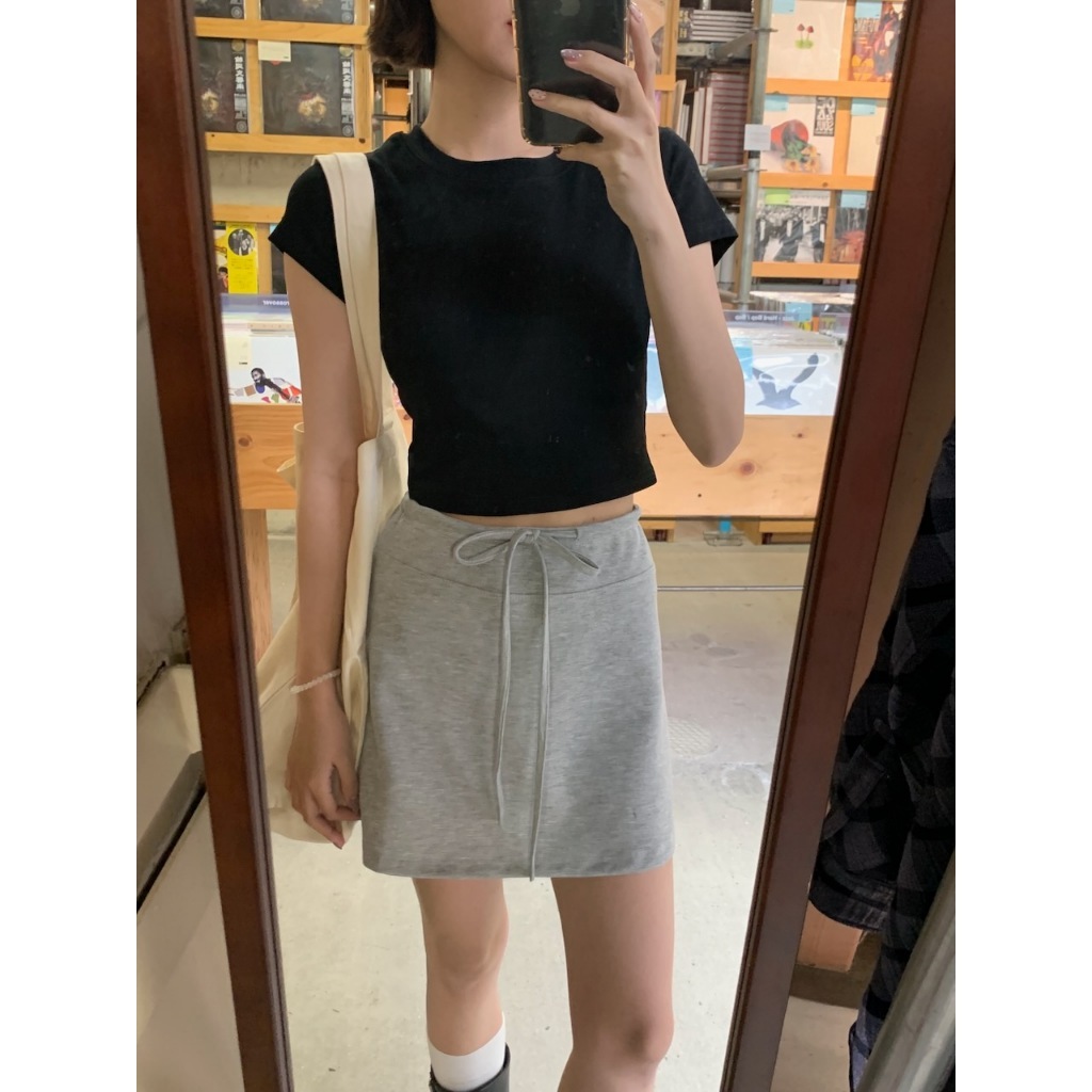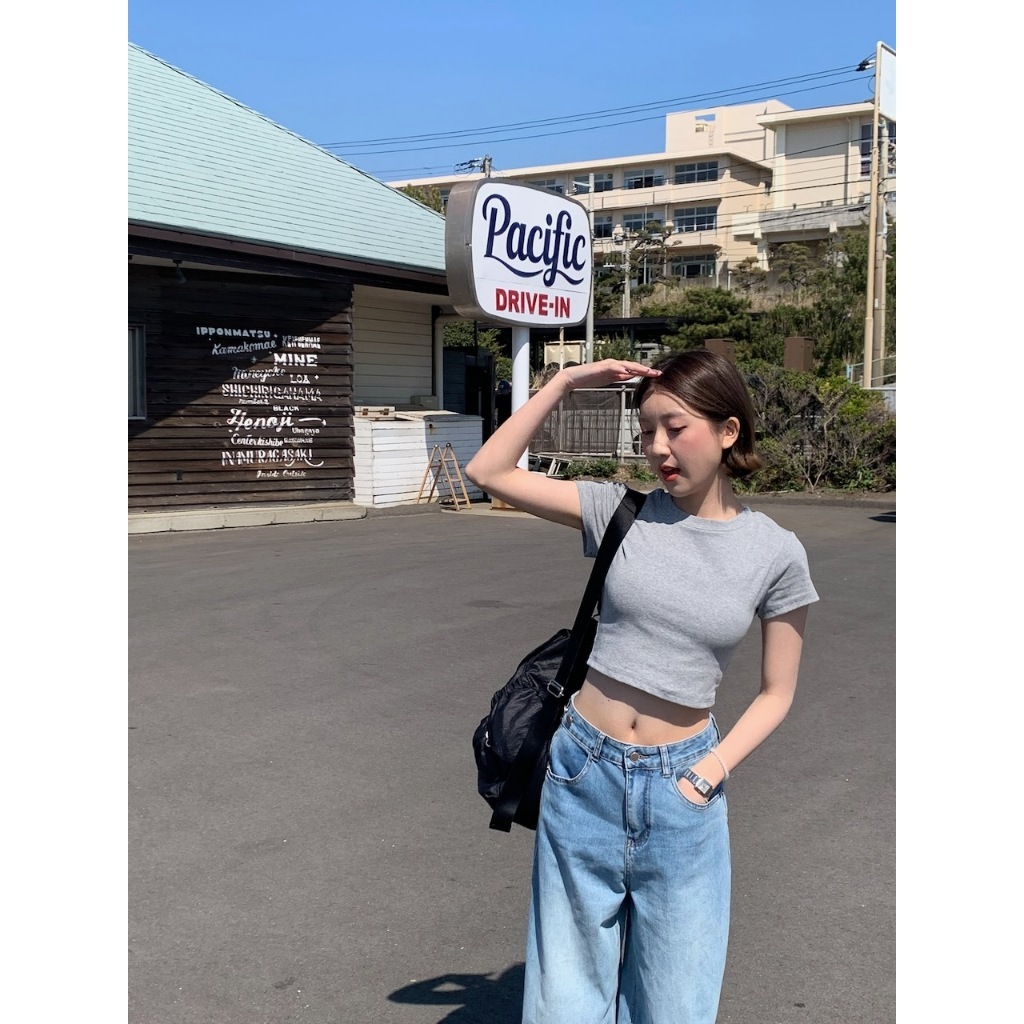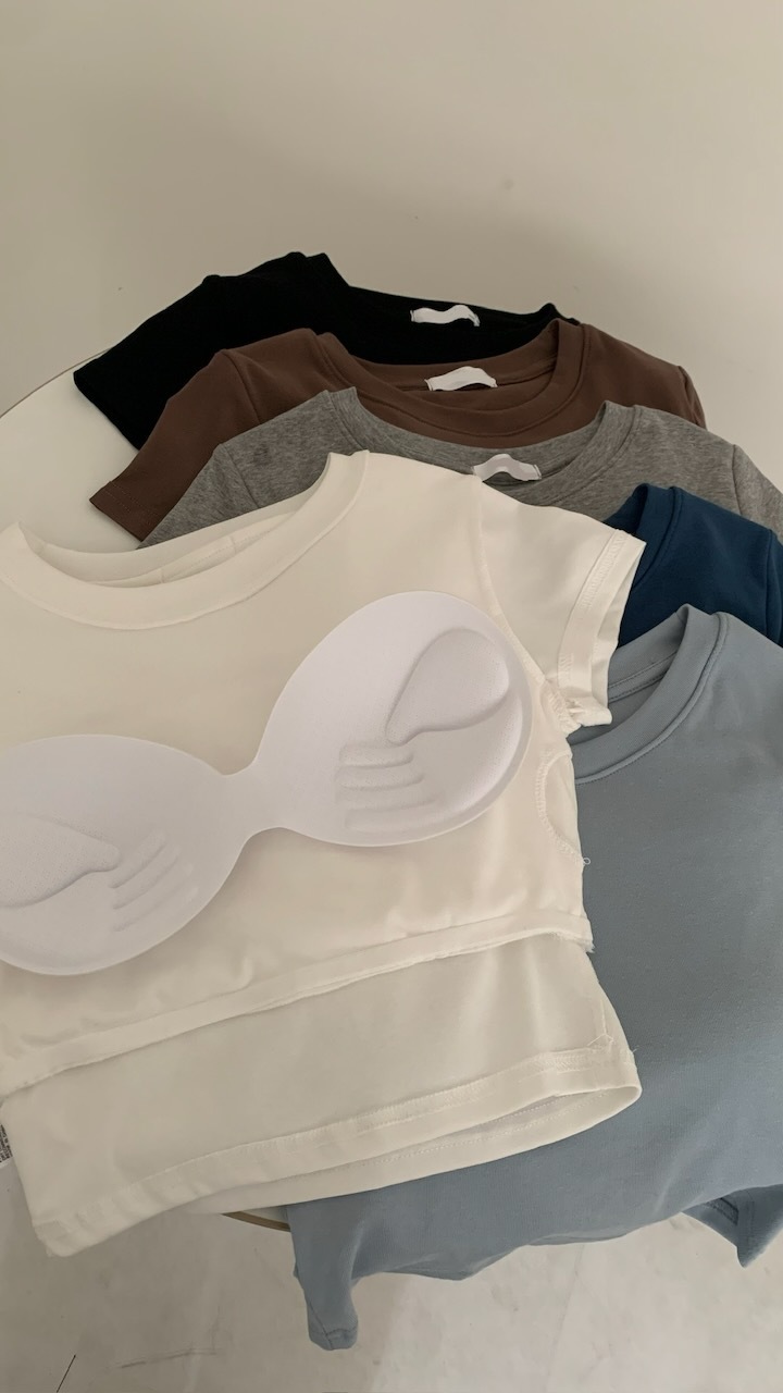 ※圓領 短版上衣 附罩杯(罩杯可拆) 細直紋紋路 素色 合身 有彈性