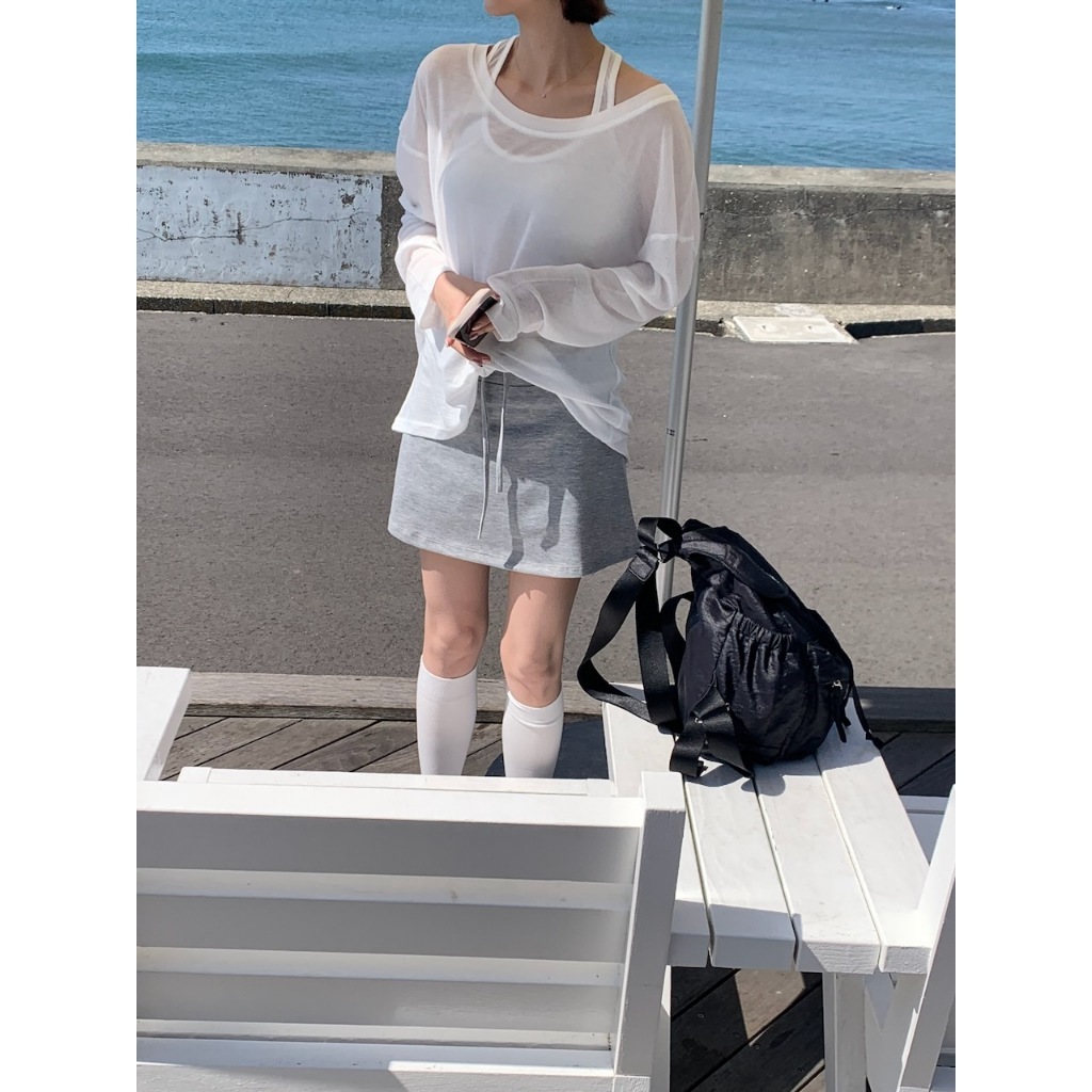 ※寬圓領 長版 寬鬆 細針織 很有彈性 垂墜感 薄透 素色