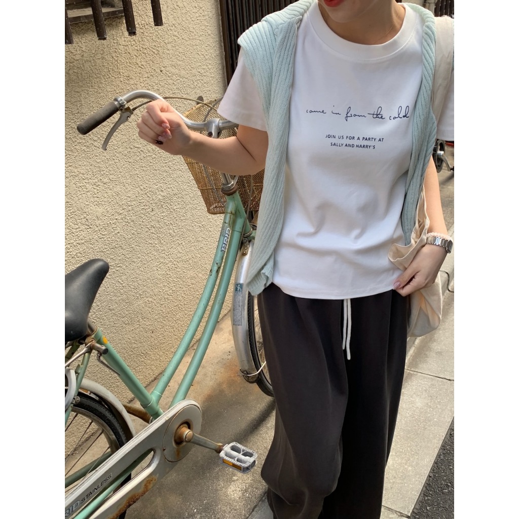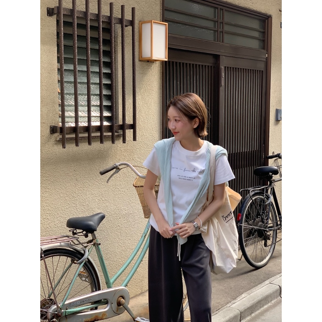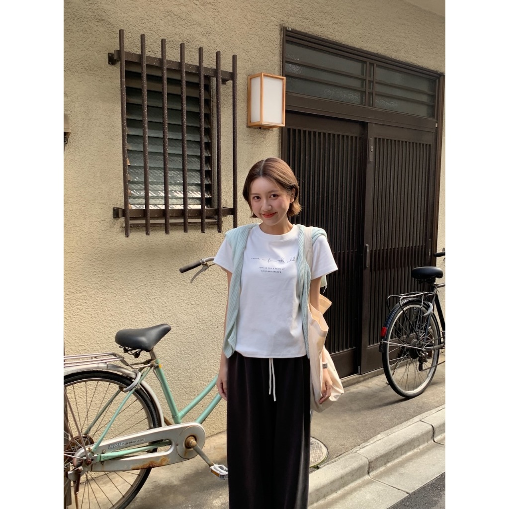 ※圓領短袖棉T 胸前草寫英文字母印刷 中長版 版型正常 有彈性