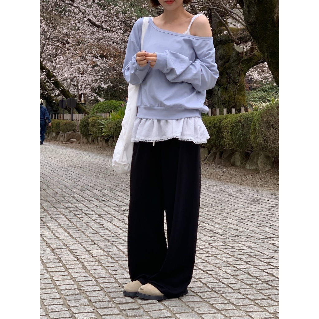 ※上衣:大寬圓領 中長版 長袖 手袖、下擺縮口 微寬版型 微彈 素色