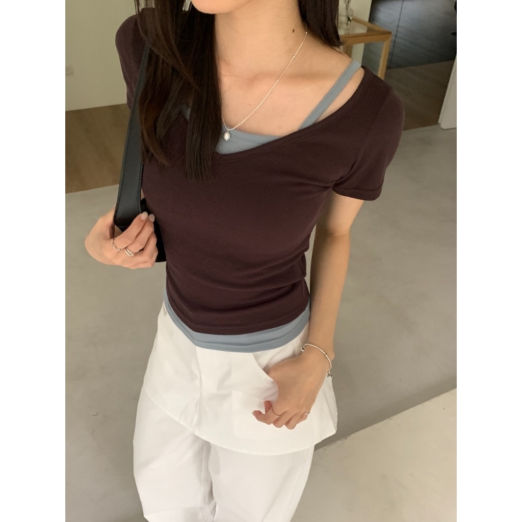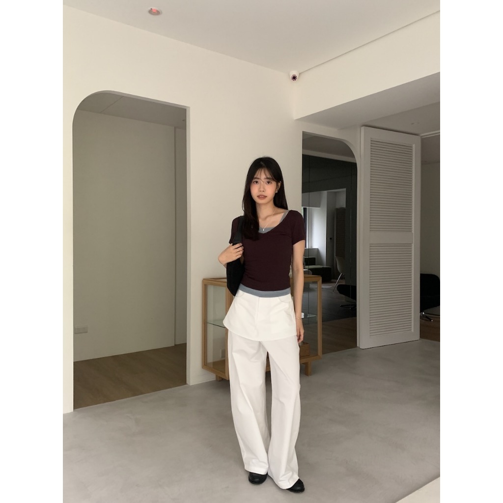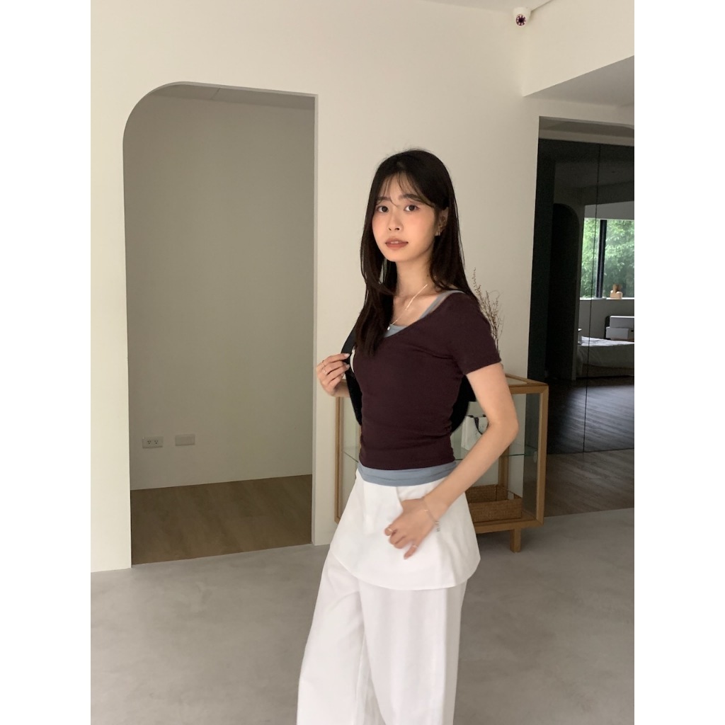 ※上衣: 小V領 中短版(可遮到肚子) 短袖上衣 很有彈性 會透膚 素色