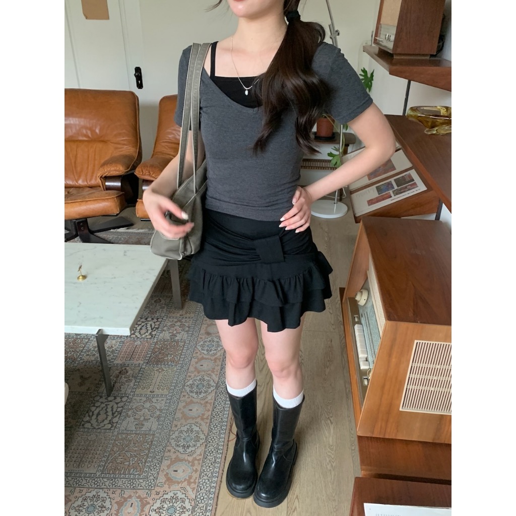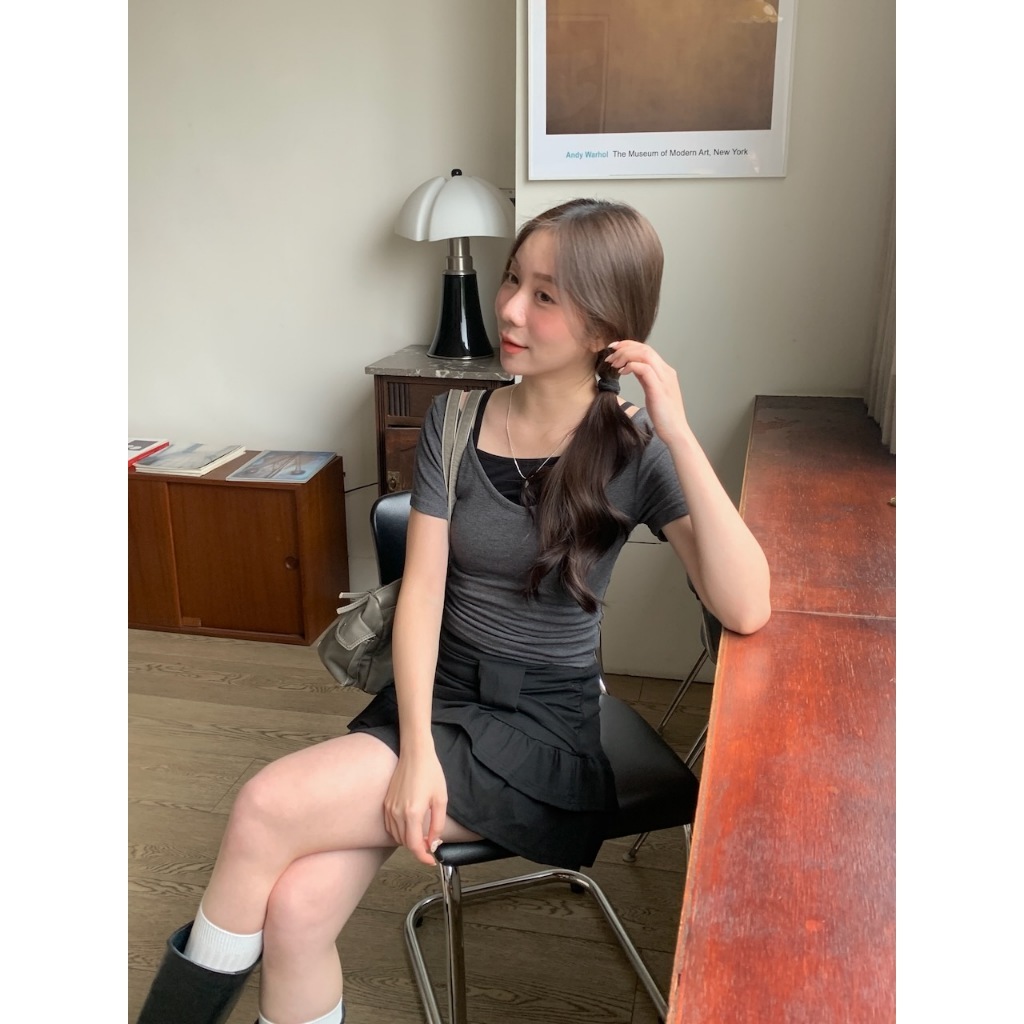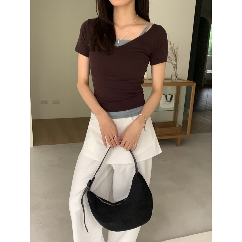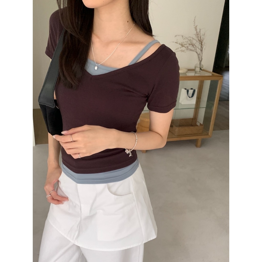※上衣: 小V領 中短版(可遮到肚子) 短袖上衣 很有彈性 會透膚 素色