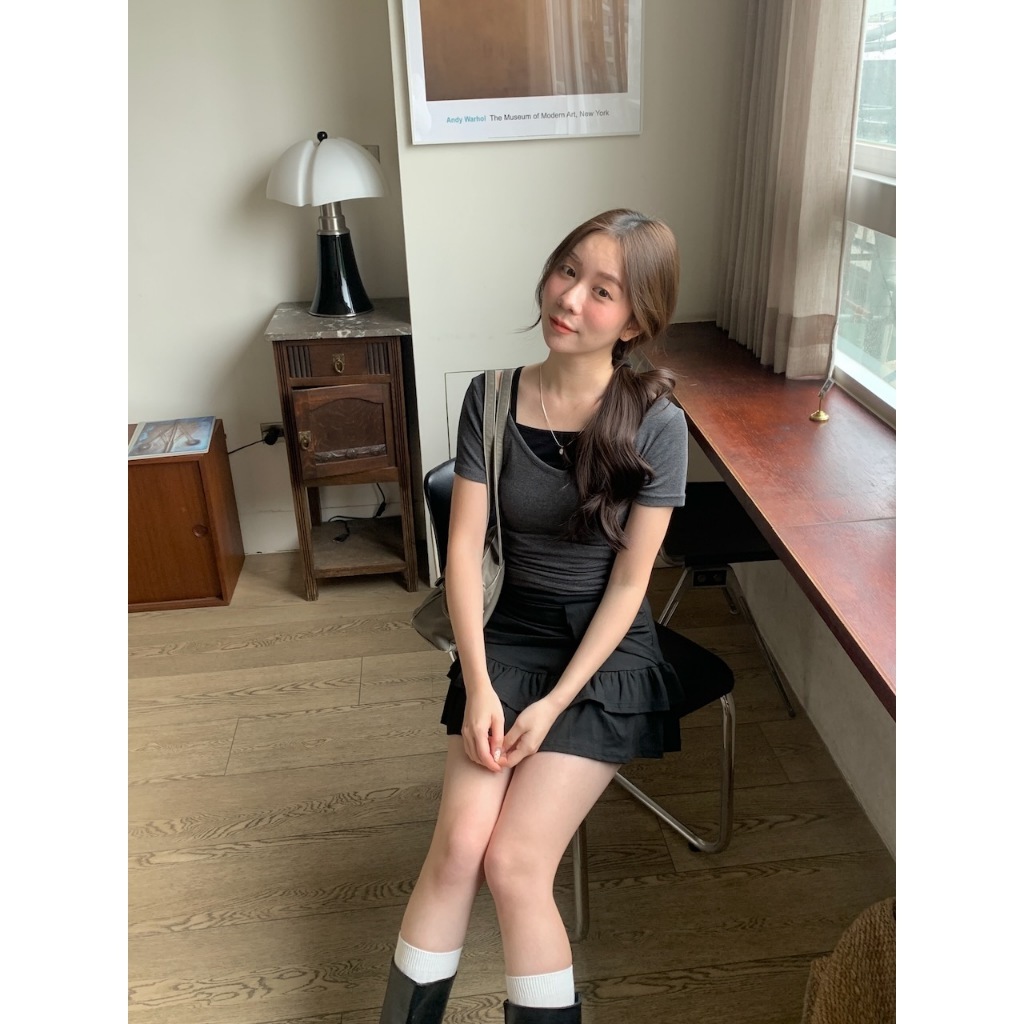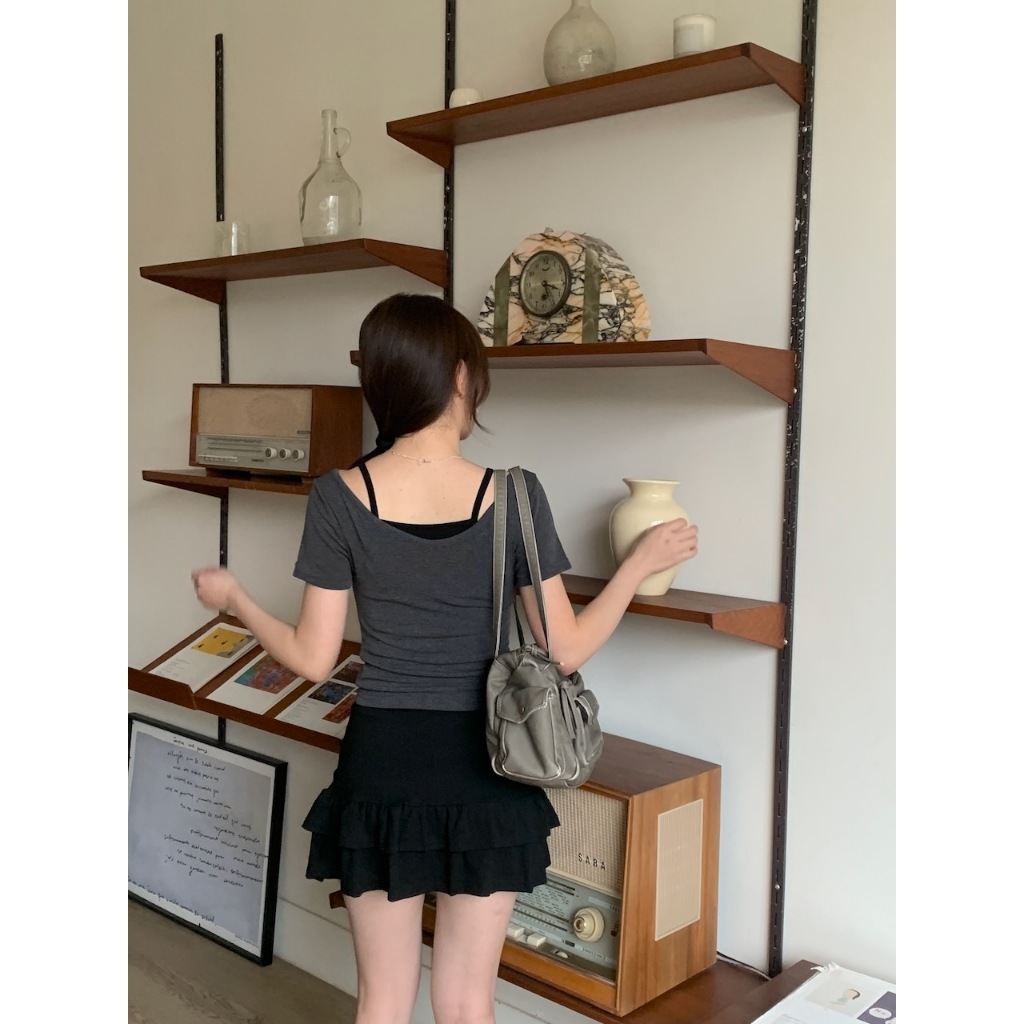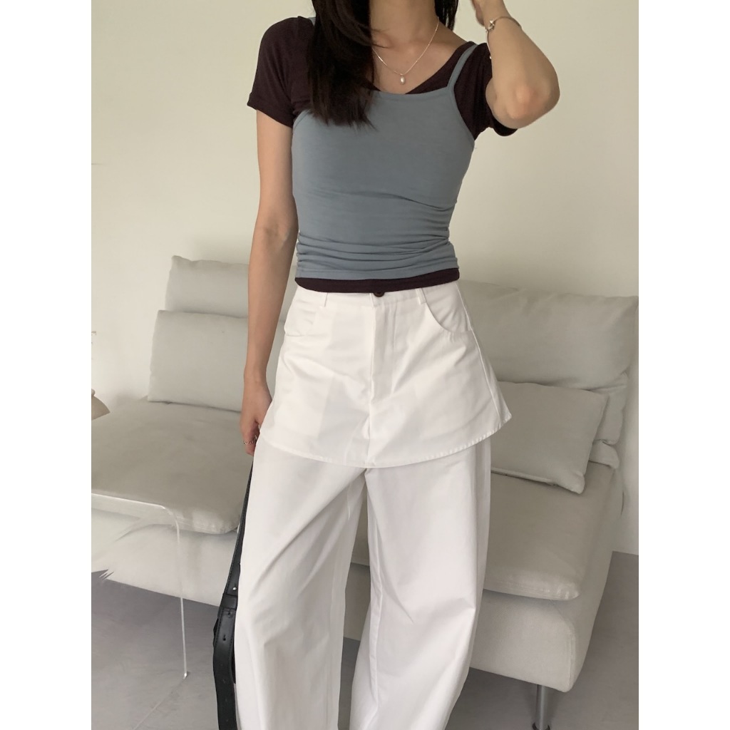 ※背心:細肩帶 平口小可愛 中短版 合身 有彈性 微透 素色