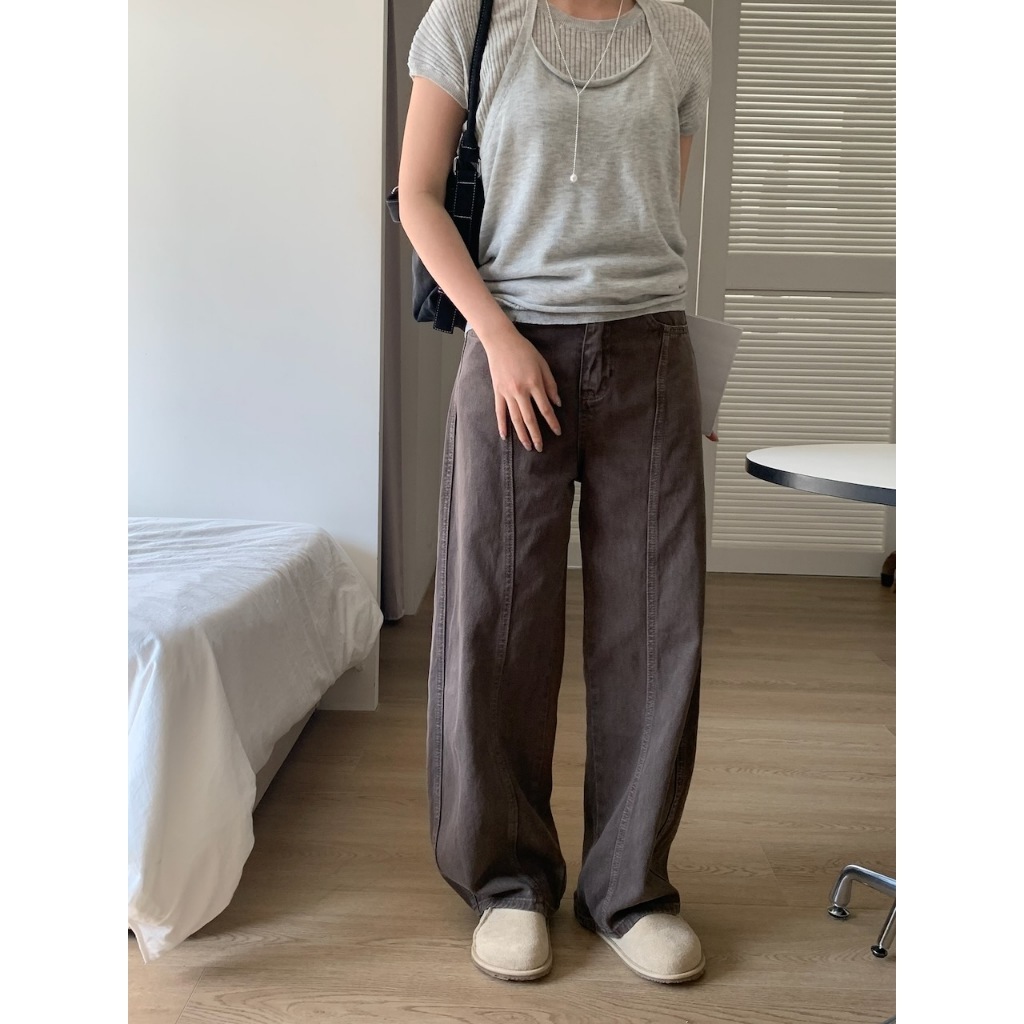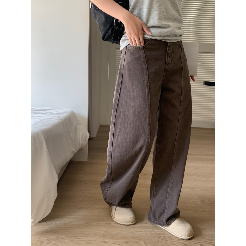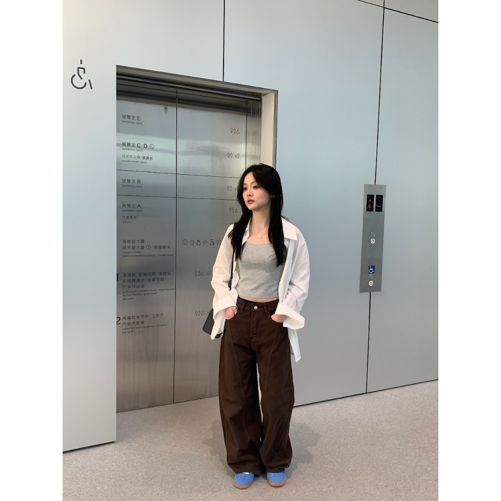 ※繭型寬褲 前後雙口袋 前面兩側折線設計 前真鈕扣拉鍊式