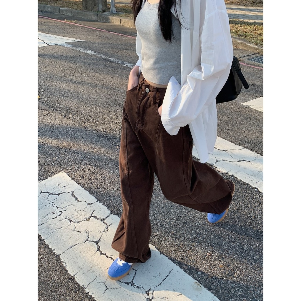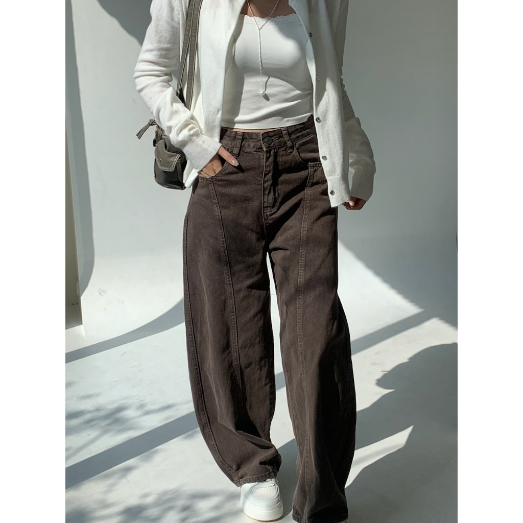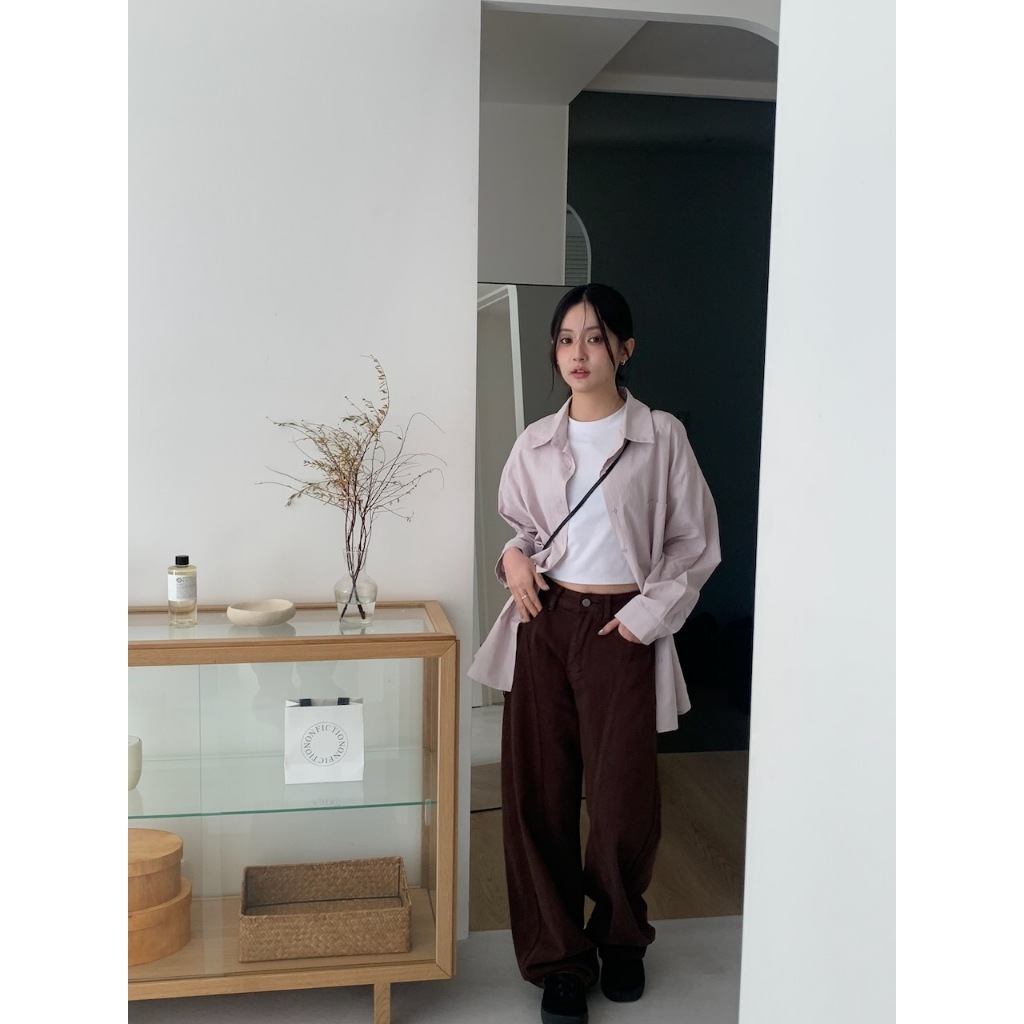 ※繭型寬褲 前後雙口袋 前面兩側折線設計 前真鈕扣拉鍊式