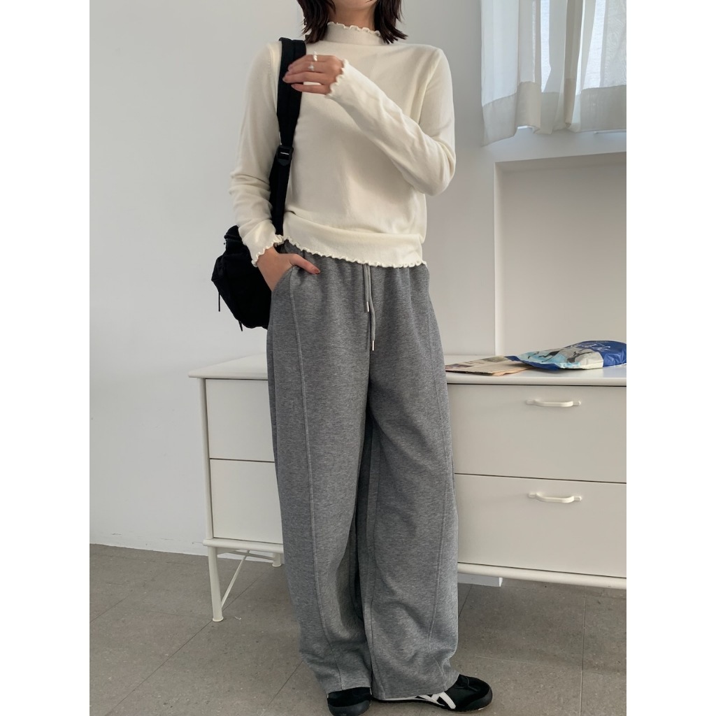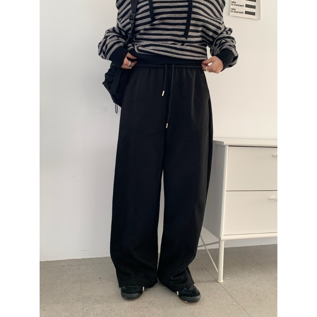 ※繫繩繭型棉褲 褲頭整圈鬆緊 左右兩側真口袋 素色
