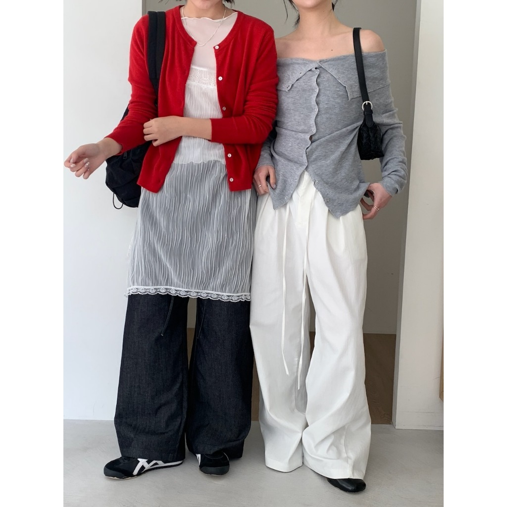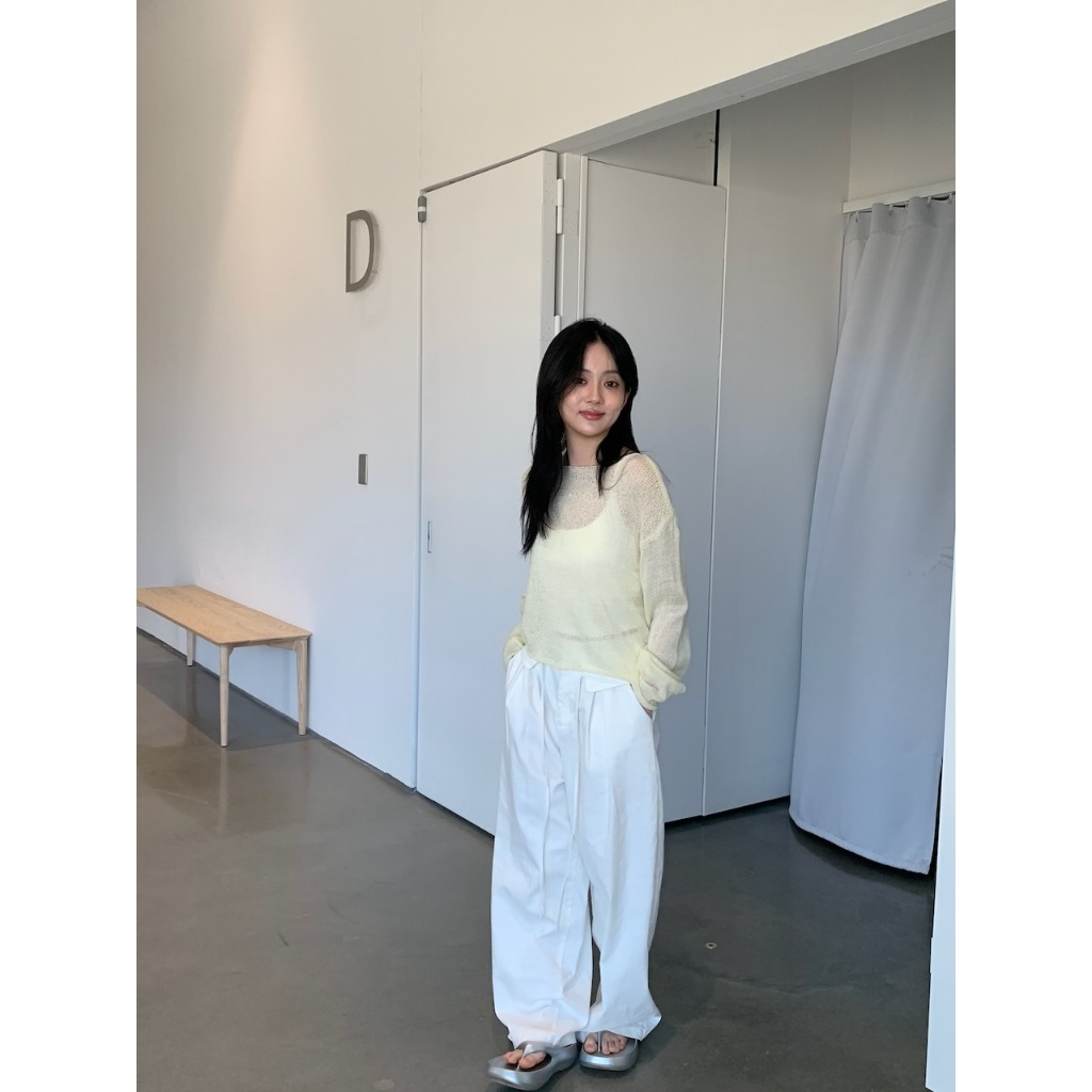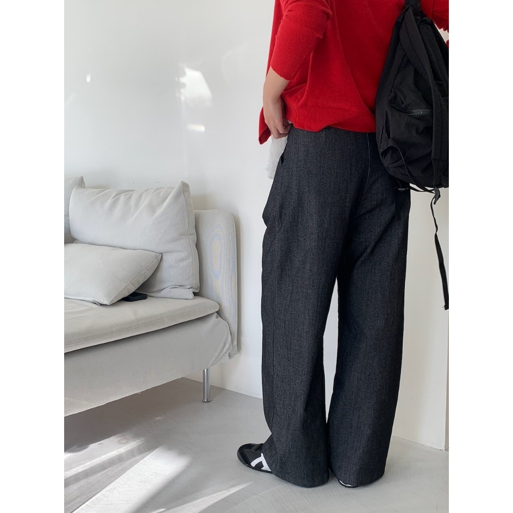※棉麻寬褲 前褲頭假領式綁帶設計 前面兩側真口袋 真鈕扣拉鍊式 素色
