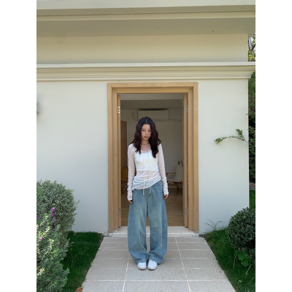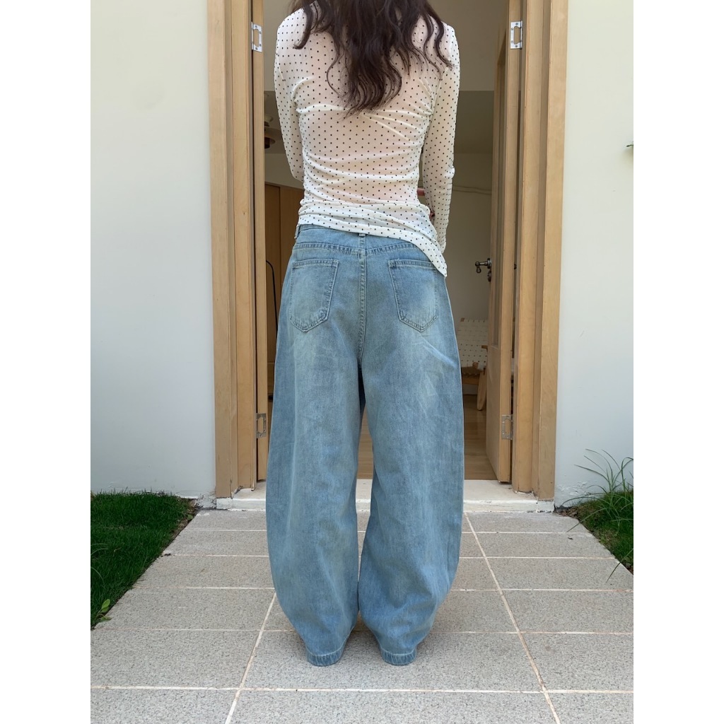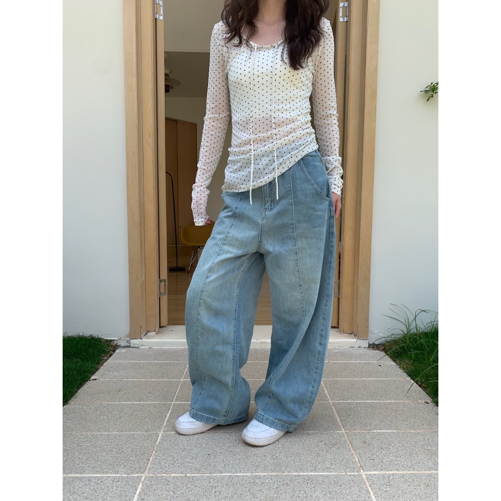 ※繭型寬褲 前拼接車縫感設計 前左右兩邊真口袋 後面左右兩邊真口袋 褲頭真鈕扣半截拉鍊式