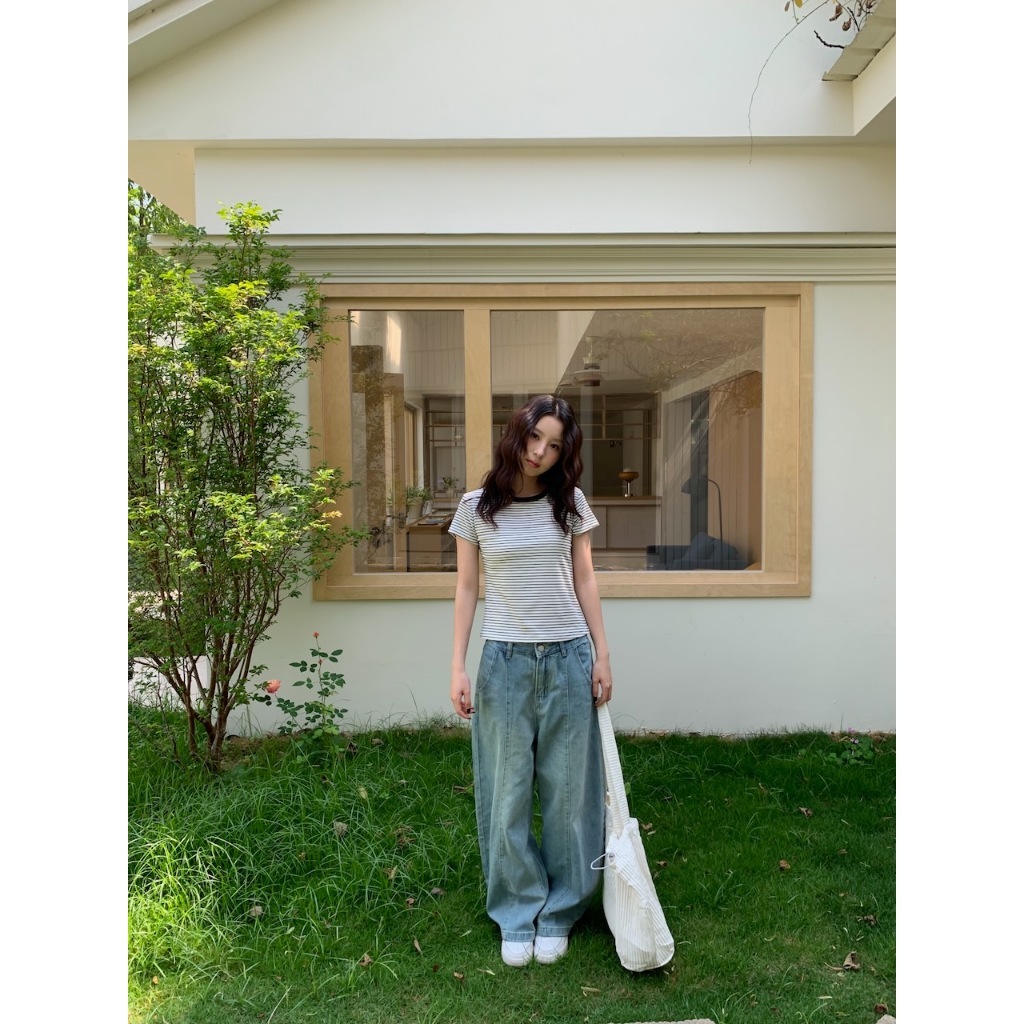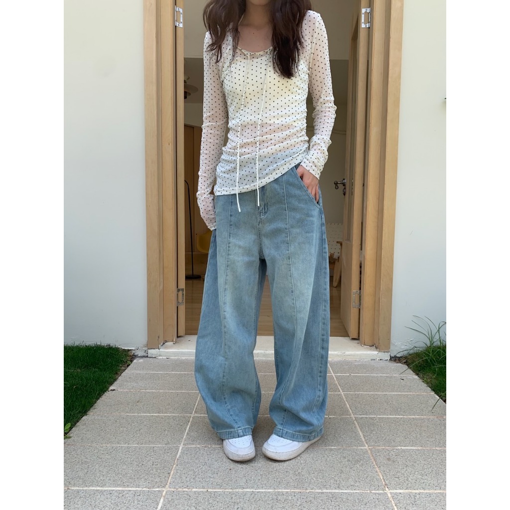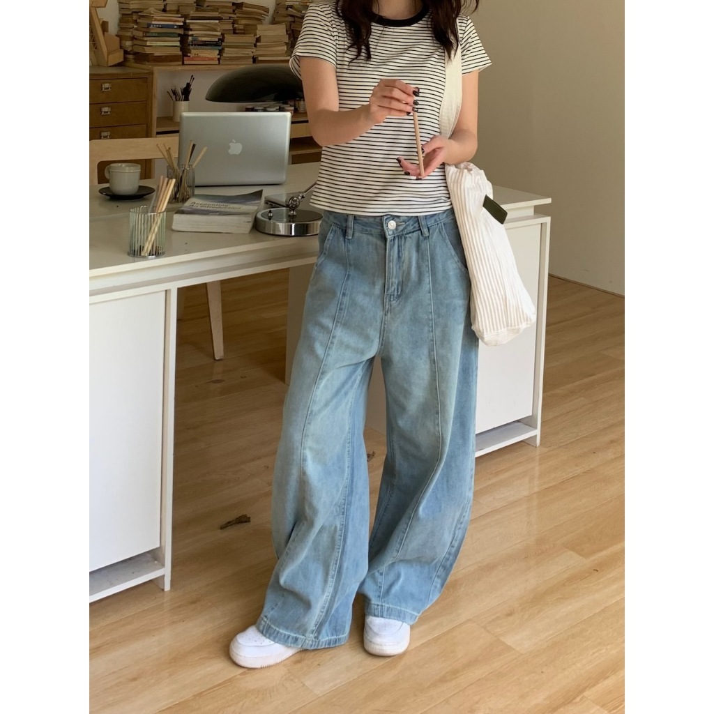 ※繭型寬褲 前拼接車縫感設計 前左右兩邊真口袋 後面左右兩邊真口袋 褲頭真鈕扣半截拉鍊式