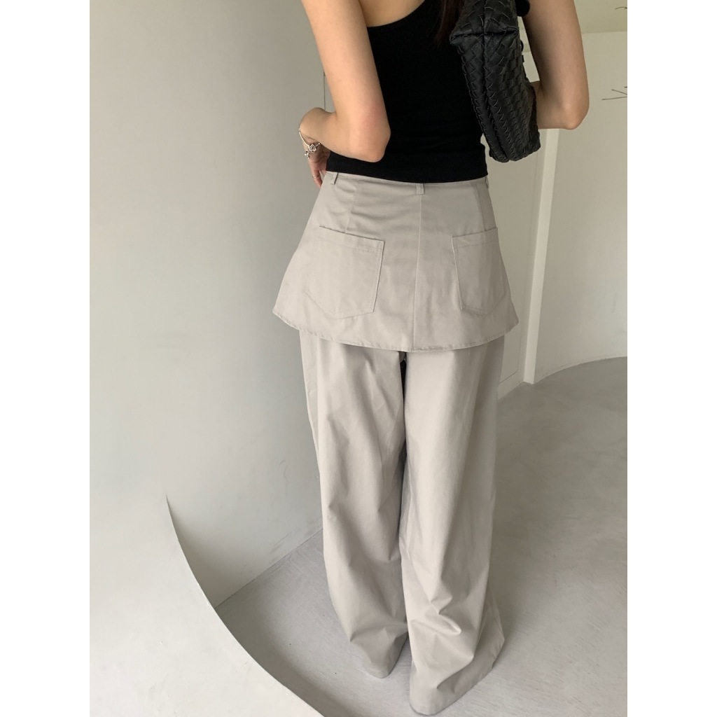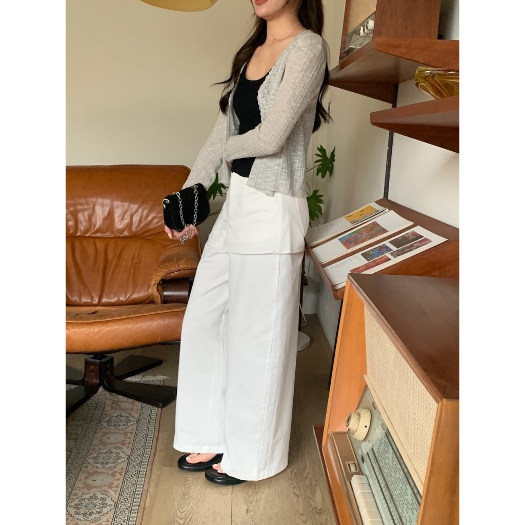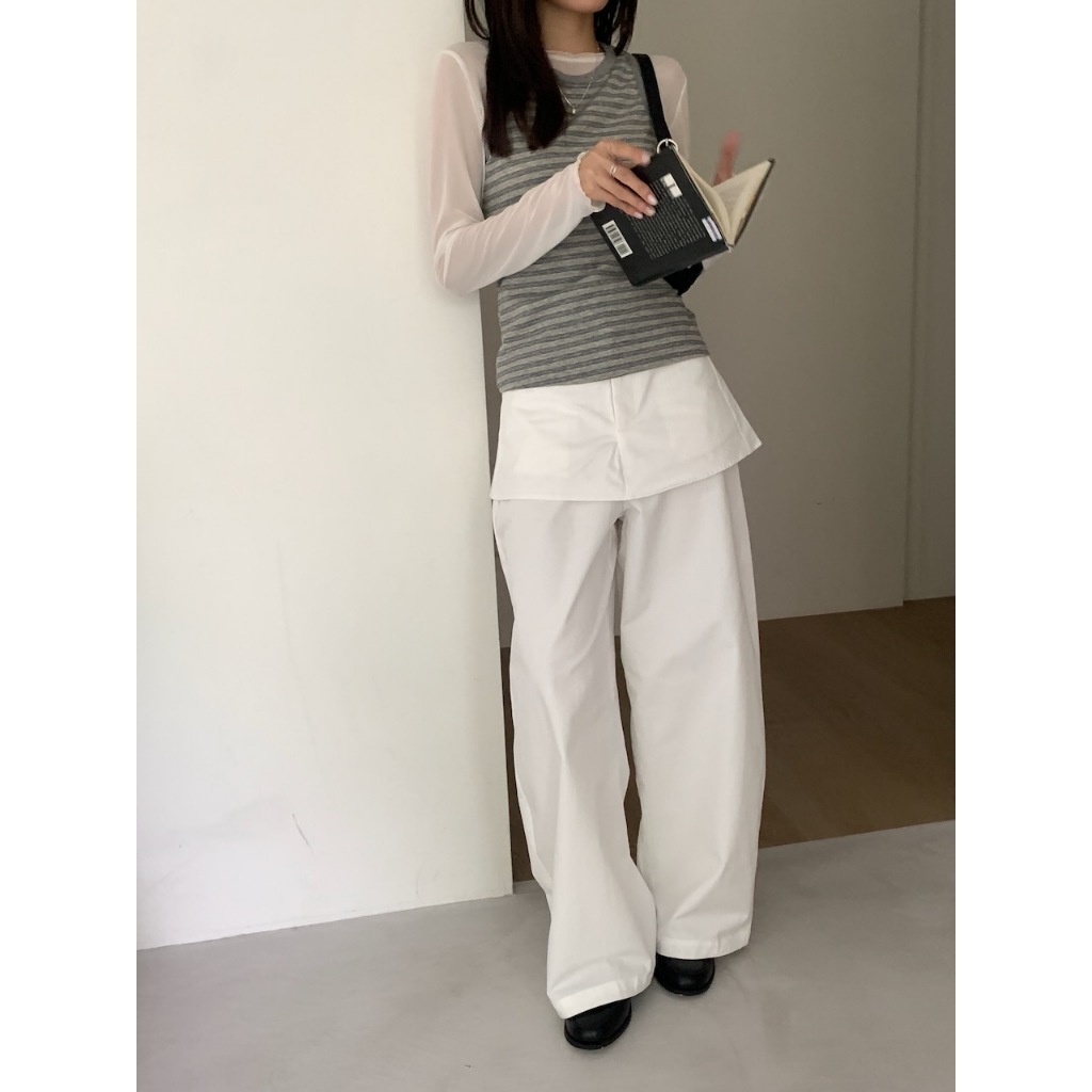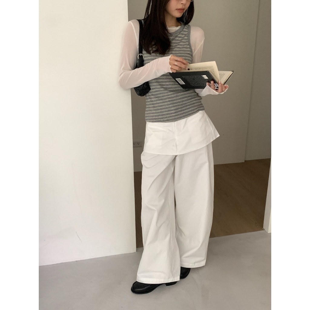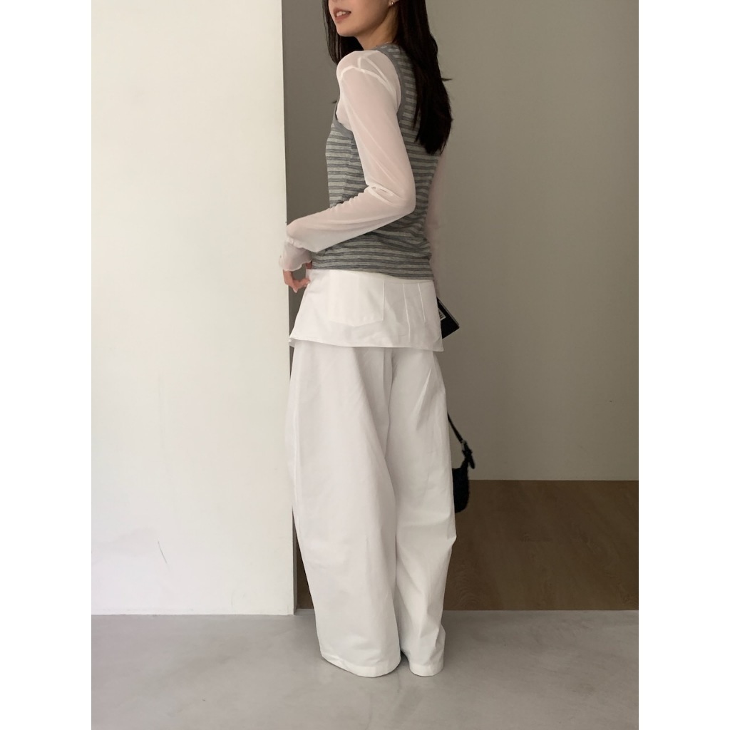※假兩件式寬褲裙(不可拆) 左右兩側、後兩邊真口袋 前半截鈕扣拉鍊 無彈性 硬挺感 (白色不透)