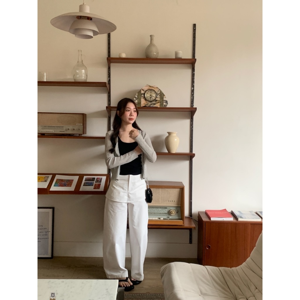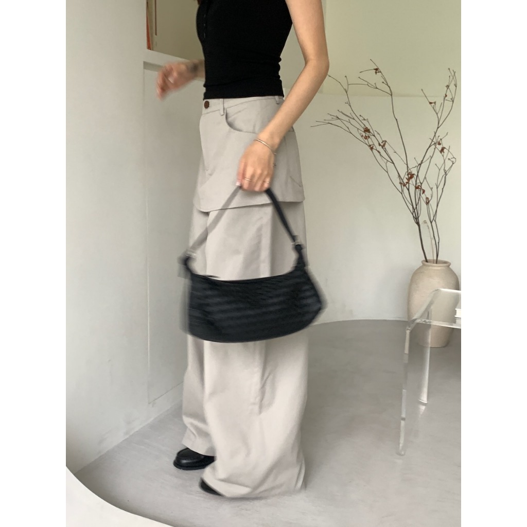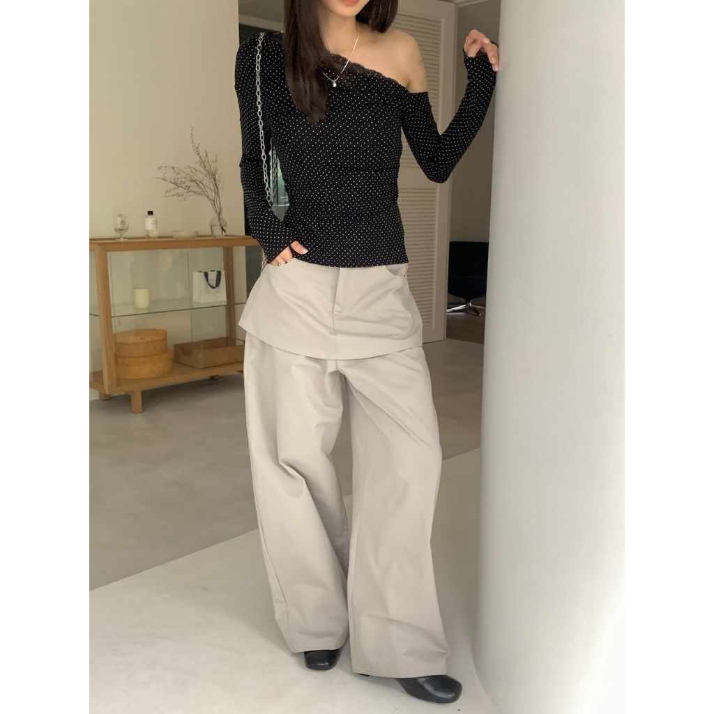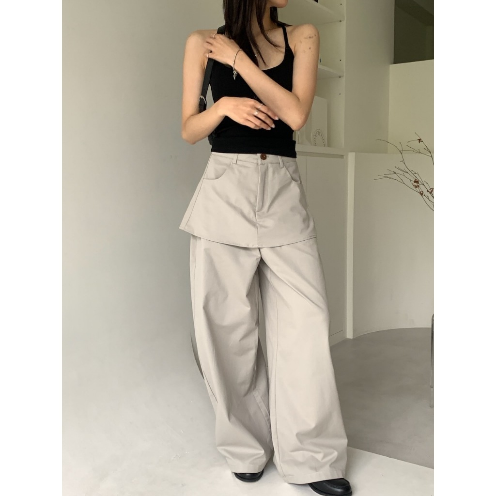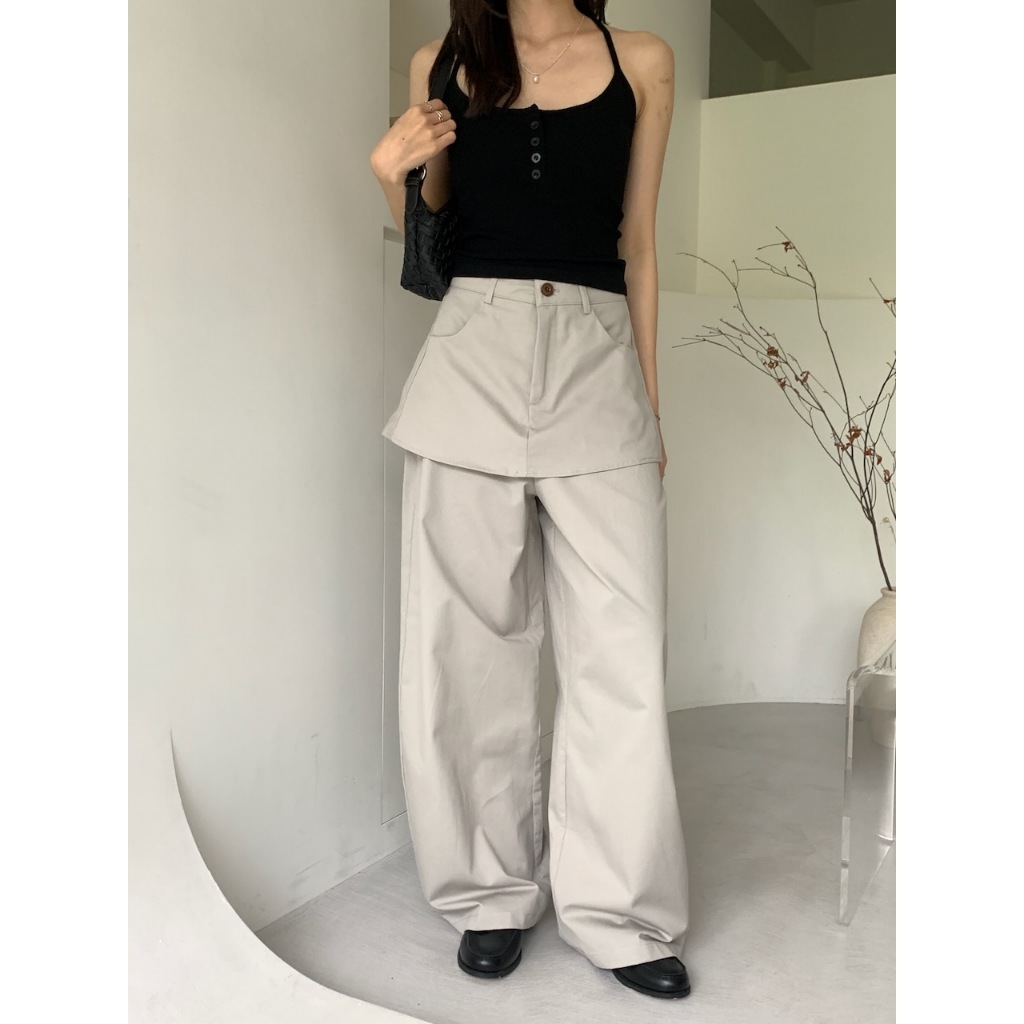 ※假兩件式寬褲裙(不可拆) 左右兩側、後兩邊真口袋 前半截鈕扣拉鍊 無彈性 硬挺感 (白色不透)